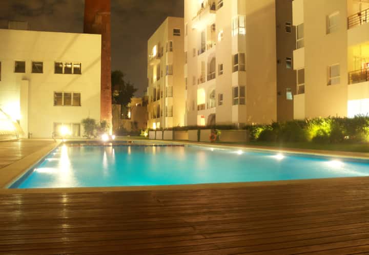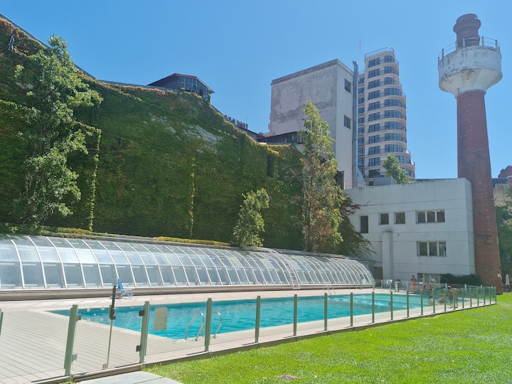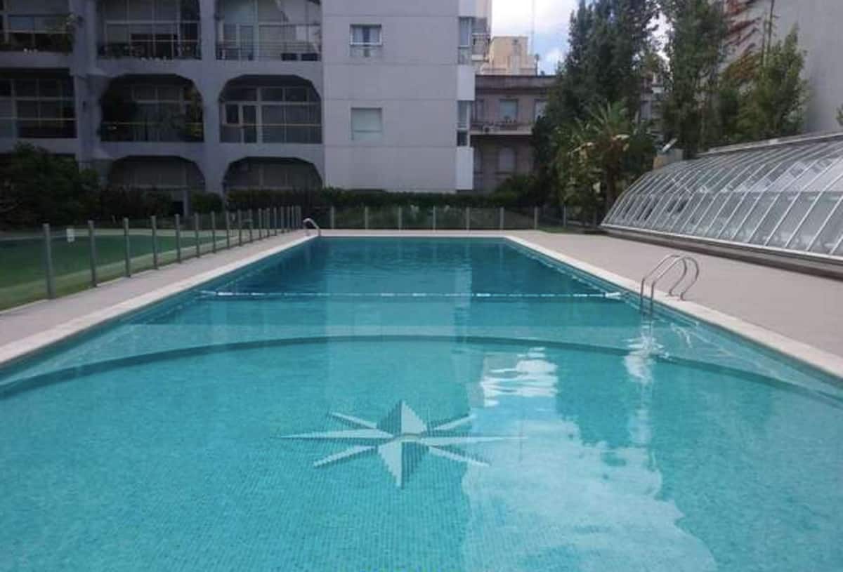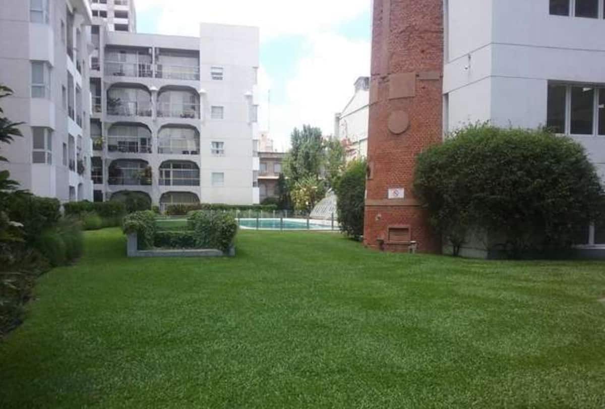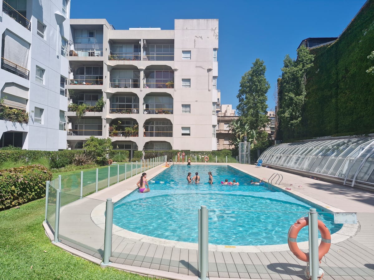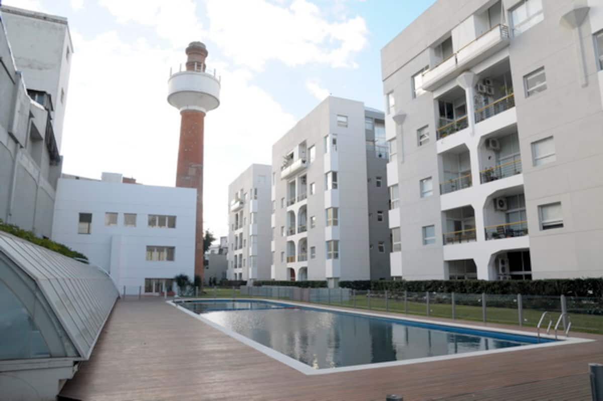 Two-bedroom loft in a refurbished 150-year-old bakery factory in Barracas. The complex includes a private patio, two swimming pools (indoor and outdoor depending on the weather), spa, sauna, playground, fitness centre, residents’ cinema (prior booking required), a barbecue area (prior booking required), and a kids’ playroom. There is also a private laundry service available for an additional charge.