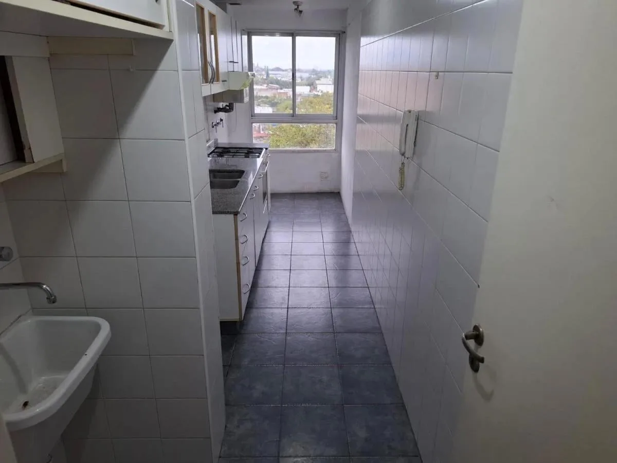 Two-bedroom, two-bathroom apartment for rent in Barracas, located on Av. Montes de Oca and Brasil. The unit is on a high floor accessible by elevator, street-facing, with north-west orientation. It has a fitted kitchen with upper and lower cabinets, a guest toilet, a living-dining room, two bedrooms with built-in wardrobes, and a full bathroom. Approx. 65 m² total area, 63 m² covered, plus a balcony; building fees were approximately $268,000 as of 15/04/2026.