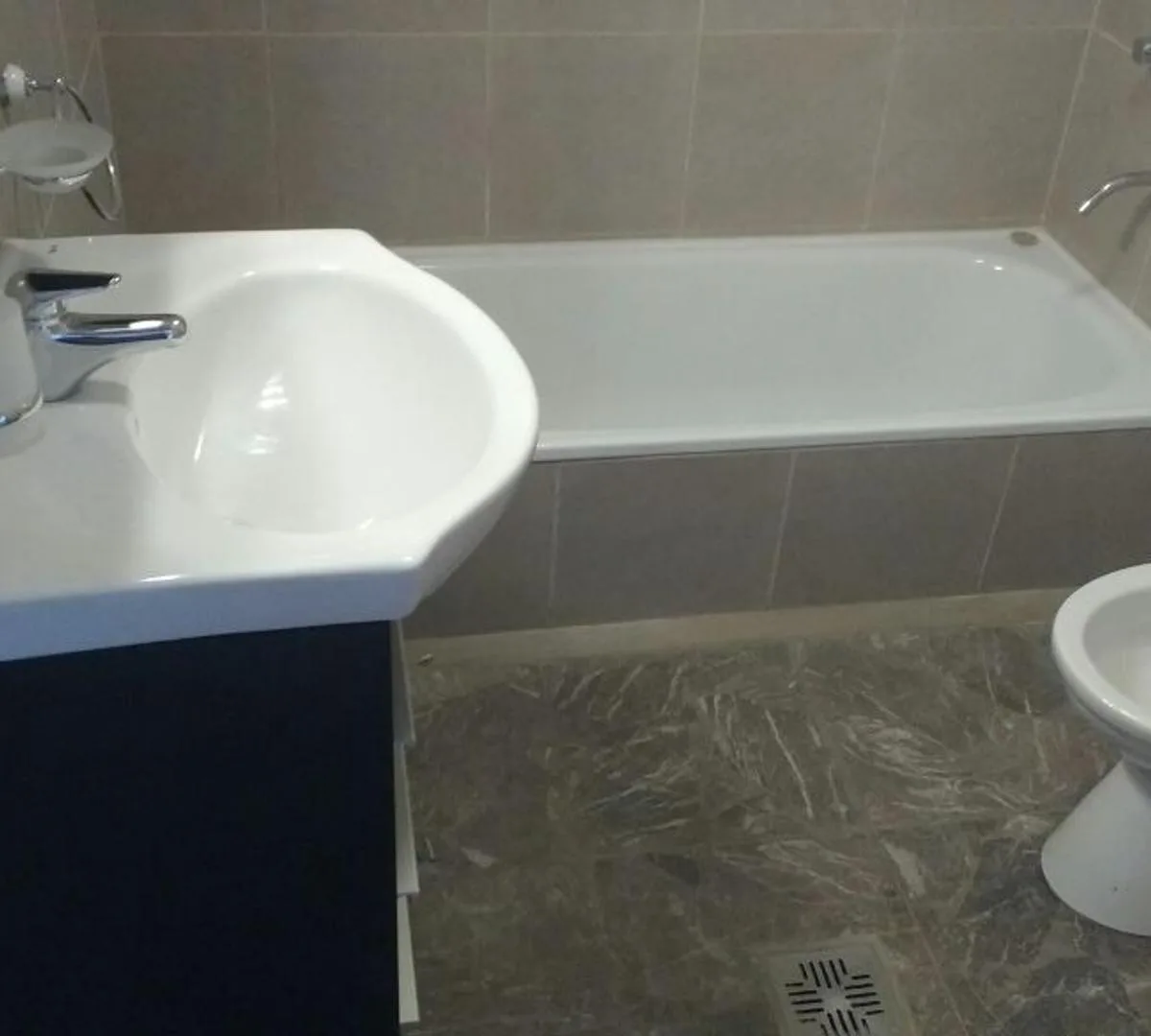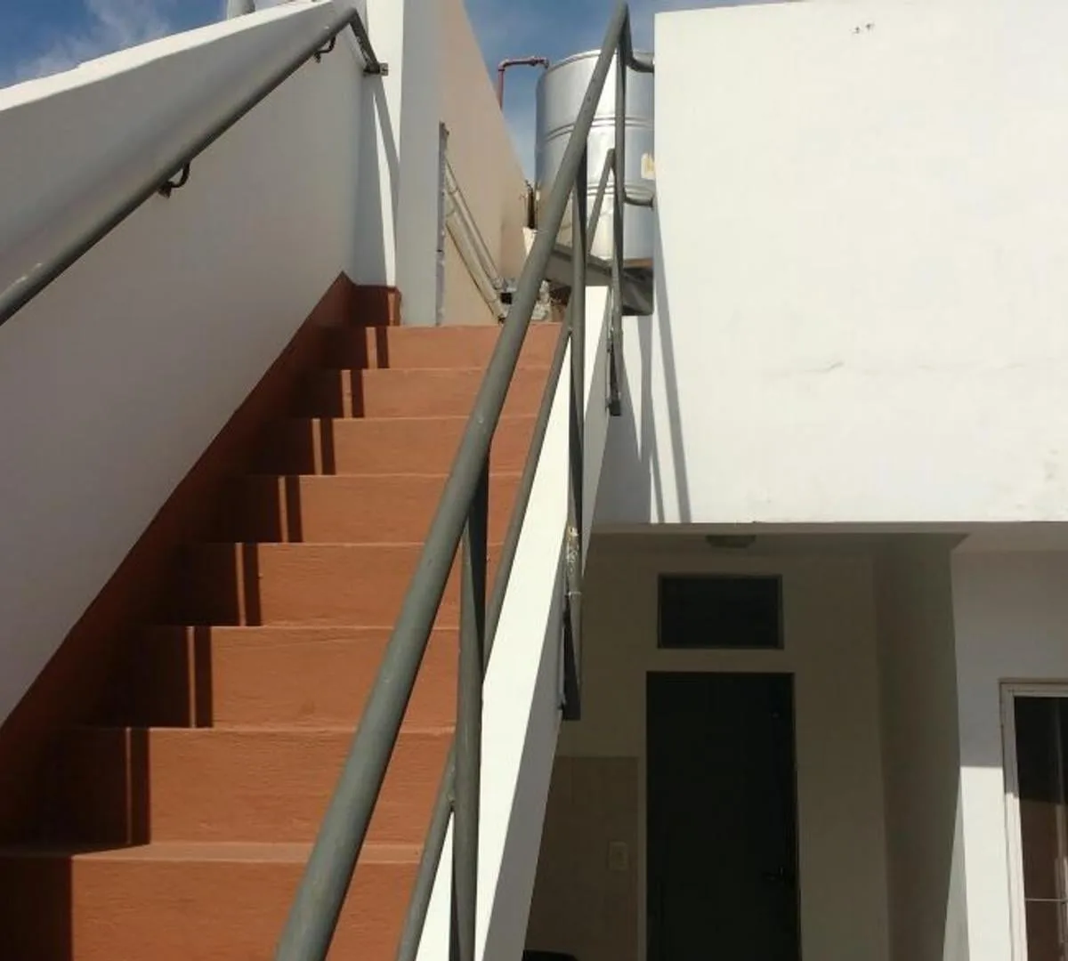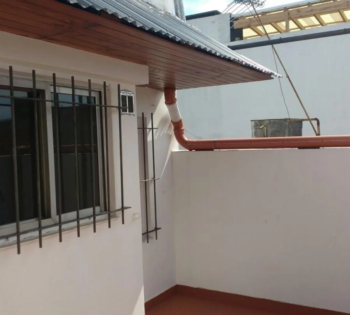 Apartment on the upper ground floor with 2 bedrooms and a combined living and dining room with a balcony. Separate kitchen with dining area, a full bathroom, and fitted wardrobes in the bedrooms. The unit includes a laundry patio, an additional bathroom area and a terrace, with balcony and terrace access. Services listed: electricity, drainage (cloacas), natural gas, and running water.