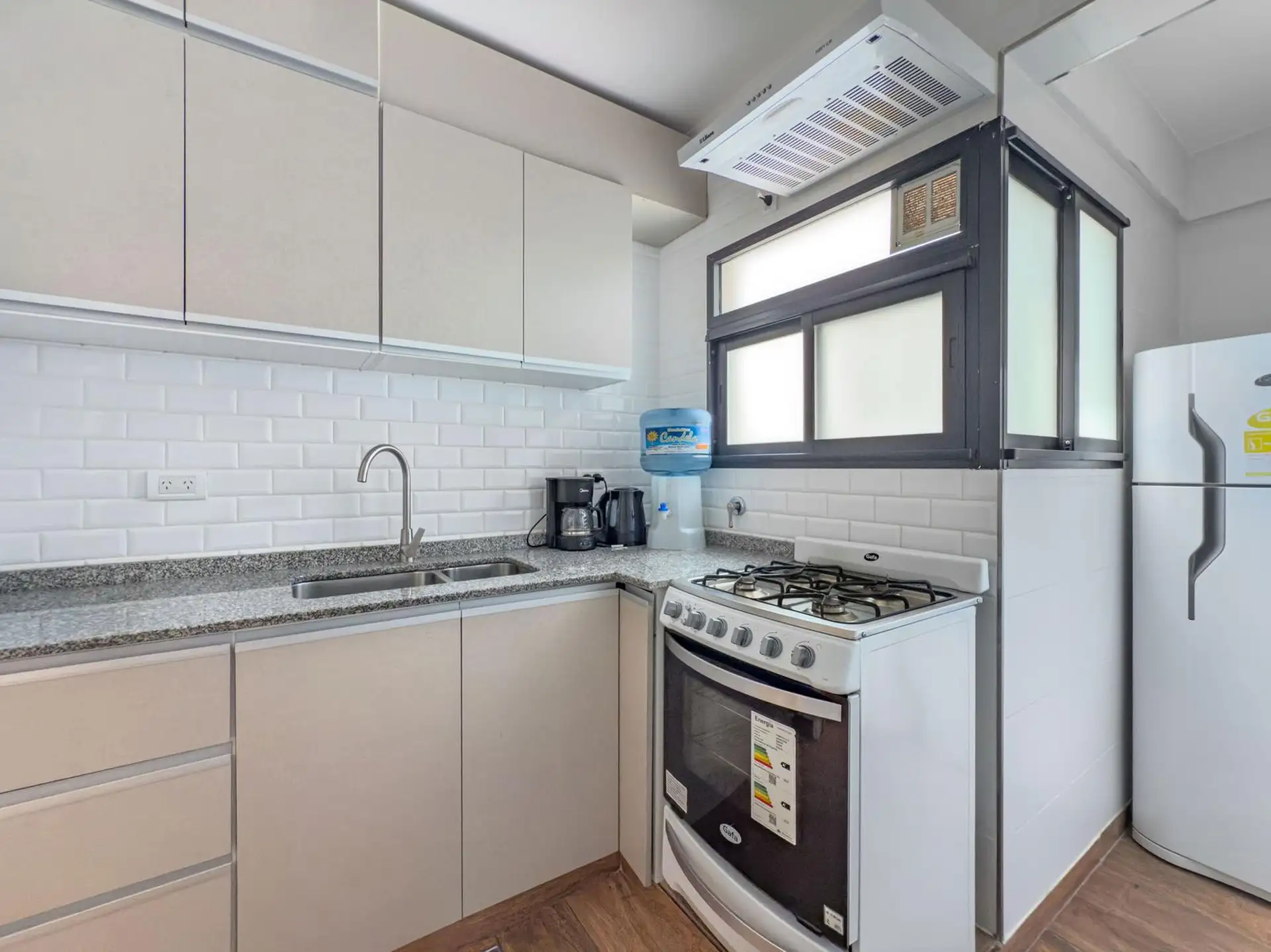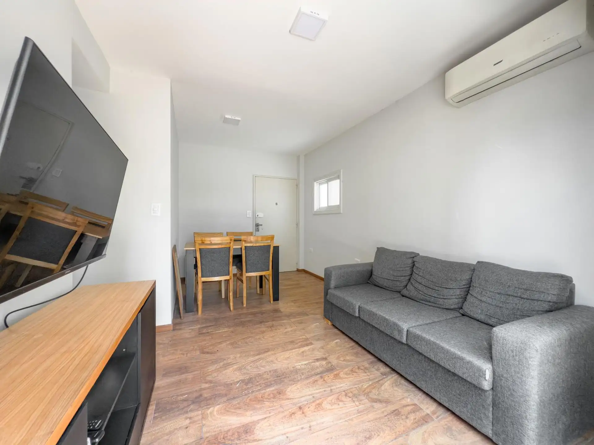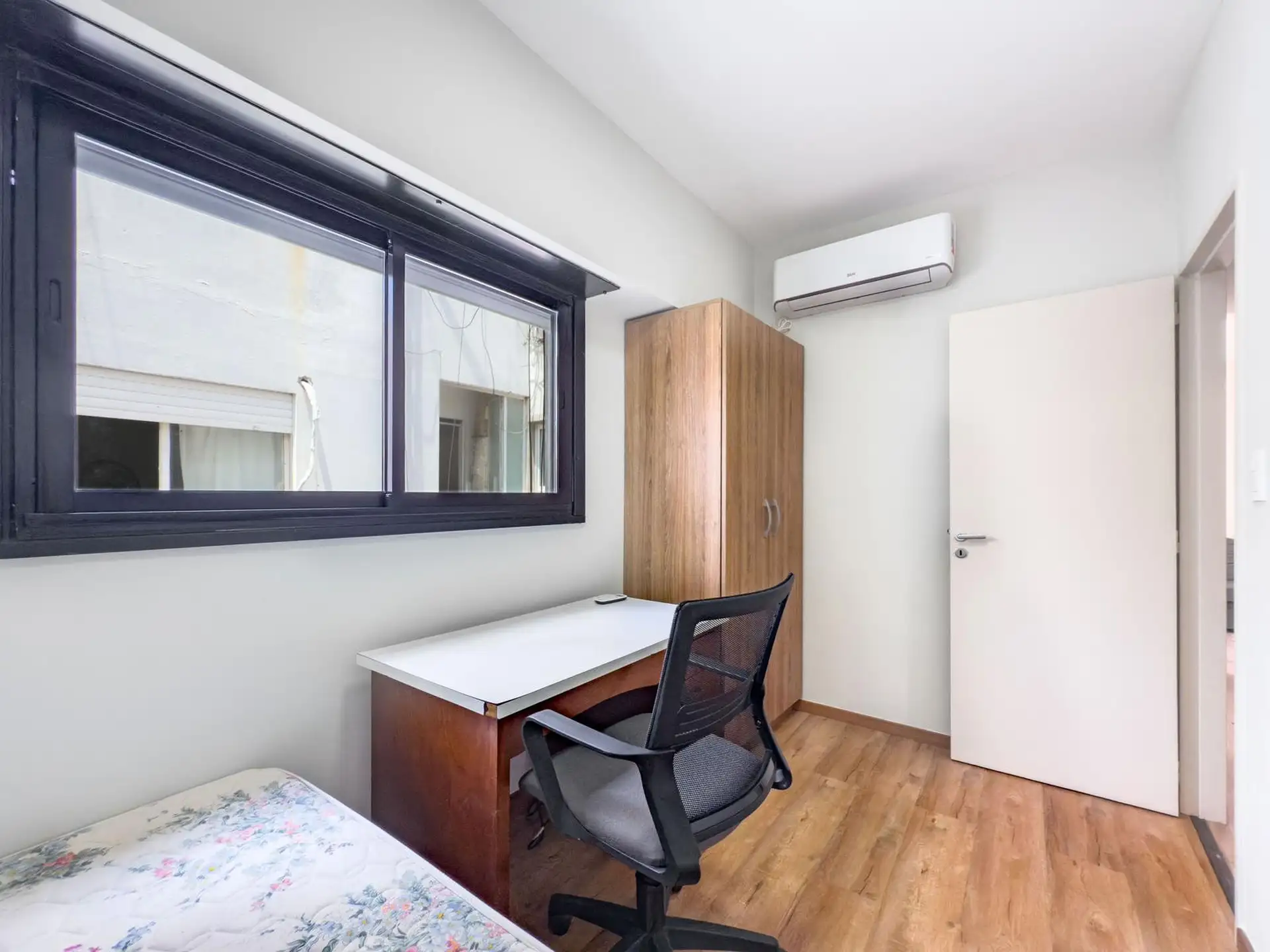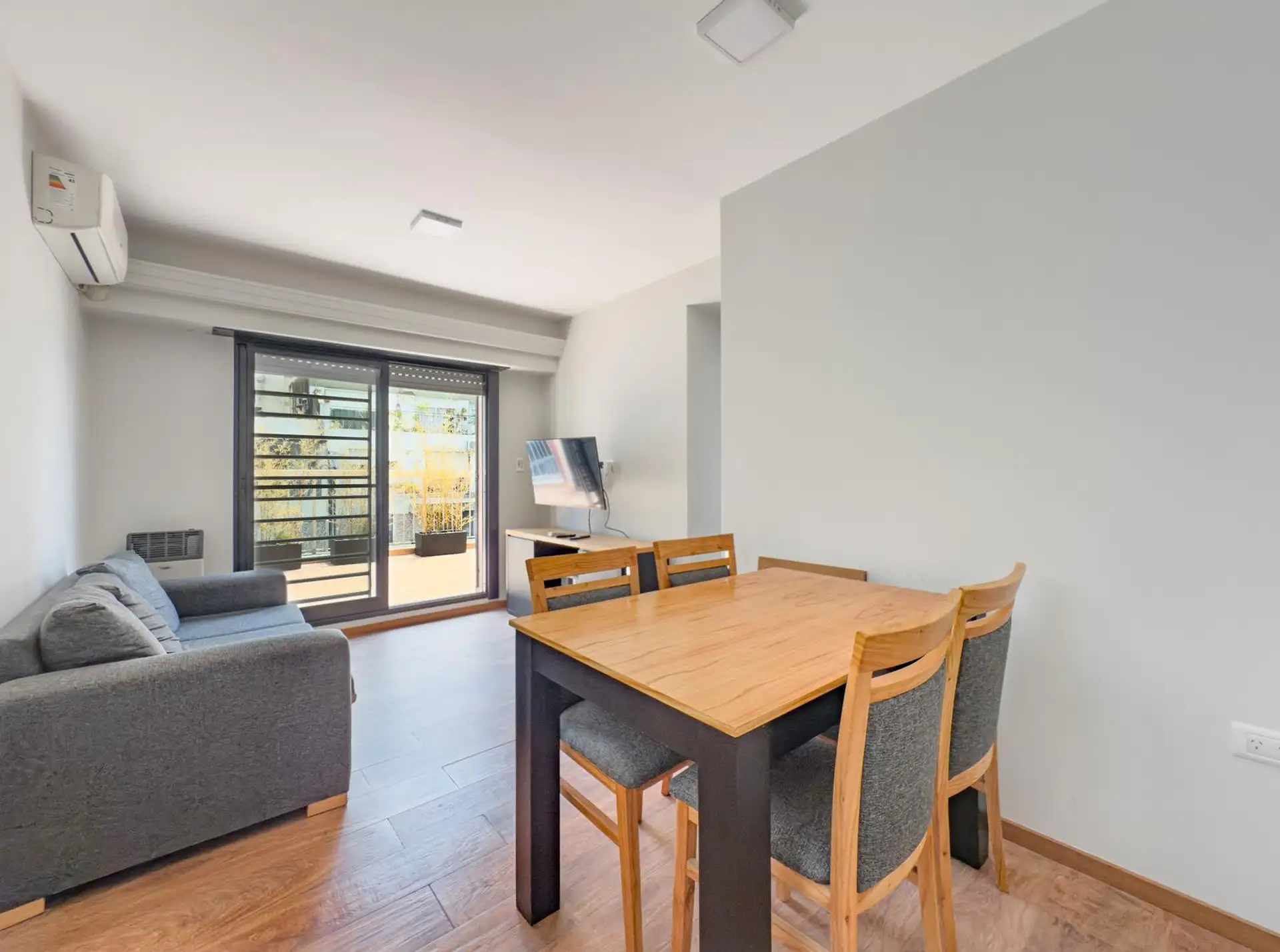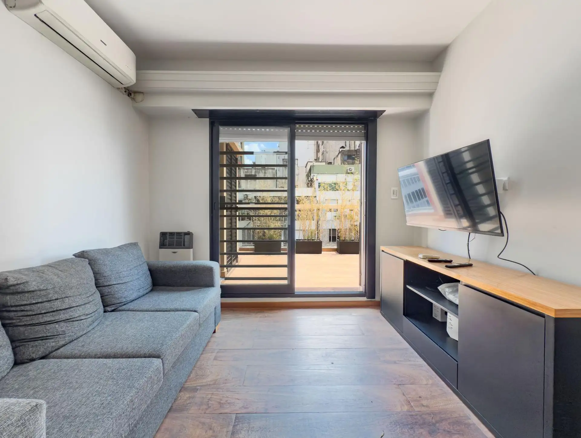 Two-bedroom apartment in Caballito available from March 2026. Rental term of 3 to 6 months only. Includes a private terrace with an outdoor grill and an integrated washer, and a kitchen equipped with tableware. Furnished with a double bed and a two-seat sofa with a living area, an LCD TV, a second bedroom with a desk, and a refrigerator with a freezer; 3 hot-and-cold air conditioners (one in each room). The rent does not include utilities or building fees. A rental guarantee or insurance and pro