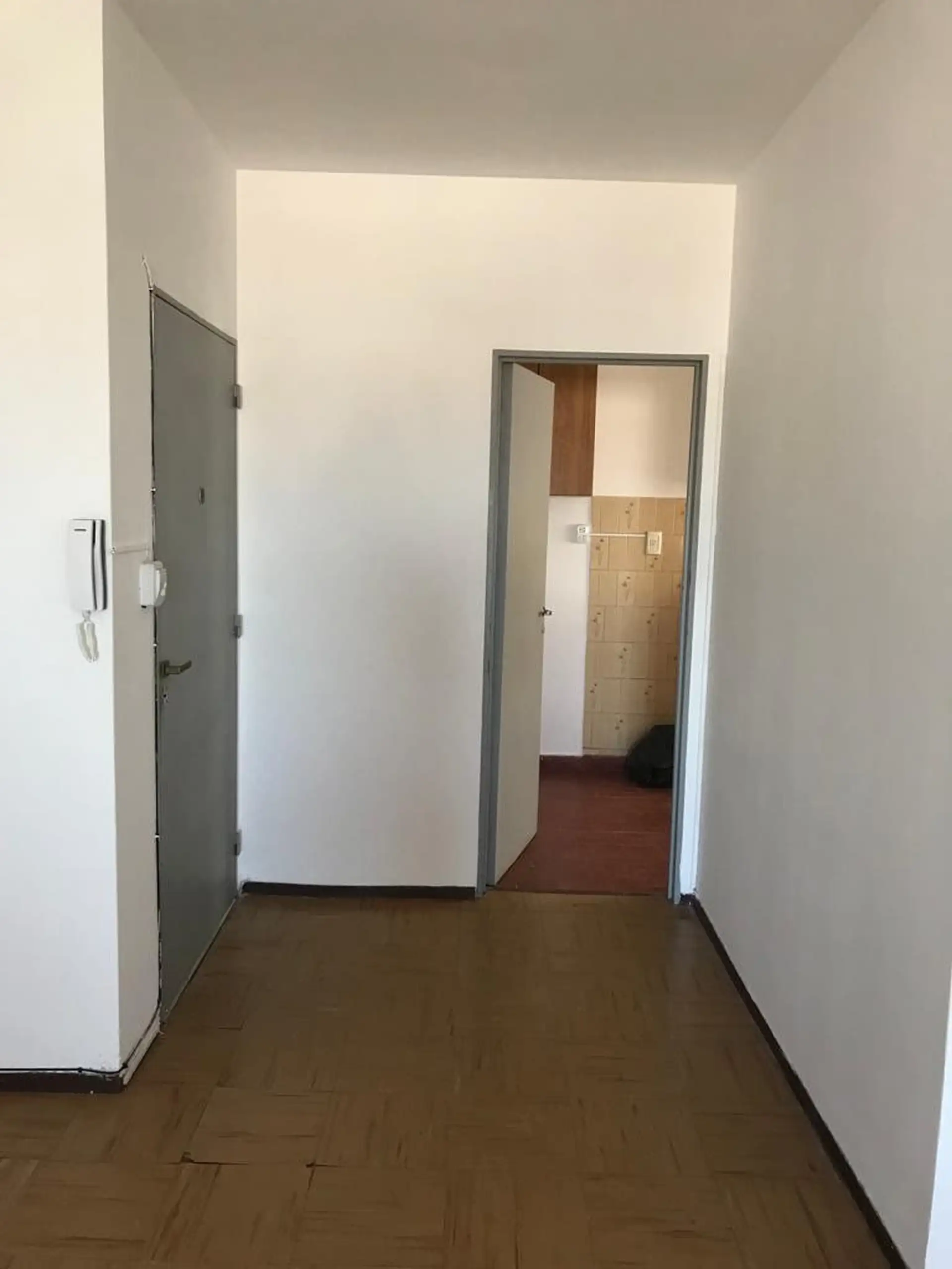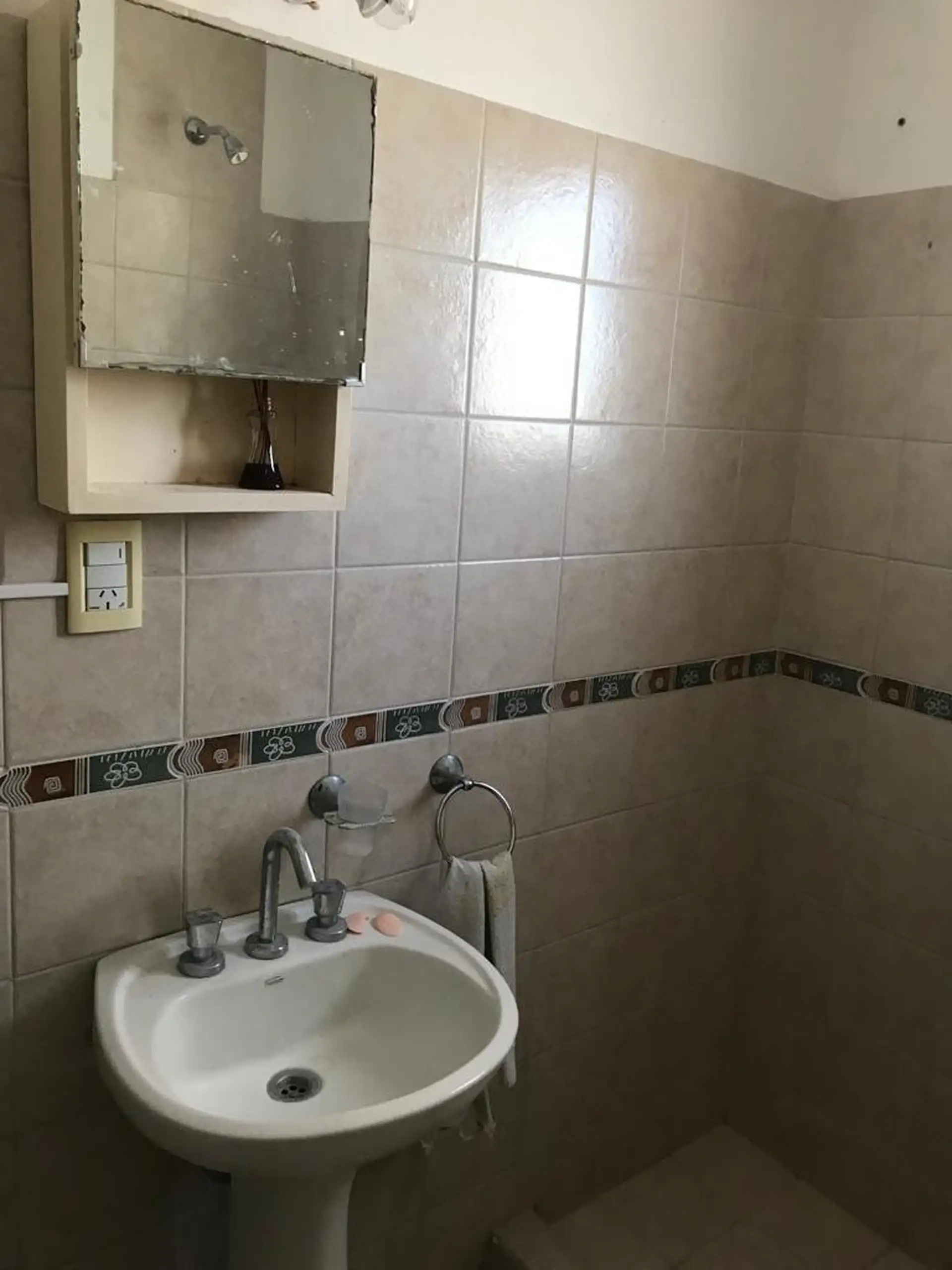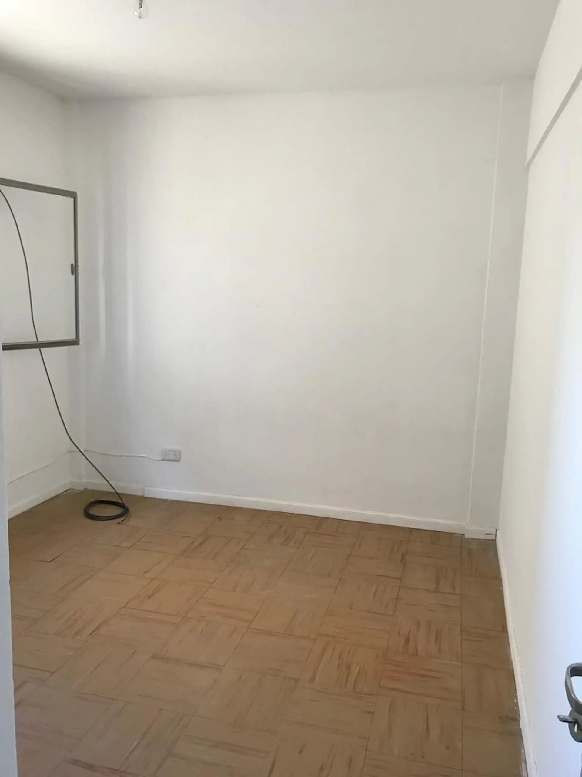 Centrally located two-bedroom apartment for rent from May. It includes a living-dining room with TB space heater, a kitchen with laundry area, a hot water tank (termotanque), two bedrooms with built-in wardrobes, and a full bathroom with shower. It has screens and blinds. Rental price is $700,000, with estimated building fees (expensas) of $79,000 plus ABSA, municipal taxes and utilities; pets are not accepted.