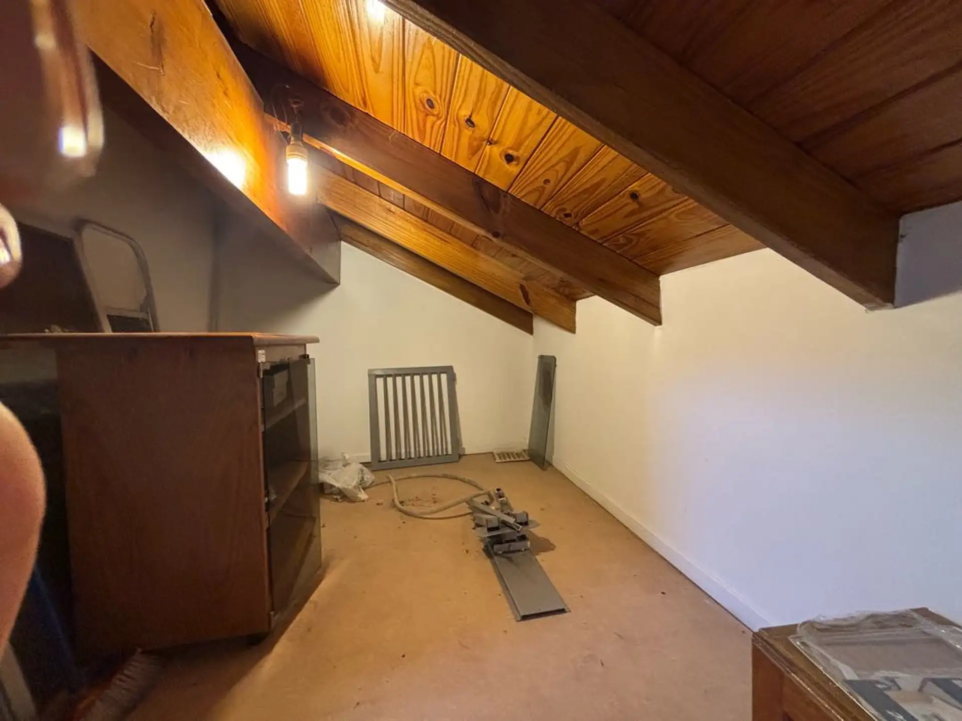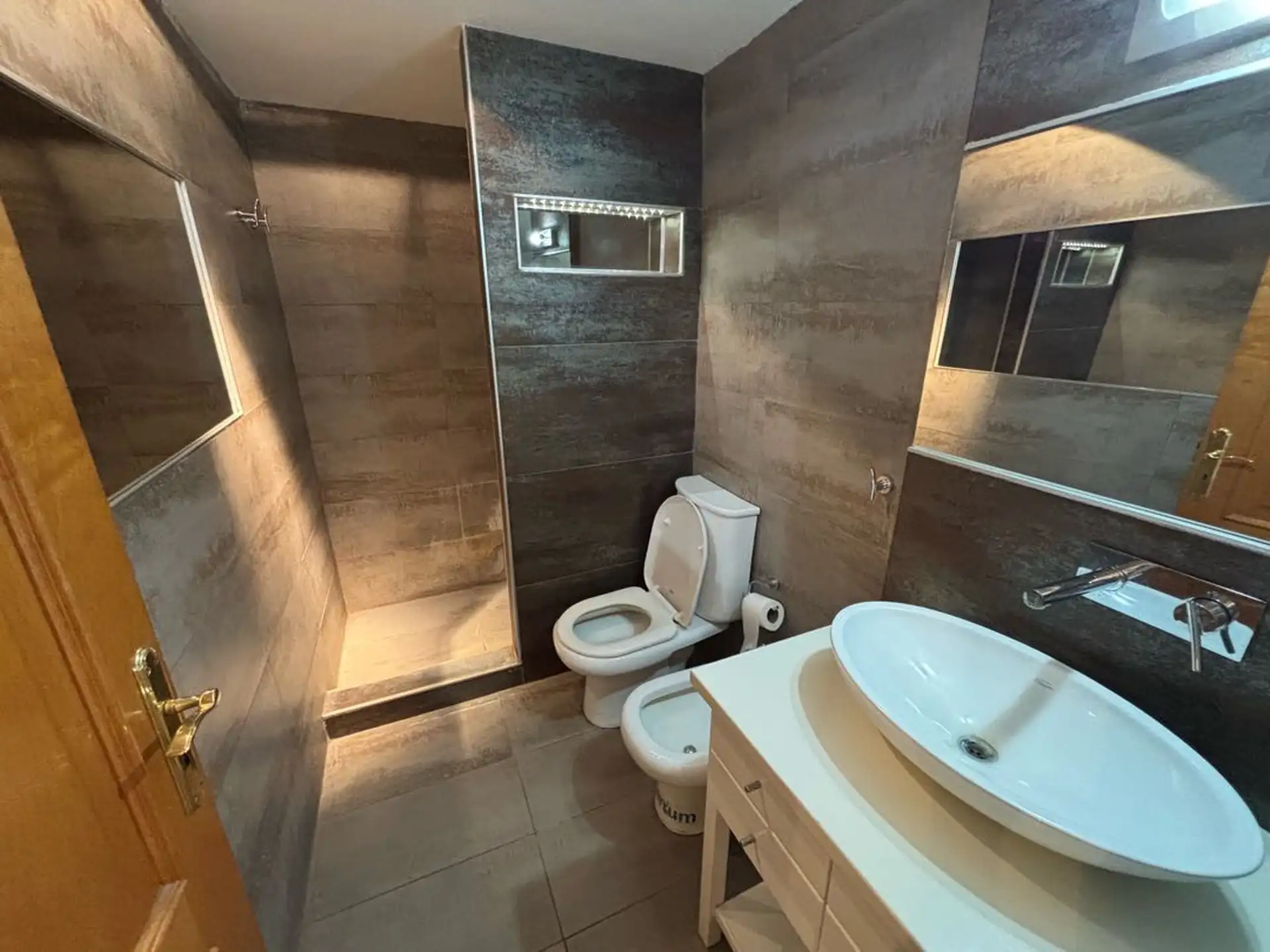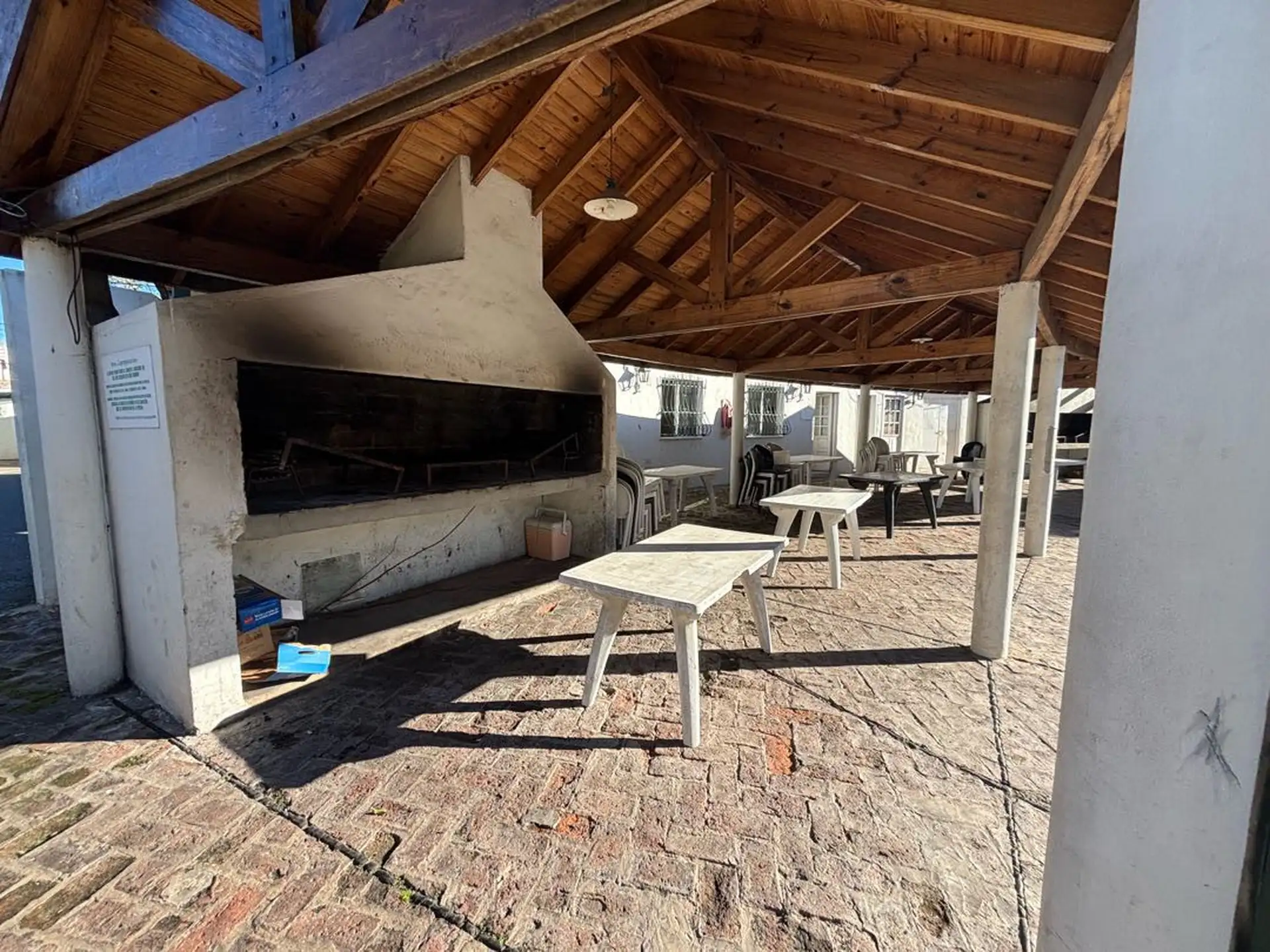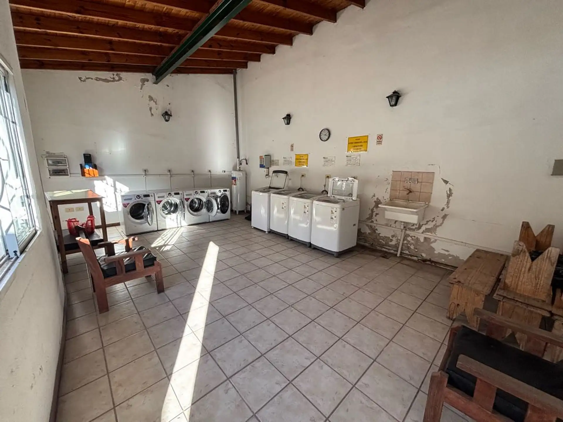 Three-room house-style apartment in the Las Casas Blancas Mediterráneas complex, Perón 635, with pool and amenities. Single-storey layout with a loft level: living-dining room, separate kitchen, a full bathroom and a bedroom with built-in wardrobe on the main floor; the second bedroom is on the upper loft with an en-suite bathroom. The complex has assigned parking, a laundry area, a covered gallery with a grill, a pool and a children’s play area.