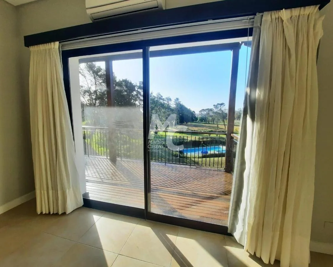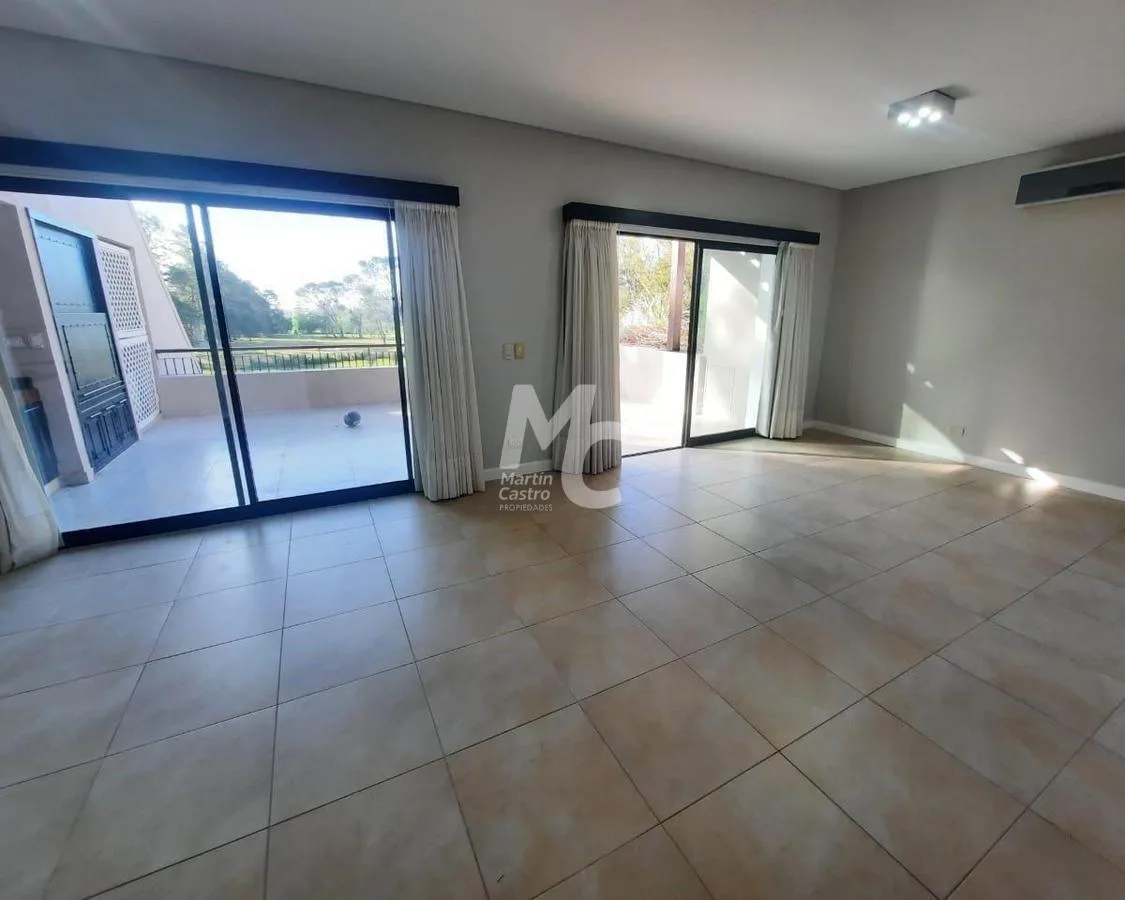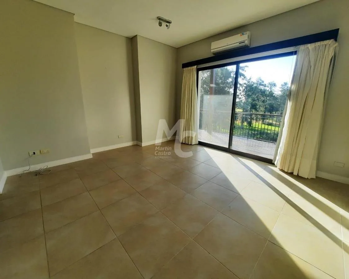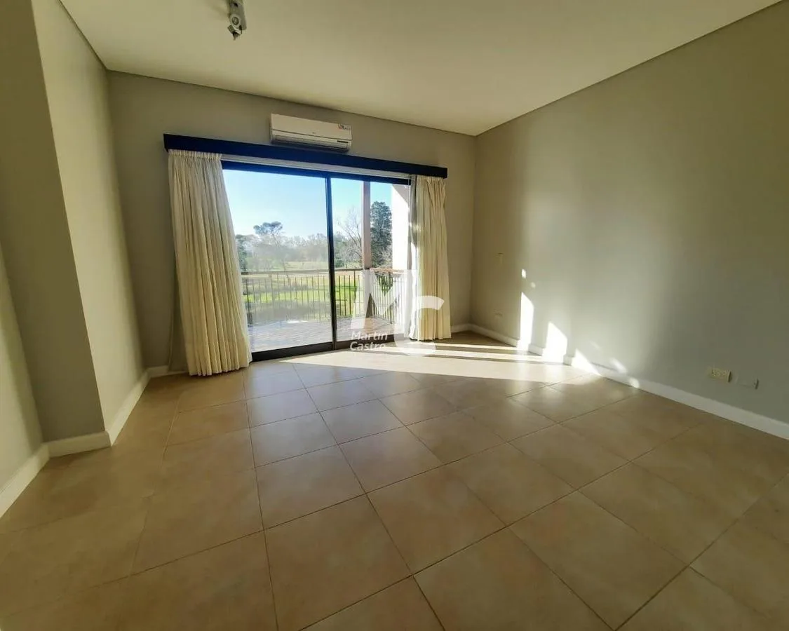 Duplex apartment for rent without furniture in La Reserva Cardales. On the ground floor it has an entrance hall, a living-dining room with large windows, a kitchen with base and overhead cabinetry, a built-in cooking appliance, and a semi-integrated breakfast bar, plus a balcony-terrace with a grill and storage space with views of the golf course and the pool. On the upper floor there are 2 bedrooms, the main bedroom with an en-suite bathroom and dressing room, a full bathroom for the second bed
