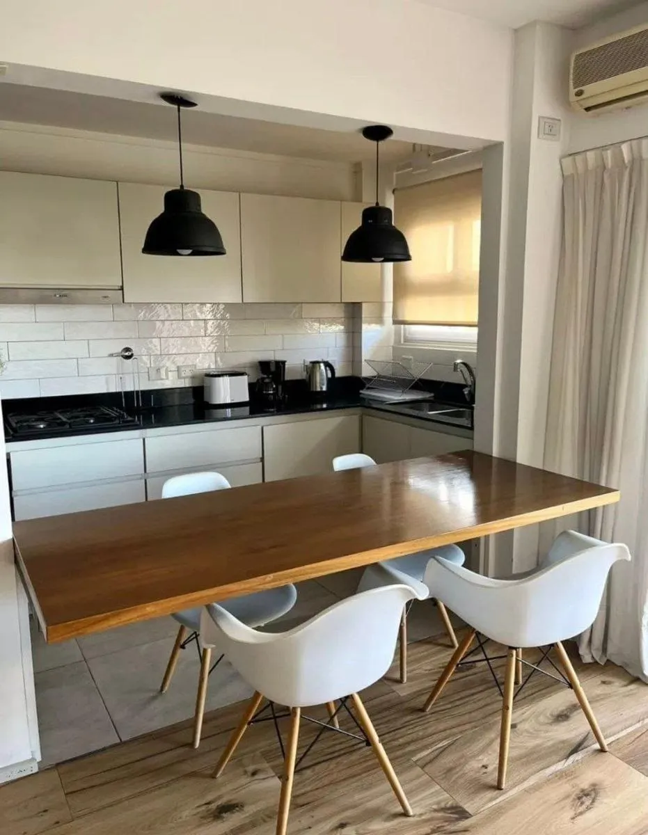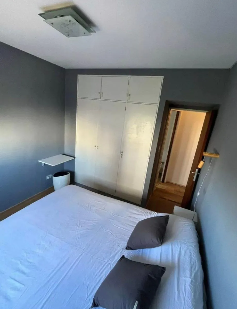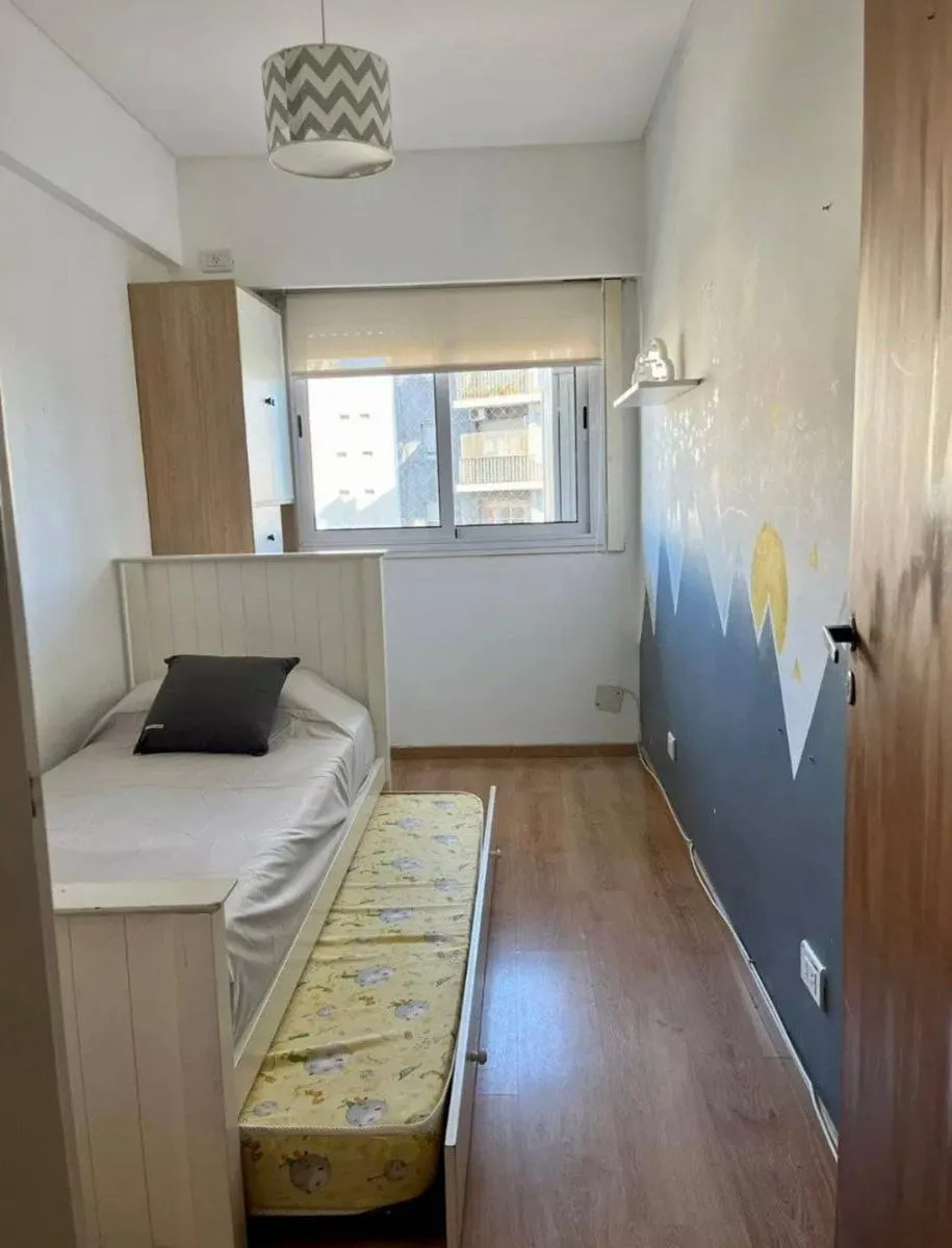 Furnished three-room apartment of 60 m² in Chacarita with a balcony. The unit has air conditioning (hot/cold) in the living room and the main bedroom, a kitchen with a 4-burner stove, and appliances including a fridge and microwave, plus an electric kettle, coffee maker and toaster. It includes a dining table for 4, a double bed with a fitted wardrobe, a full bathroom with a bathtub, and is available from 25 March. Building fees are included in the monthly price; the listing specifies a light-us