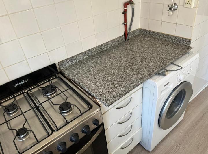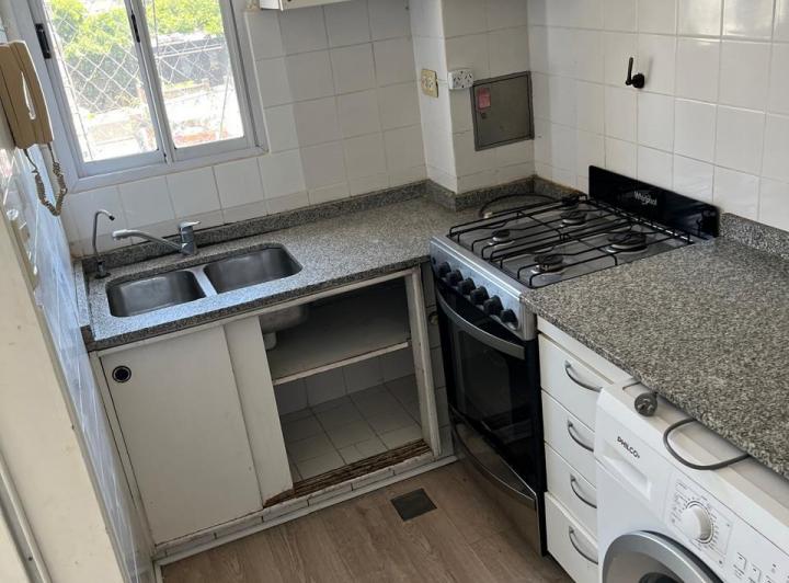 Three-room apartment with 2 bedrooms on Av. Alvarez Thomas 800, 6th floor with open views. Some furnishings are included, along with a washing machine, a sofa set and a double bed; additional furniture can be added or the unit can be rented without furniture. There are 2 air conditioners. Courtyard-facing and described as quiet.