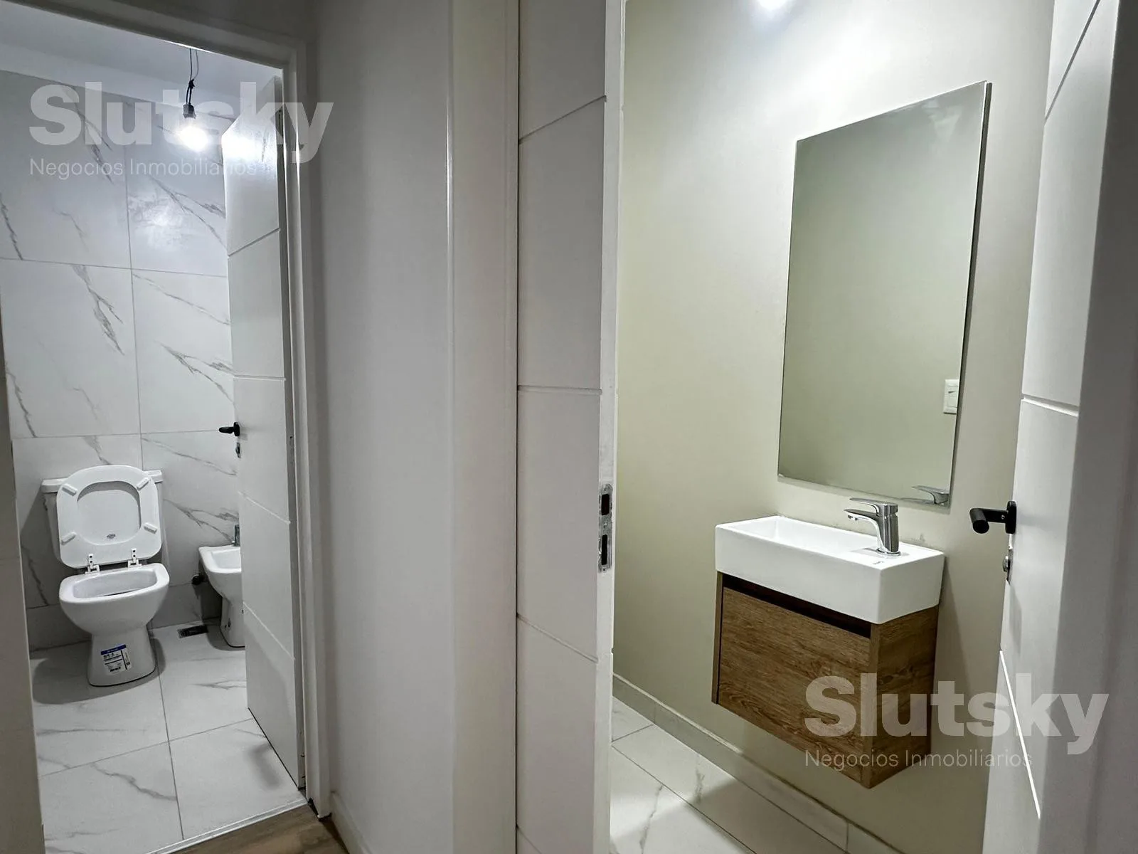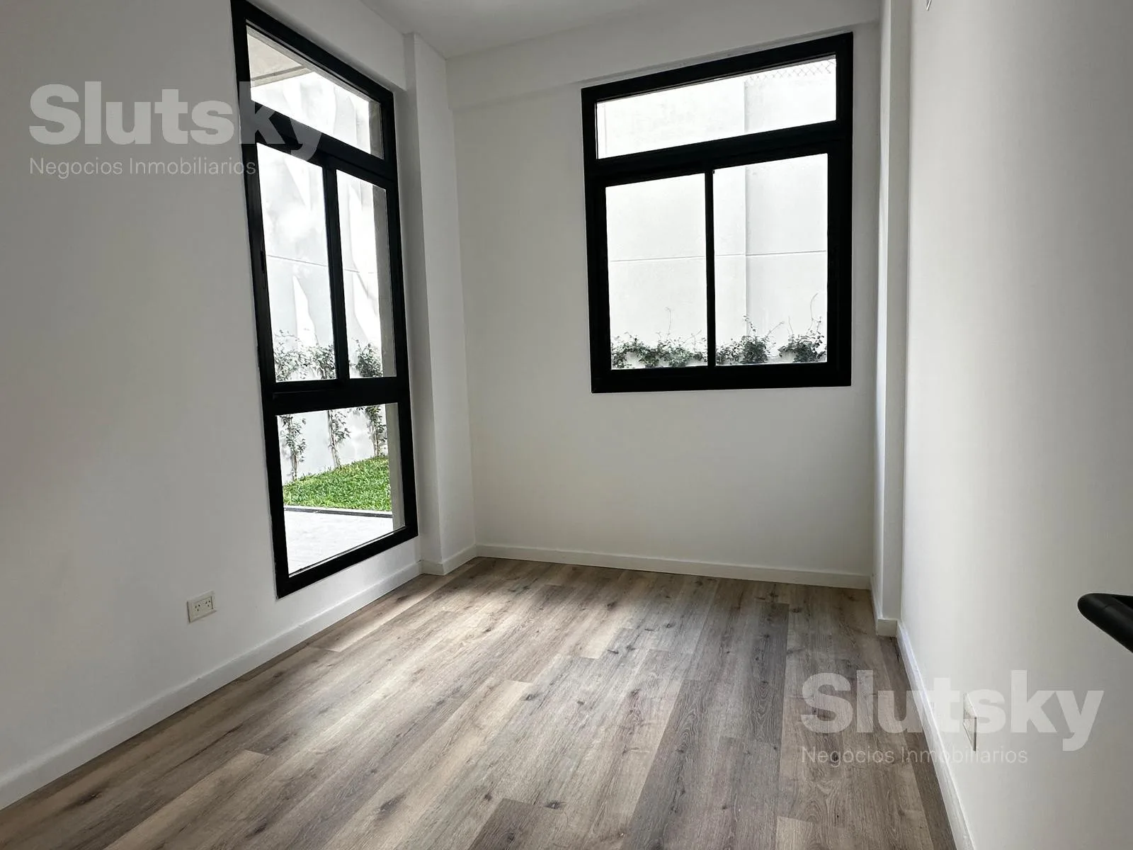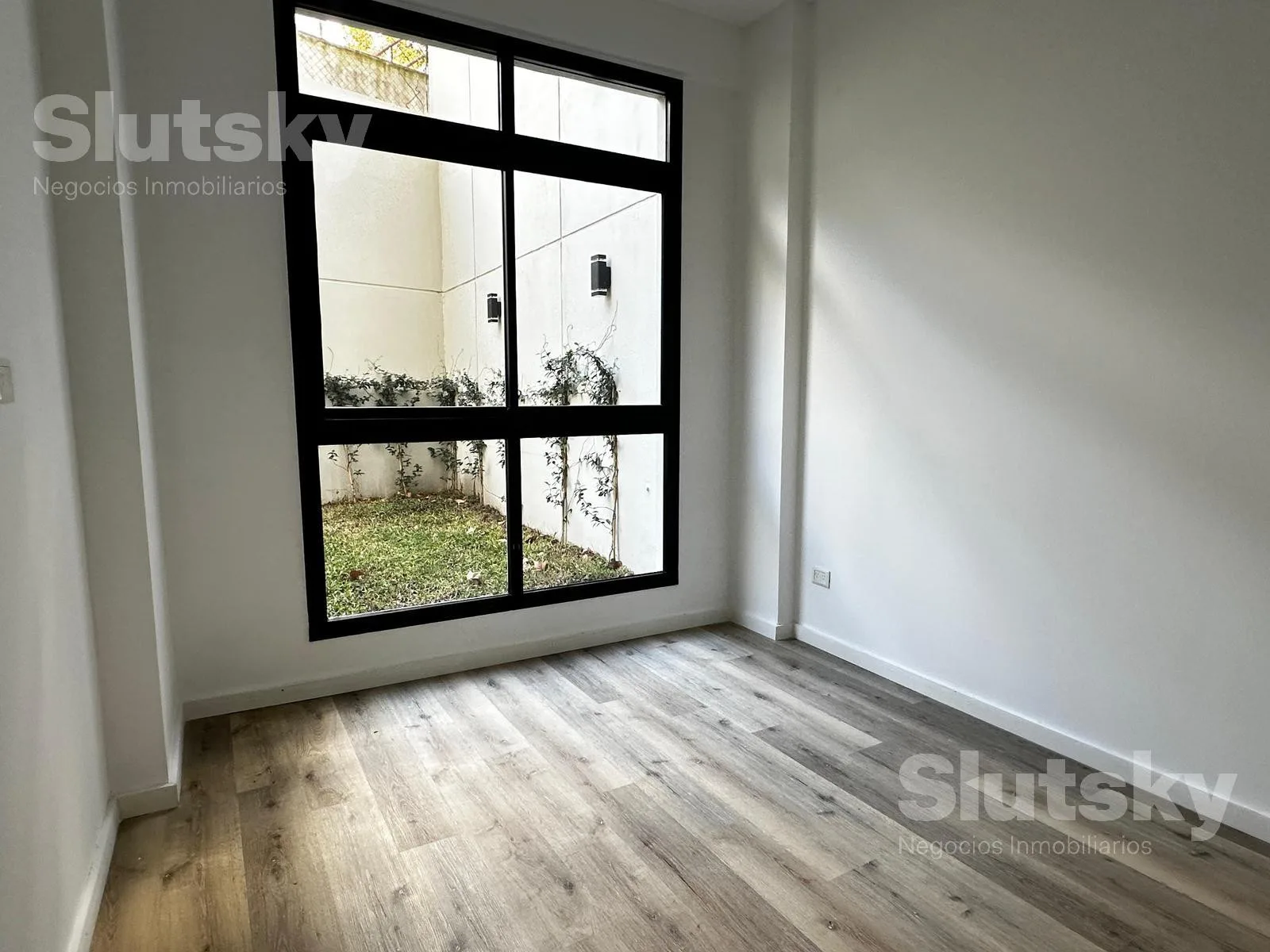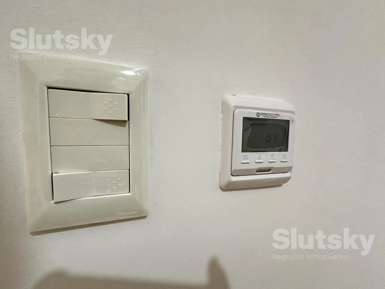 Three-room apartment on Leiva street in Chacarita, set on the ground floor and courtyard-facing, described as almost brand new. Covered accommodation includes a living-dining area with an integrated kitchen, complete bathroom and a separate toilet, electric radiant floor heating, PVC click flooring, an electric oven and hotplates, and a washing machine connection. There is a large patio, a pre-installation for air conditioning, and the unit comes with a storage room in the building basement. Bui