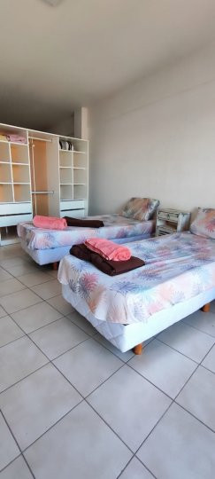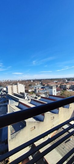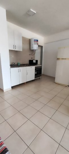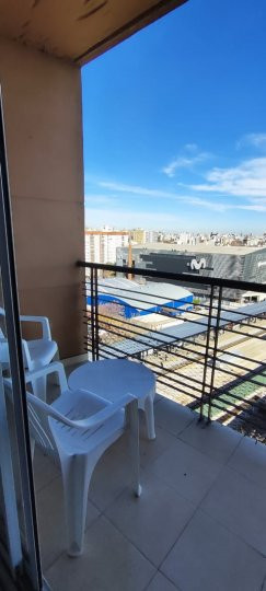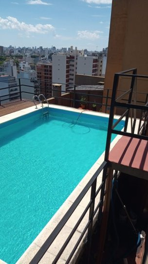 One-room apartment of 40 m² in Chacarita, Av Corrientes 6100, with courtyard-facing (contrafrente) balcony and open views. Furnished with 2 single beds and a full kitchen with stove and oven, fridge with freezer, and a washer in the bathroom. Includes a wall-mounted TV in the bedroom and hot/cold air conditioning; the building has cameras, a pool on the top floor, and allows small pets. Rental price is USD 600 plus electricity; parking may be available for USD 90 in the building.