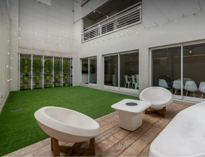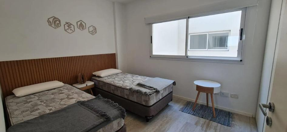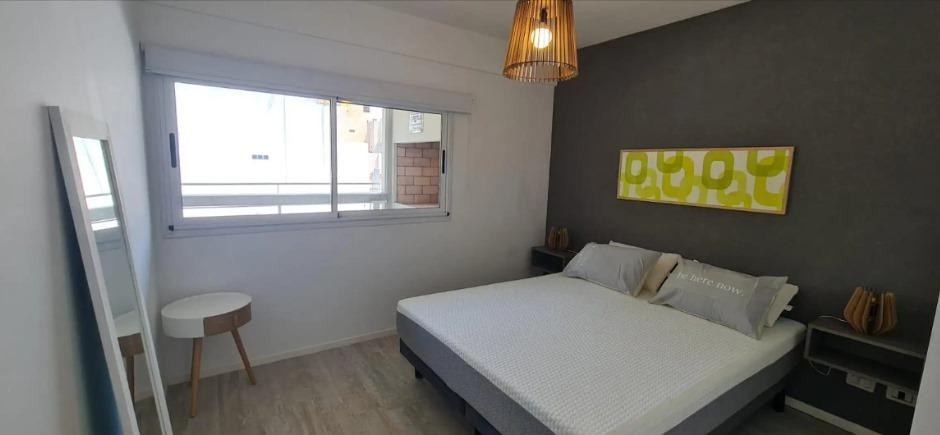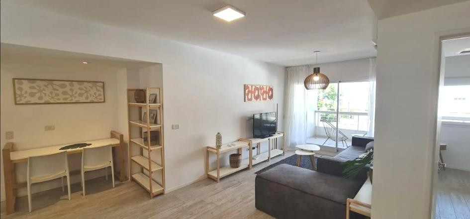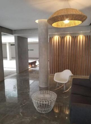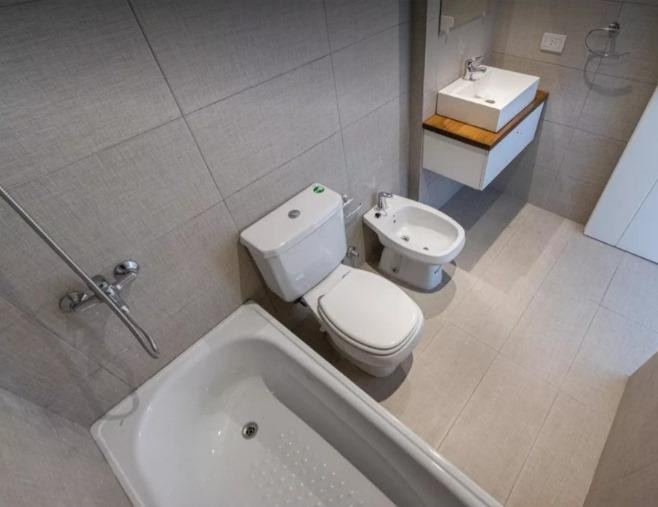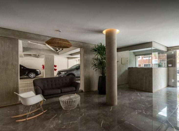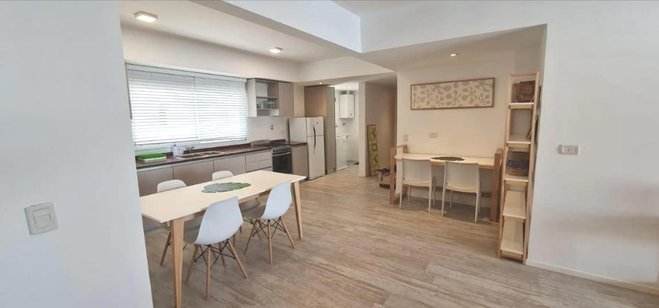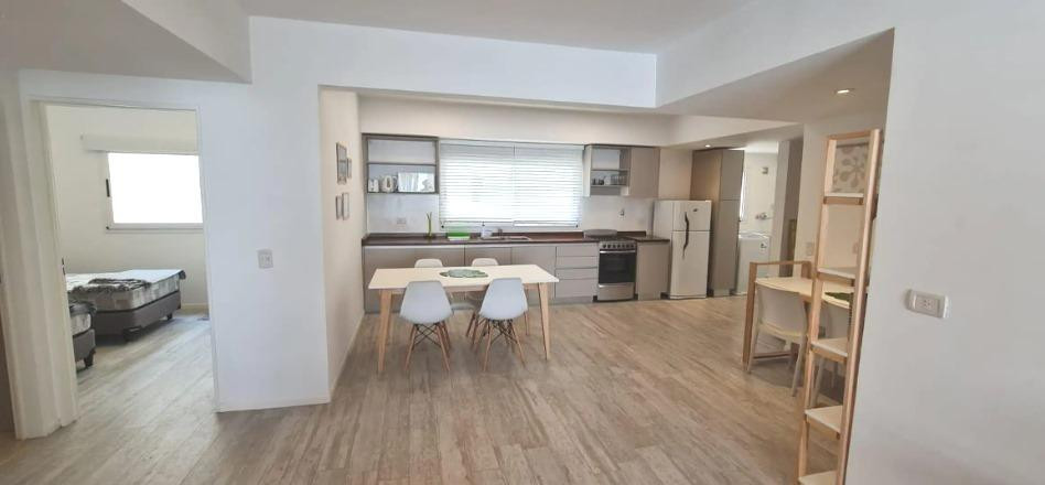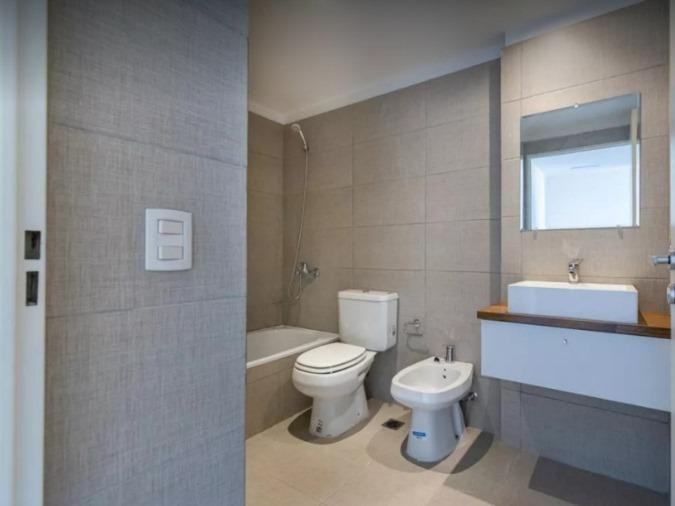 Three-room apartment with 2 bedrooms in Coghlan. The unit has a living-dining room with balcony access to the courtyard-facing side, a kitchenette with gas oven and stove, two full bathrooms, and bedrooms with built-in wardrobes. It includes a dual-purpose boiler for individual heating, air conditioning in all rooms, roller blinds, and washer connection with a laundry outlet. The apartment is delivered freshly painted and unfurnished. Parking is an (assigned) covered space on the ground floor; i