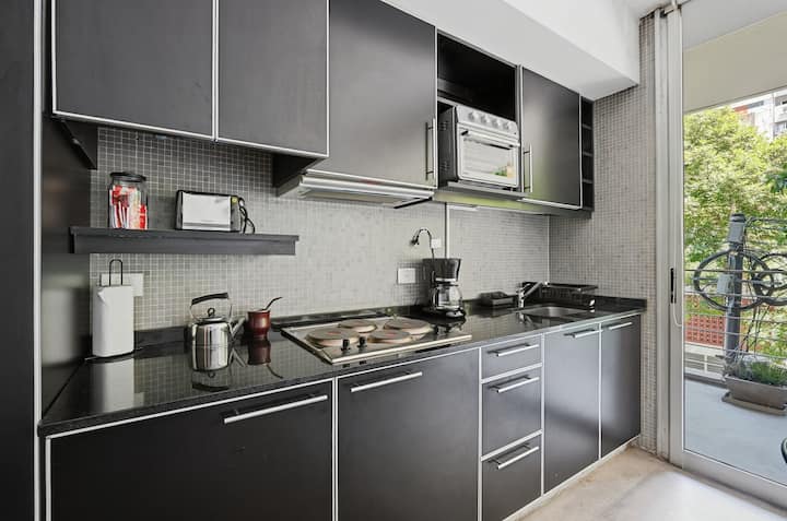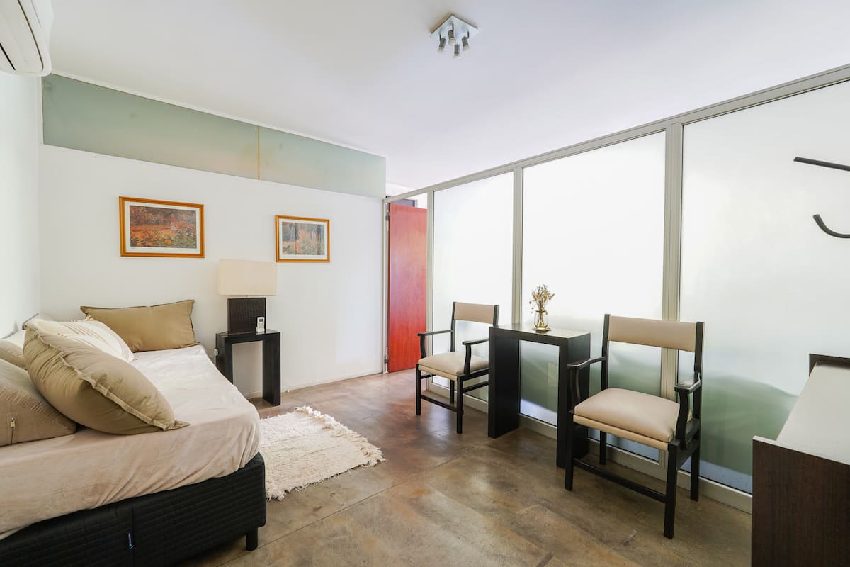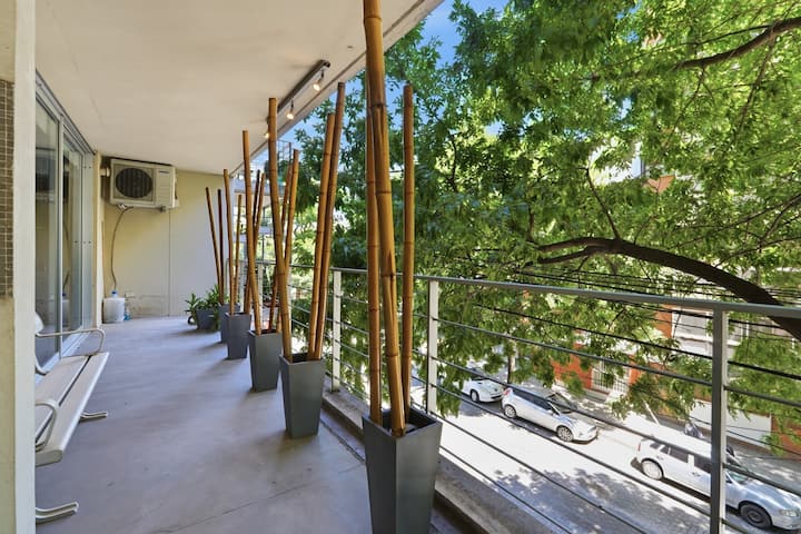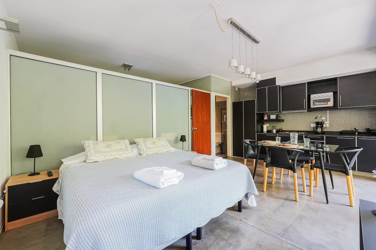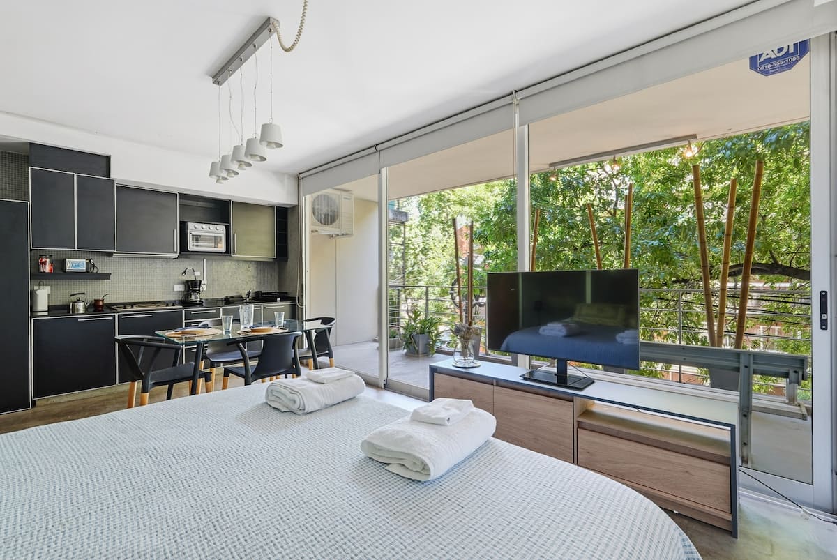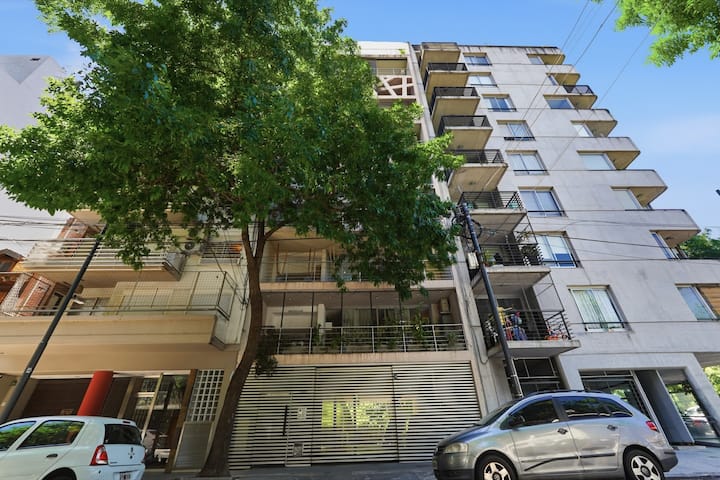 Apartment with 2 bedrooms. One bedroom has a king-size bed and the second room has two single beds. Located in Colegiales, one block from Parque de la Estación and close to Subte Línea D for access around Buenos Aires.