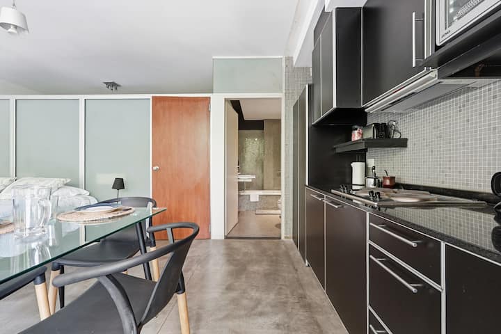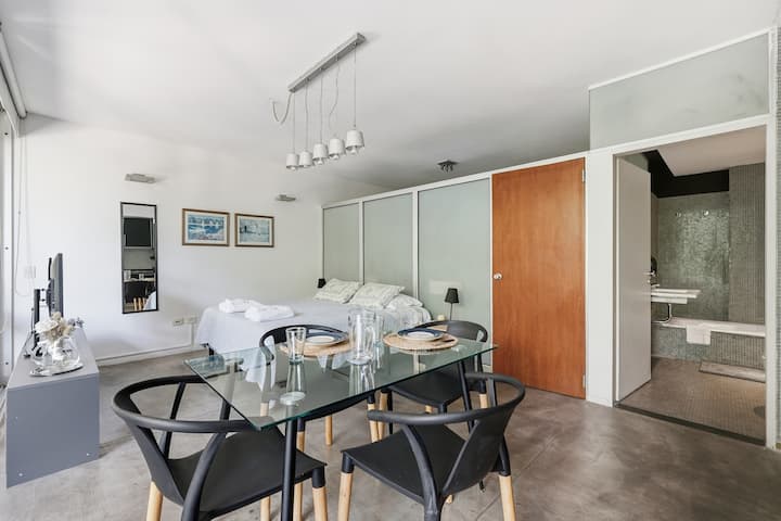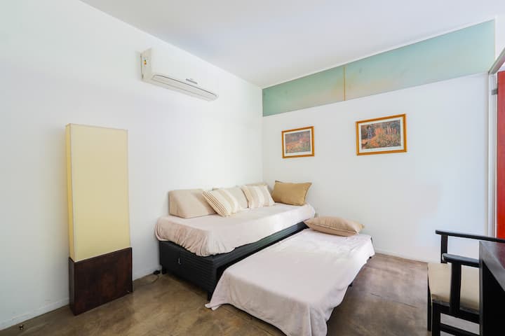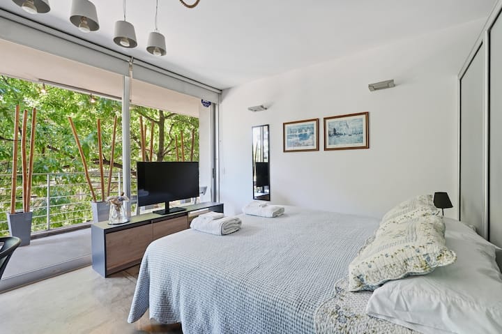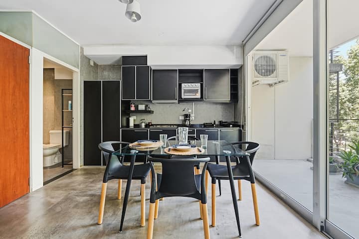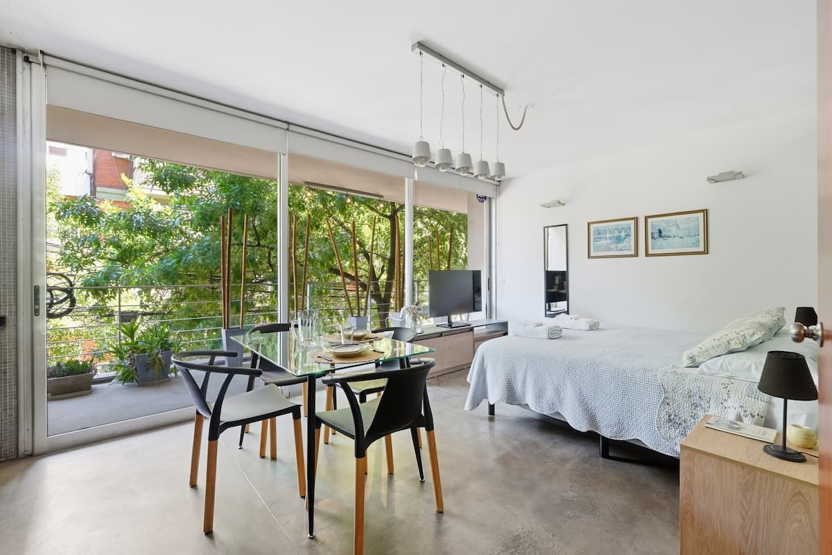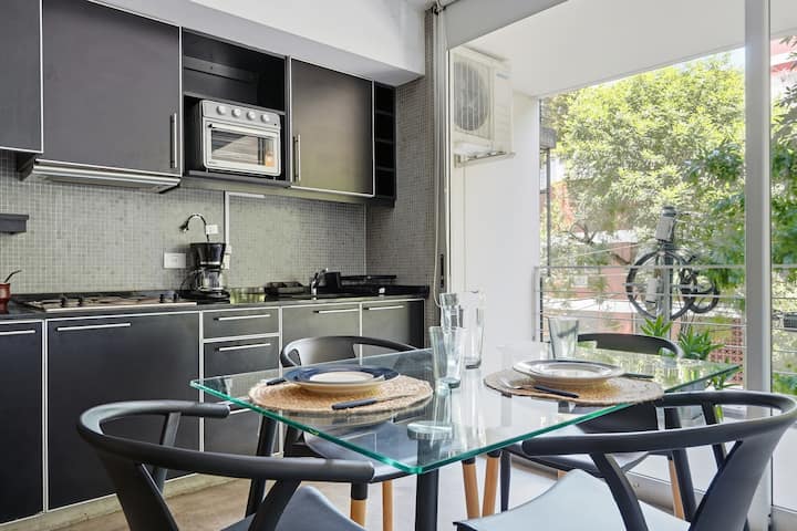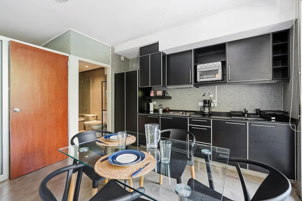 Apartment with 2 bedrooms. One bedroom has a king-size bed and the second room has two single beds. Located in Colegiales, one block from Parque de la Estación and close to Subte Línea D for access around Buenos Aires.