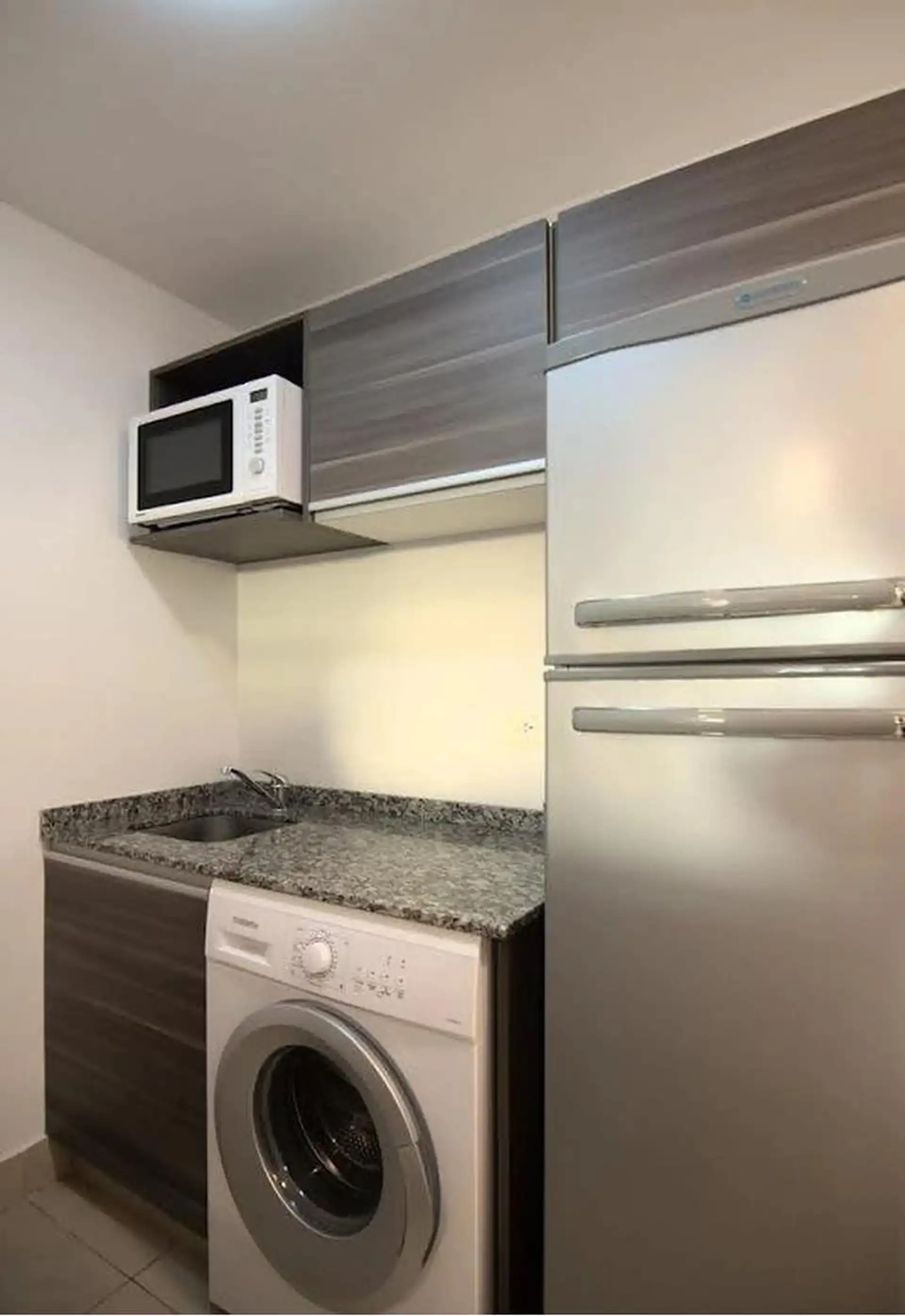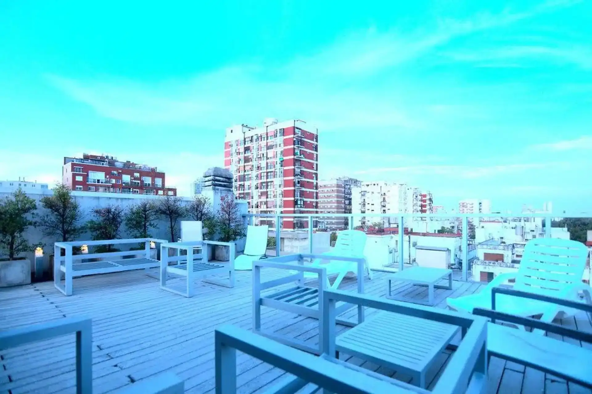 Furnished and equipped studio apartment for temporary rent in Colegiales. Hardwood floors, living-dining area with balcony, double queen bed, integrated kitchen with microwave and refrigerator with freezer, washing machine, full bathroom with bathtub, and air conditioning (heating and cooling). Includes WiFi heating, TV, and communal amenities: pool with solarium, rooftop terrace, grill and SUM. The rental price is all-inclusive with WiFi, with possible utility consumption caps. Capacity: 2 peop