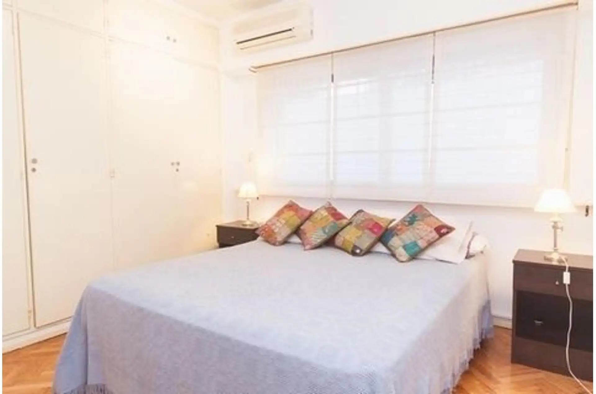 Three-room apartment for temporary rent in Colegiales with 2 bedrooms. Second bedroom can be used for one or two people, or as a study/office room. Includes air conditioning (hot/cold), heating, cable TV and internet, large built-in wardrobes, plasma TVs, a full kitchen and a laundry/linen area. Rental requires an initial payment of approximately 3 months: 1 month’s rent, 1 month’s deposit and 1 month’s commission.