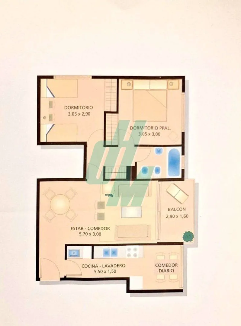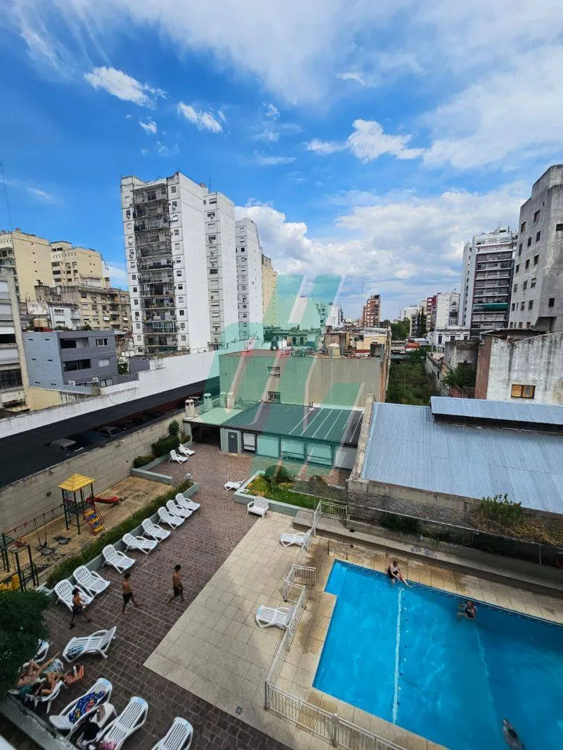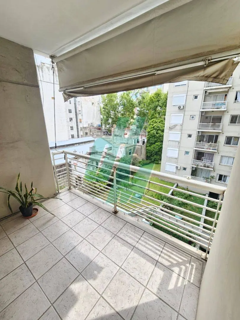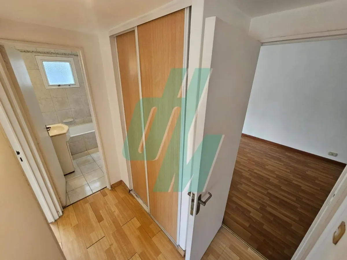 Three-room apartment in Flores with a balcony, part of the Miraflores complex, on Yerbal street between Bolivia and Condarco. It has a combined living-dining room with access to an enclosable terrace balcony, a separate kitchen with an integrated laundry area, two bedrooms with built-in closets, and a full bathroom with a bathtub. Heating is provided by an individual boiler and radiant floor heating; the apartment has windows in all rooms. The building offers 24-hour security, a pool, and a comm