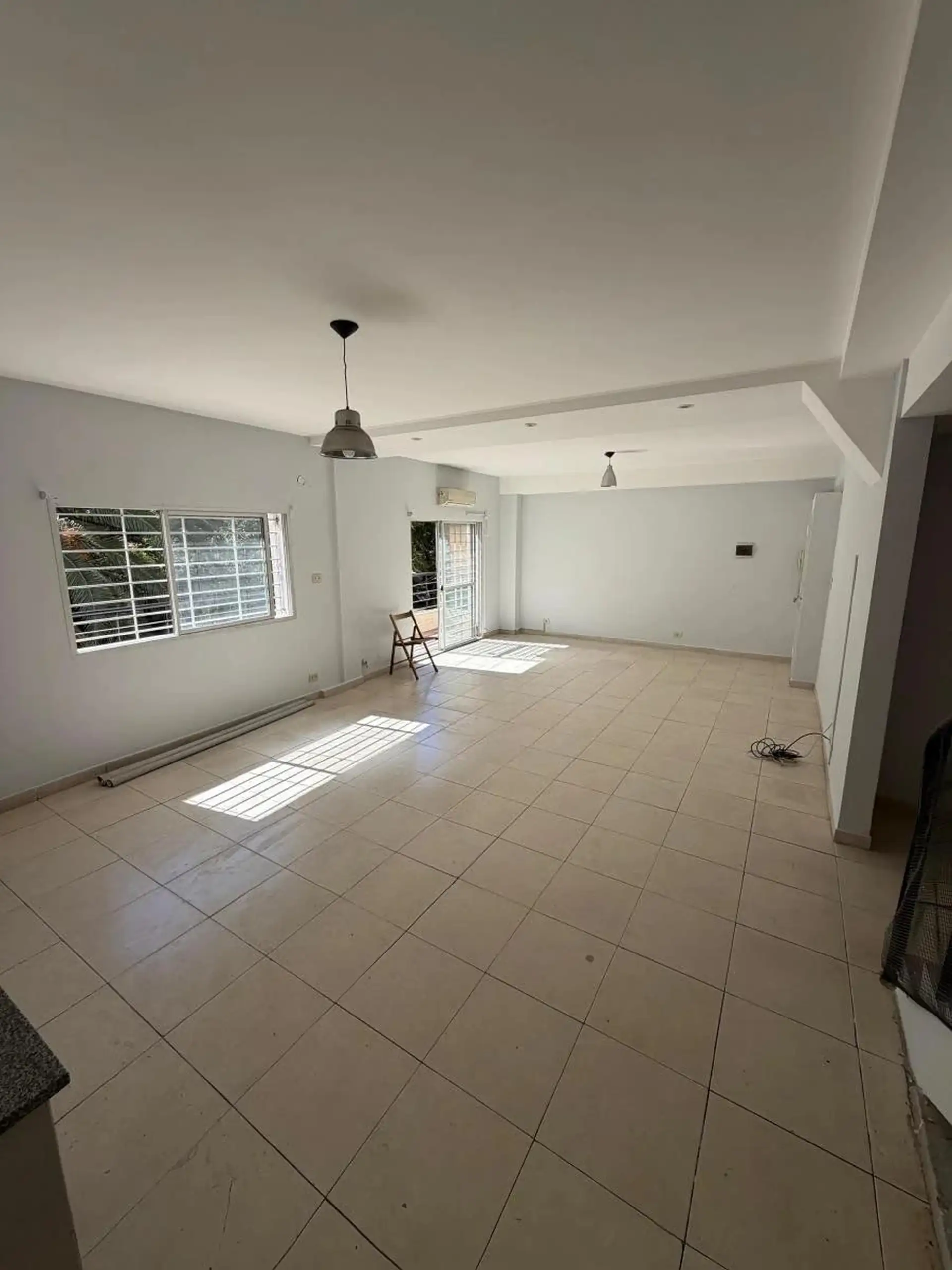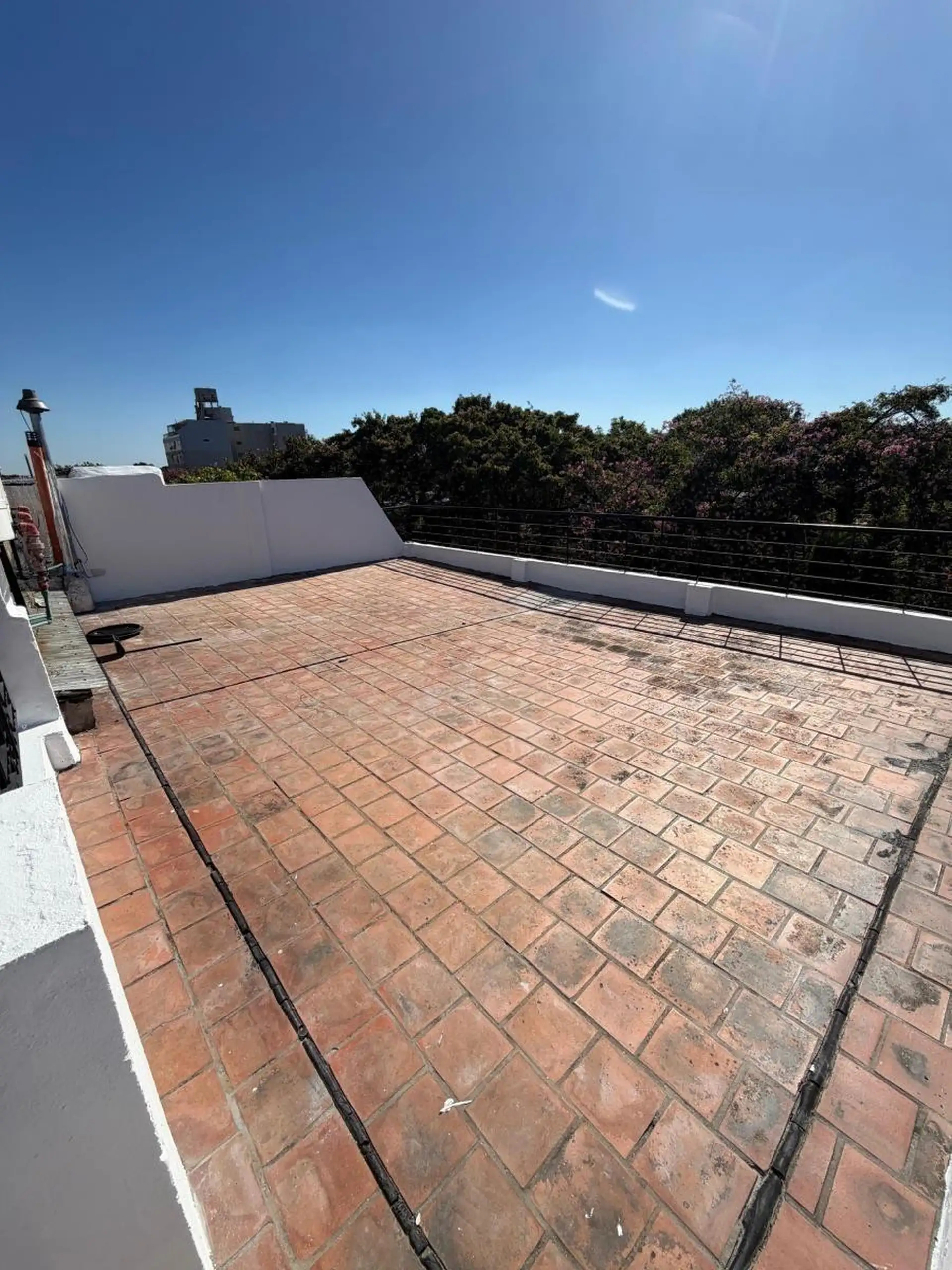 Two-bedroom PH over two floors in Flores, located on Francisco Bilbao between Portela and Jose Martí. Courtyard-facing (contrafrente) with north orientation. Total area is approximately 135 m², of which 80 m² are covered, with a living-dining room, fitted kitchen with upper and lower cabinets, a toilet, two bedrooms, a full bathroom, and a balcony.