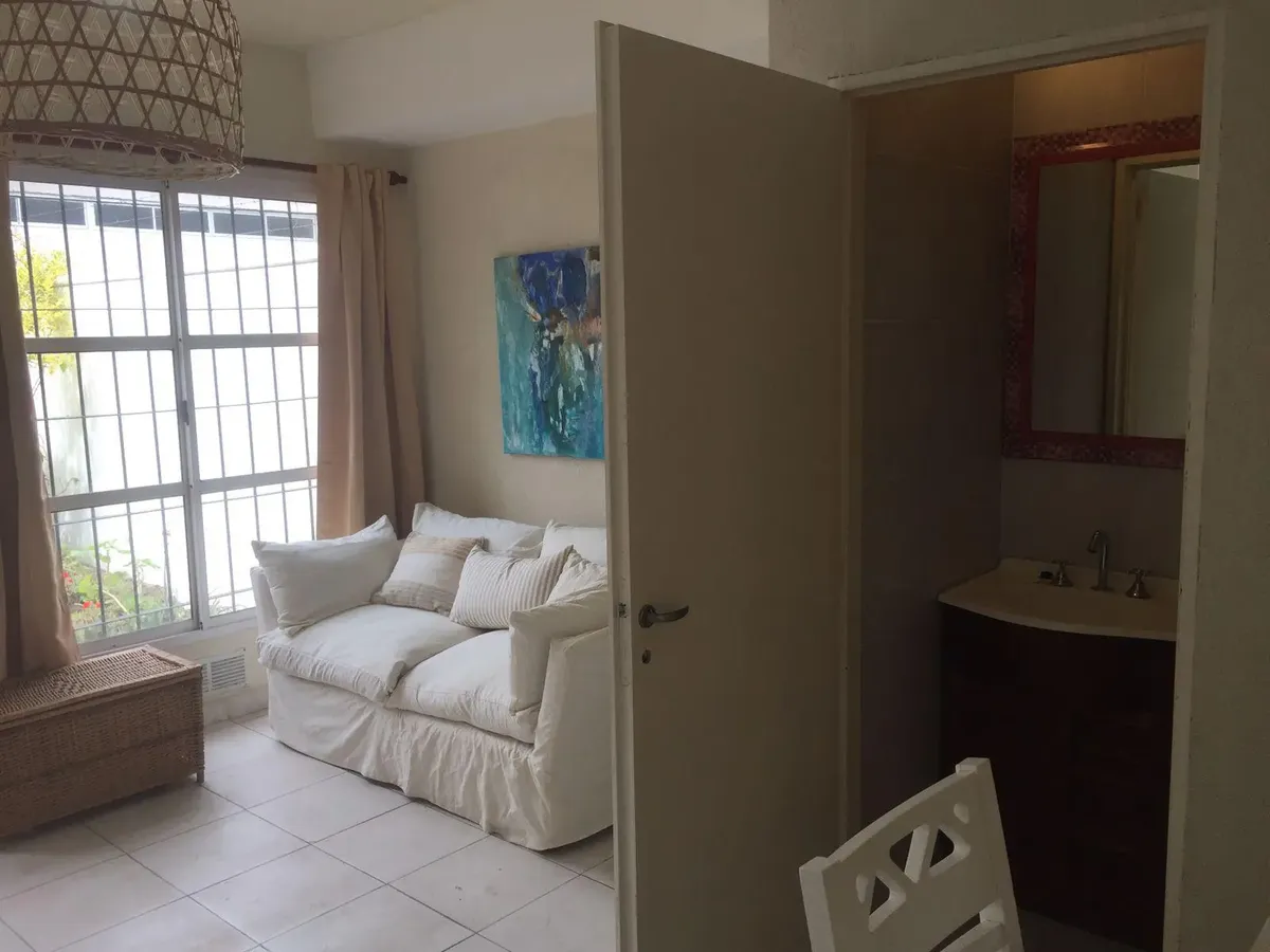 Temporary rental: a 3-room PH on two levels with a front garden and a courtyard-facing patio, 80 m² total. The unit has 2 bedrooms and 2 bathrooms (1 full bathroom with bidet and shower, plus a separate toilet). Fully furnished with a fitted integrated kitchen-dining area including fridge, oven, microwave and tableware for 4, plus WiFi. Utilities and cleaning supplies are handled by the tenant and billed for use; no building fees (sin expensas). Available from February 2026, with a minimum contr