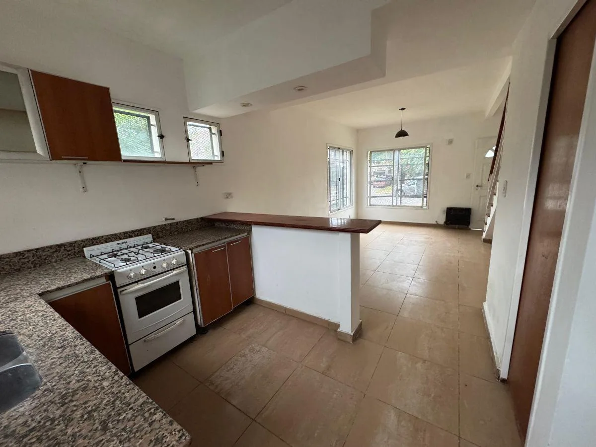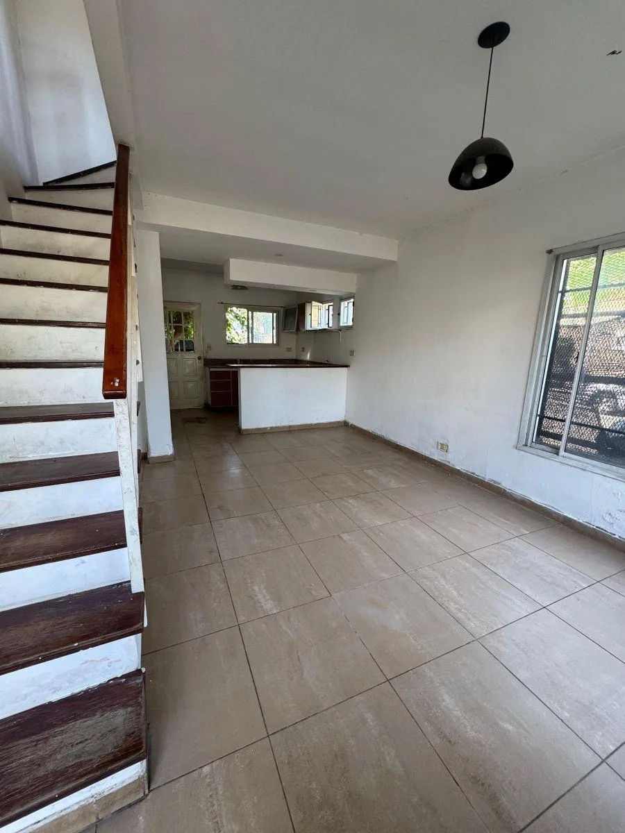 Duplex with 3 rooms for rent in Hurlingham. The ground floor has a driveway entrance, living-dining room, patio and a toilet. The upper floor has 2 bedrooms and a full bathroom. Pets are accepted. Rental requirements include proof of income and 3 guarantors with payslips or a property guarantee.