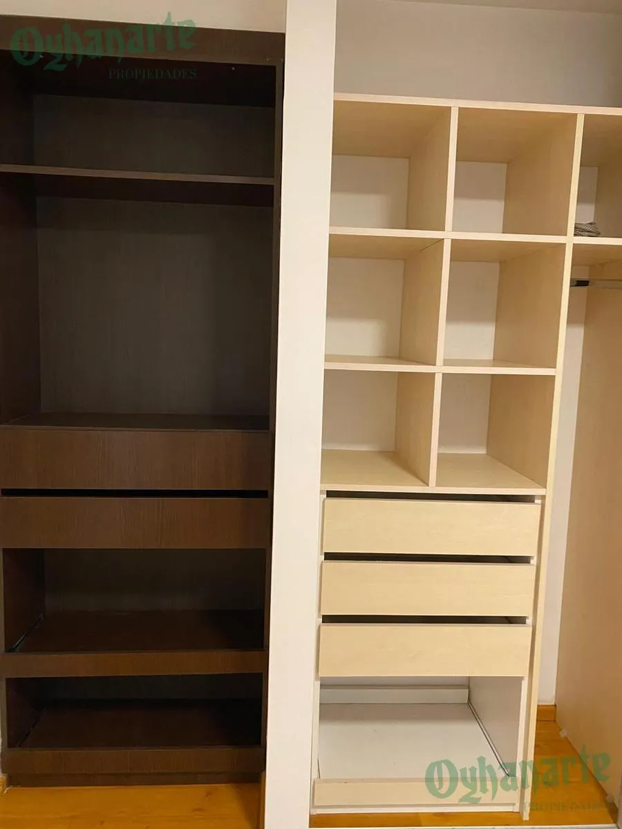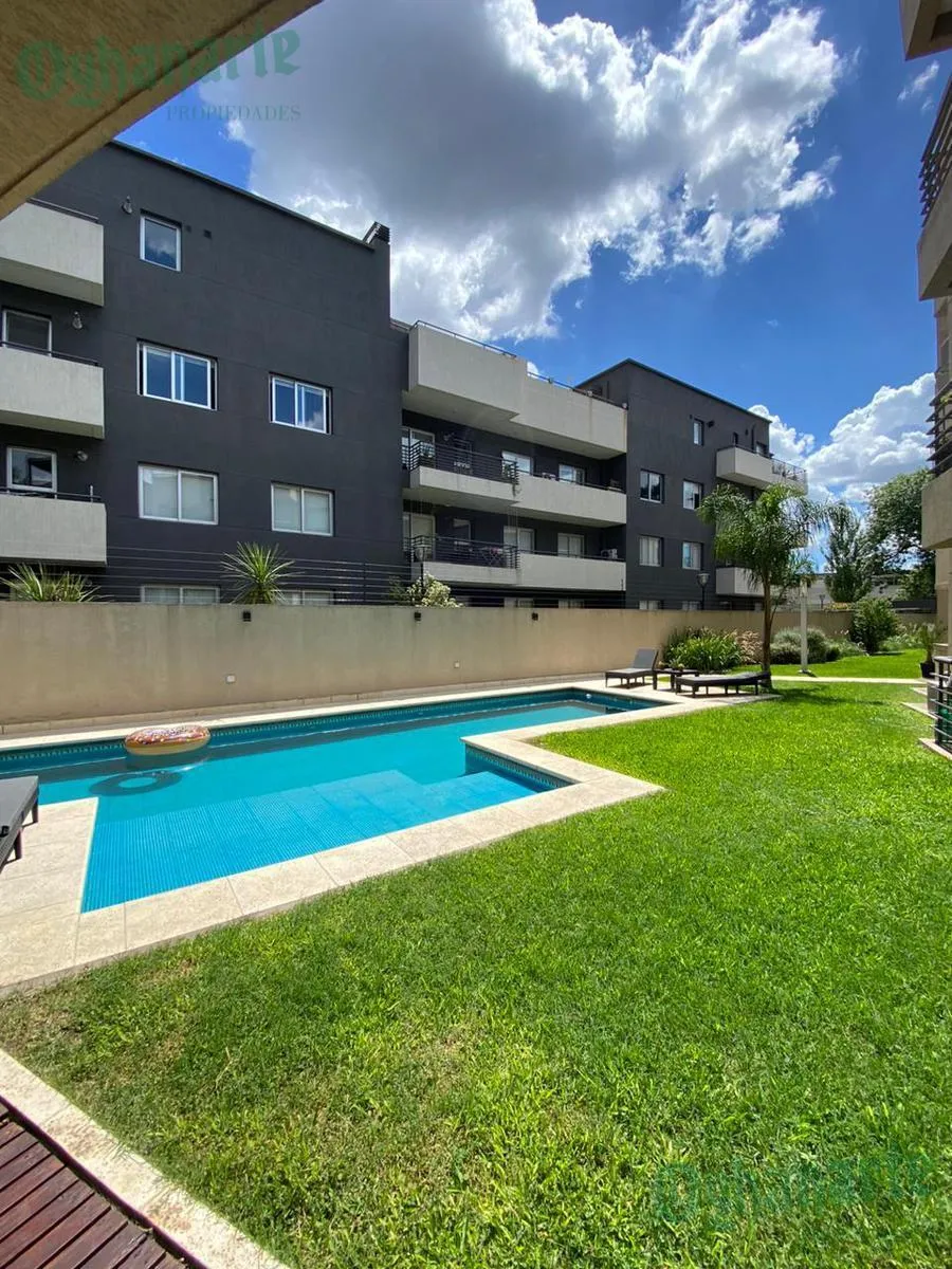 Three-room apartment in the Complejo Bruselas, on Paysandú street, near Acceso Oeste and Pte. Santa Rosa. 80 m² total area, with a living-dining room, kitchen, balcony and guest toilet. Two bedrooms with built-in wardrobes, plus a full bathroom. Furnished with a fridge, washer, microwave and glass table, and comes with 2 assigned parking spaces. Building amenities include a gym, pool with solarium, laundry, and a SUM with a grill area and bathrooms, as well as landscaped gardens. Pets are not al
