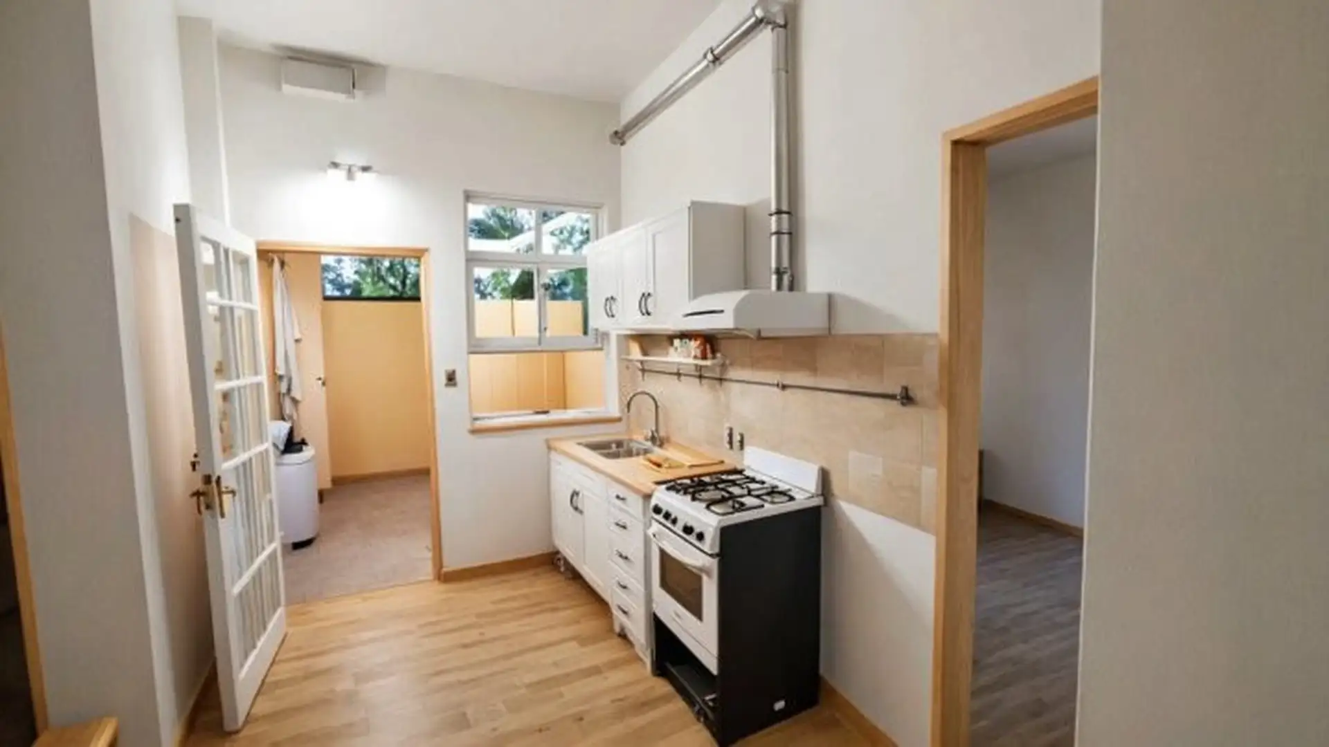Three-room apartment with 2 bedrooms and built-in closets. Recently refurbished and repainted, with ceramic floors, a security door and barred windows. Hot and cold water is available, with connected natural gas, electricity, sewerage, and mains water. One working air-conditioning unit (hot/cold) is installed in the main bedroom. Rental terms include one month’s rent in advance, one month’s deposit, and a rental guarantee via Respaldar or Garantizar (not a rent insurance or payslip-based guarant