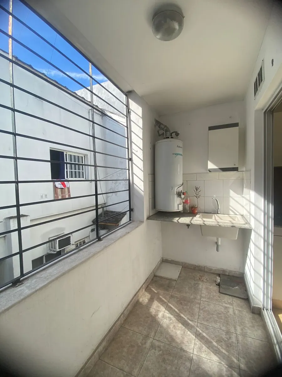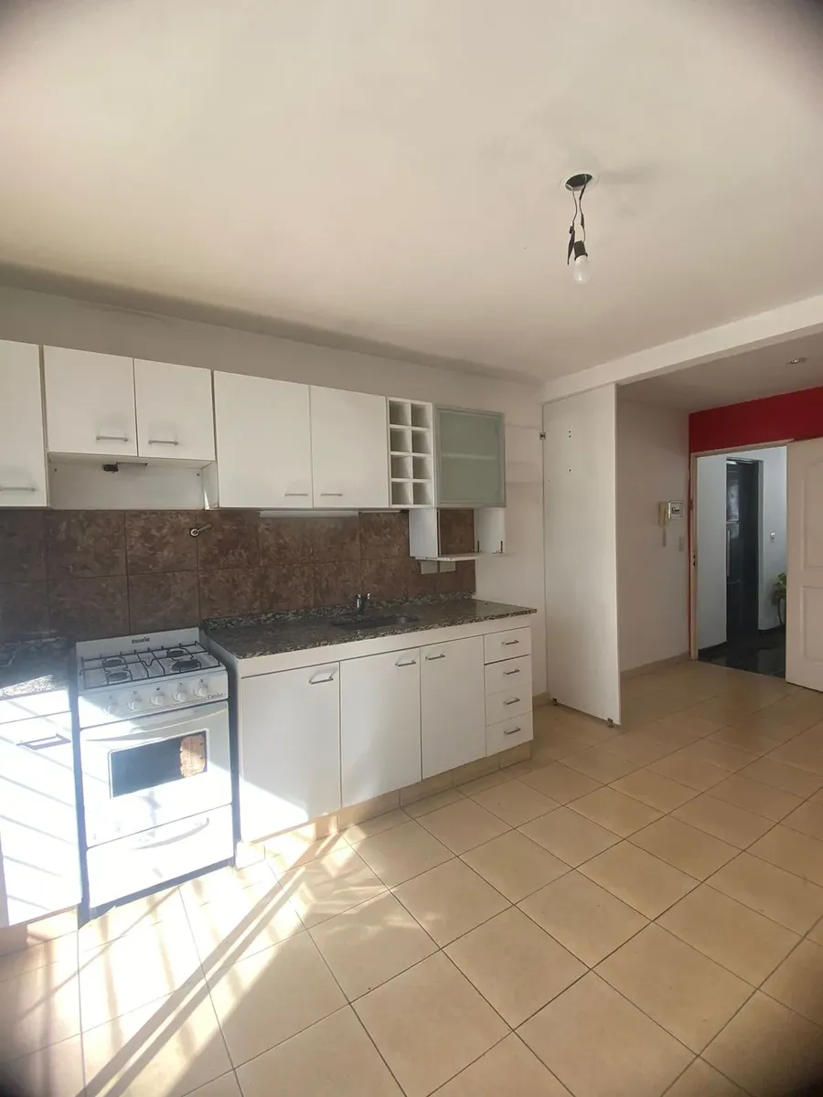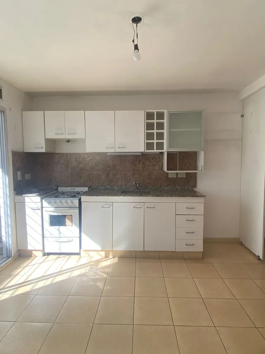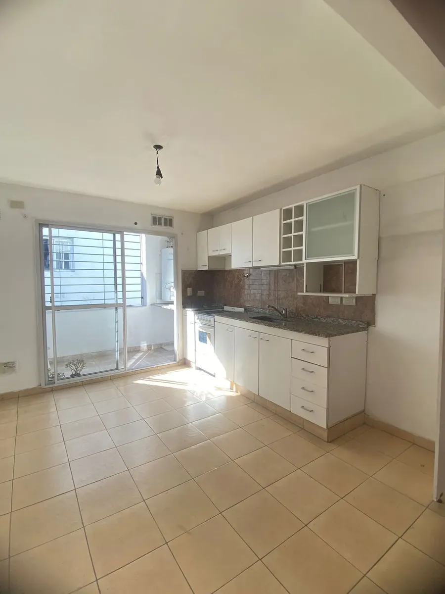 Three-room apartment for rent on Dorrego 145 in La Matanza. Located on the first floor with access by stairs. Includes an equipped kitchen-dining area with lower cabinets, countertop and wall cabinets, a balcony with a laundry area, and two bedrooms with built-in wardrobes.