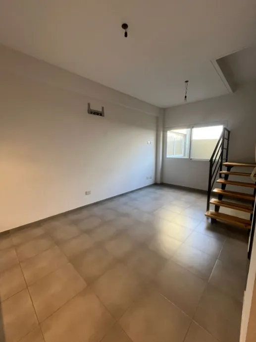 New apartment with 2.5 rooms, street-facing, with a balcony. Includes a living-dining kitchen, two-bedroom layout with built-in wardrobe in the bedroom, a full bathroom, and access via a first-floor walk-up; there is also a second-floor level. Two-year lease with adjustments every 4 months based on IPC. Rent is $500,000 per month; building fees of $60,000 include Aysa and ABL. Tenant pays electricity and shared costs included in Aysa and ABL. Pets allowed: cats only. Rental accepts a property gu