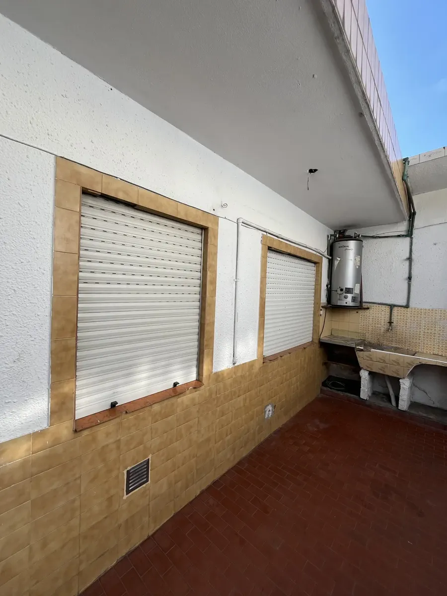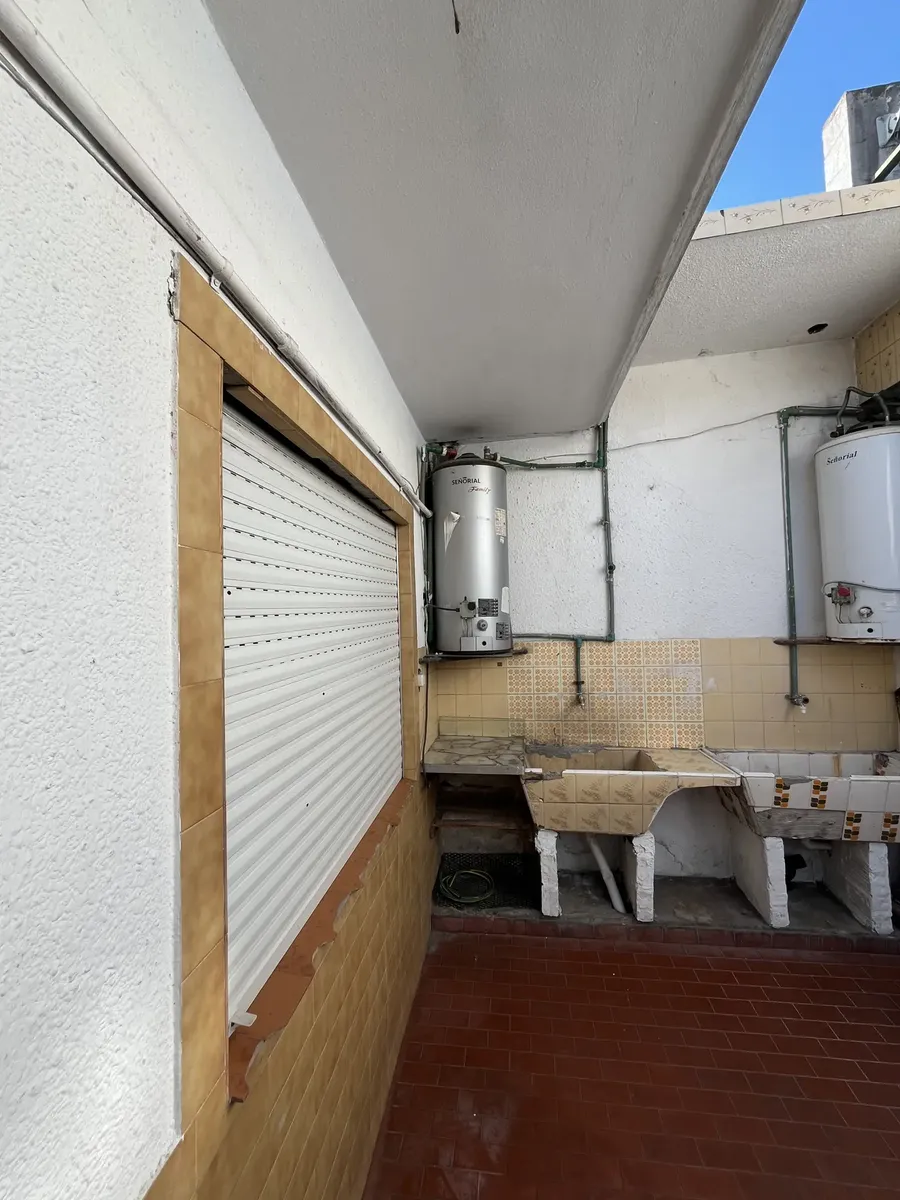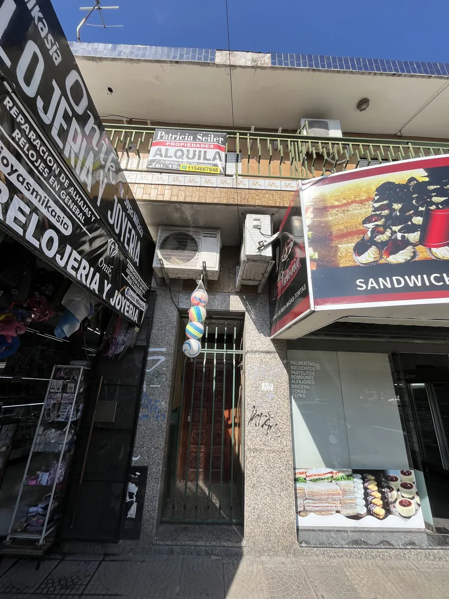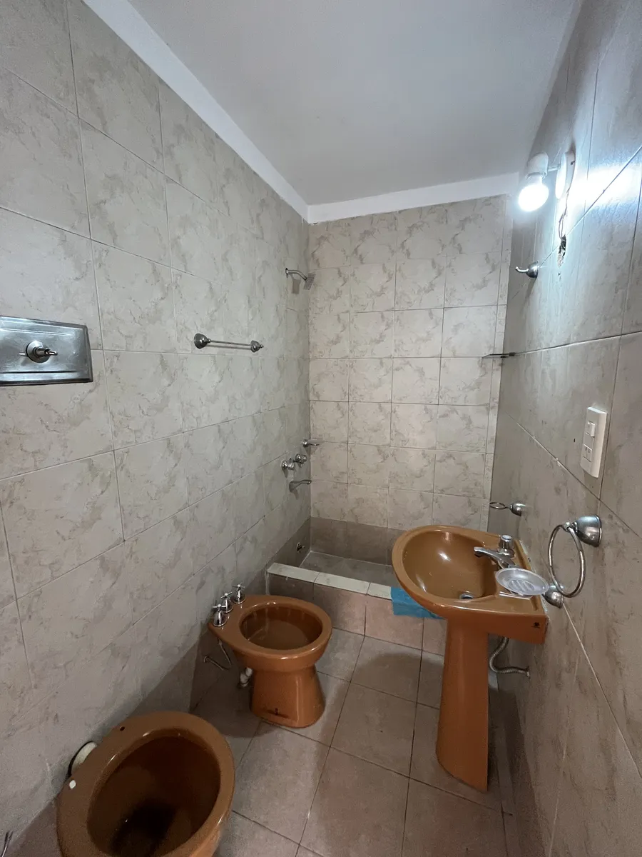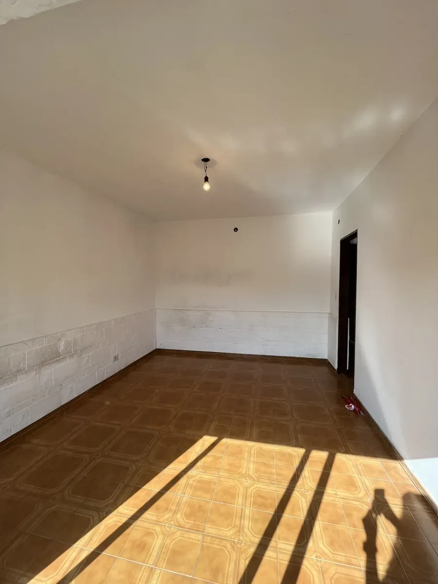 Three-room apartment on the first floor, street-facing, accessed by stairs, in Isidro Casanova. It has a living-dining room without a kitchen appliance, a separate kitchen, 2 bedrooms (one with a balcony), and a full bathroom. The shared outdoor area includes a personal washing pool. Rent is $500,000 per month with quarterly adjustments using the ICL index; building fees are $50,000 and include water and general service charges. Tenant pays electricity and gas, as well as fire and civil liabilit