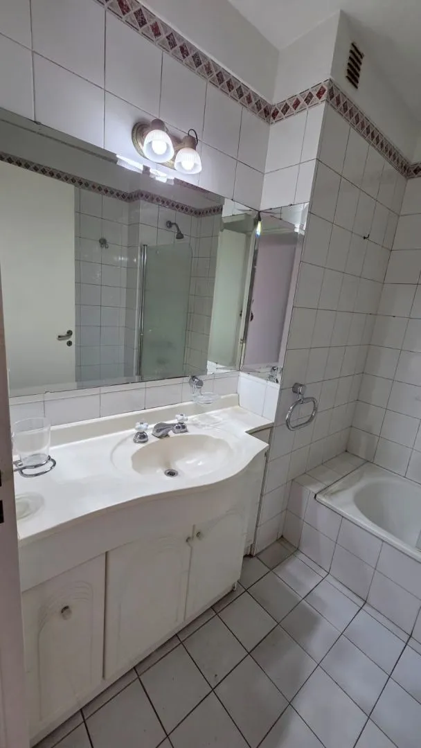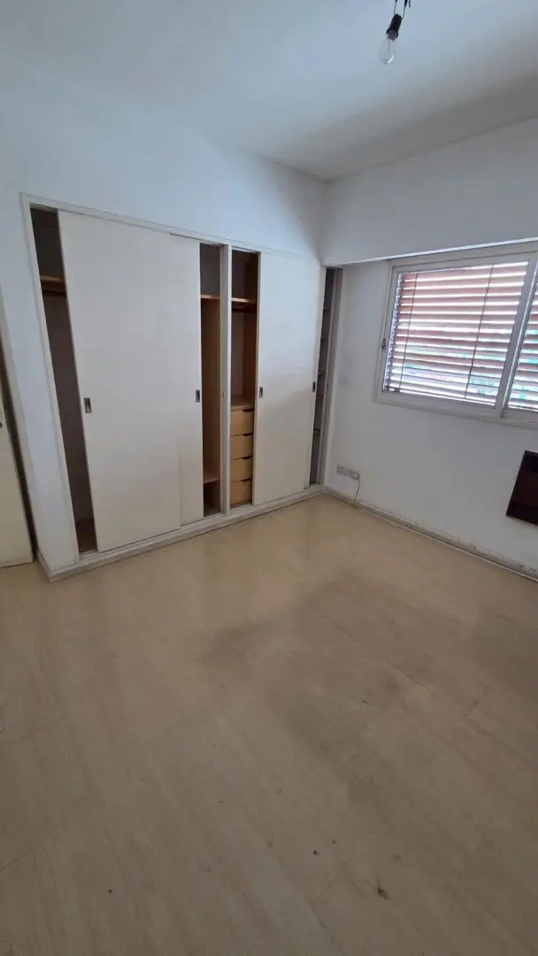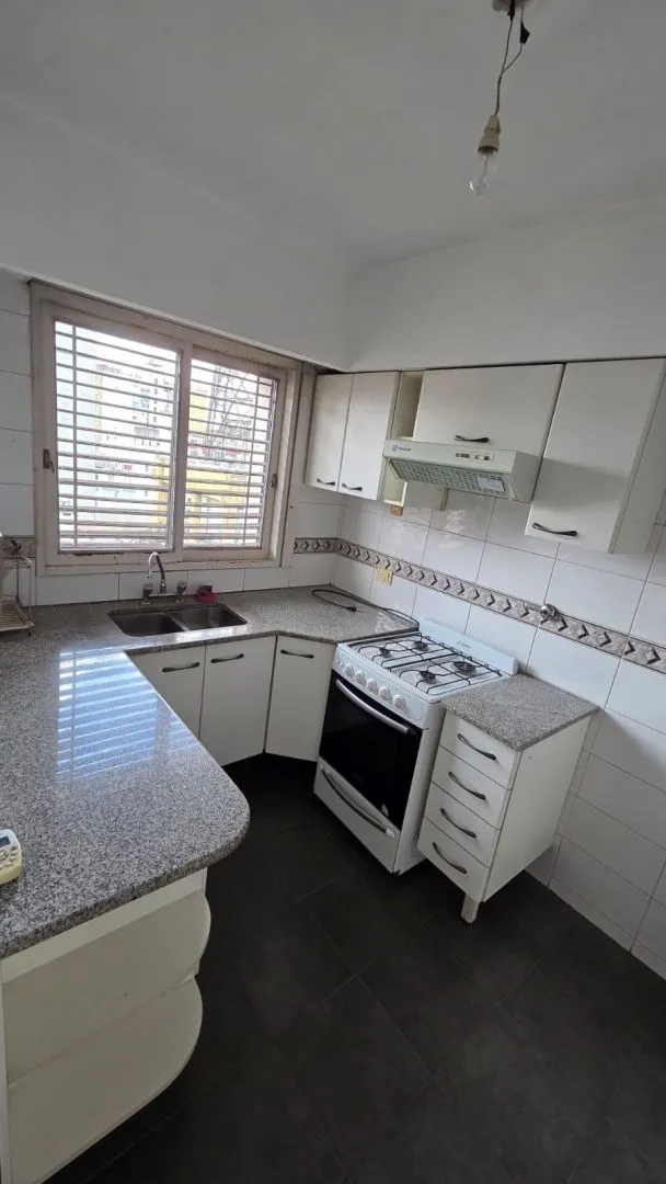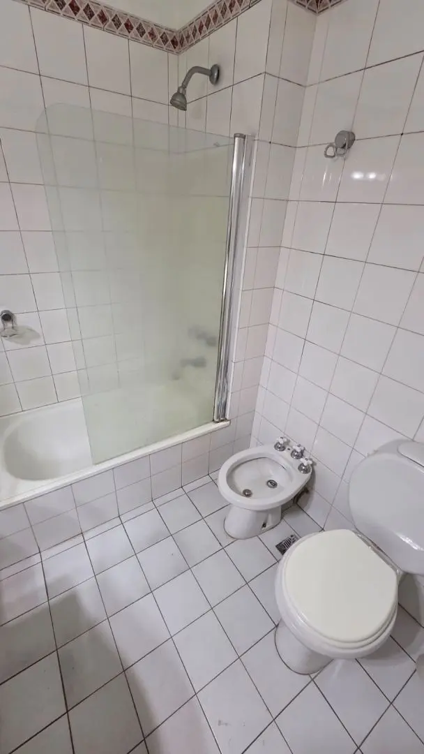 Three-room apartment for rent in Ramos Mejía with a balcony and a storage room (baulera). It has a living-dining area, a separate kitchen with a laundry area, a toilet and a full bathroom. There are 2 bedrooms with fitted wardrobes and a separate toilet. Pets are not allowed.