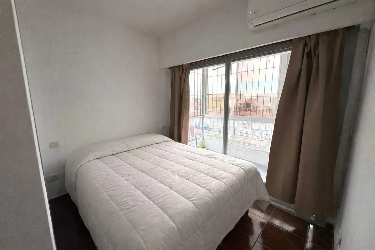 Three-room apartment of 48 m² on the second floor reached by stairs. The unit has a spacious living-dining room with air conditioning and a heater, integrated with a practical kitchen. Two bedrooms with built-in wardrobes, one with air conditioning, plus a full bathroom with shower. There is a enclosed balcony that can be used as a study area, relaxation space or for storage.