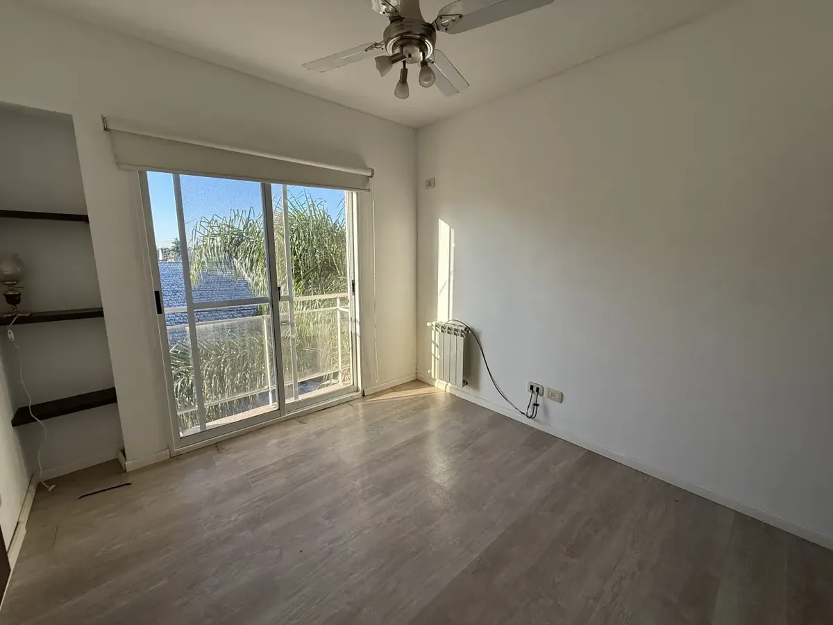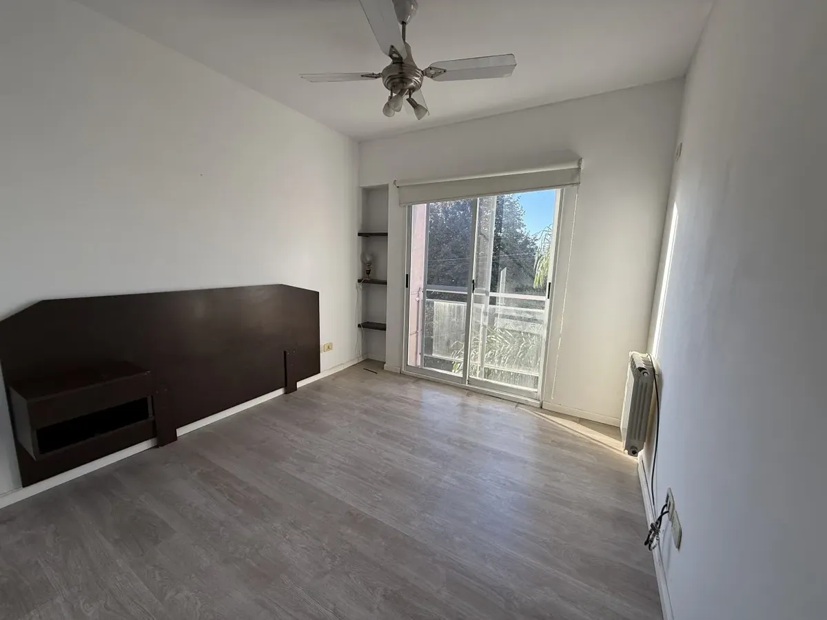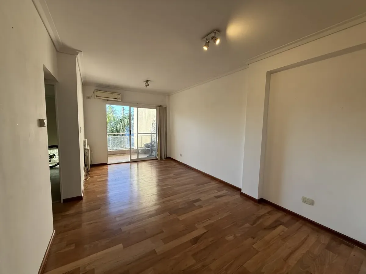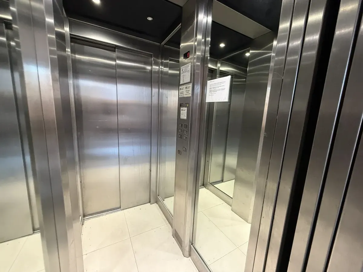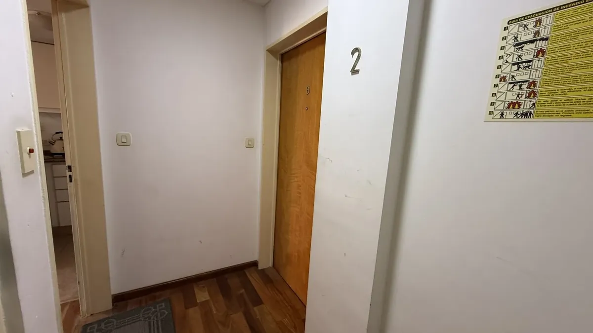 Three-room apartment with 2 bedrooms, 1 en suite with dressing room, and a separate reception bathroom. The living-dining room has parquet floors and opens to a balcony; the kitchen is semi-integrated. The building has a lift and a rooftop with a solarium and grill, with radiators throughout and a split air-conditioning unit in the living room. Pets are not accepted. Rental term is 24 months with adjustments by IPC.