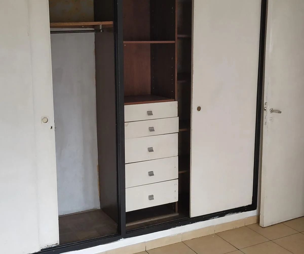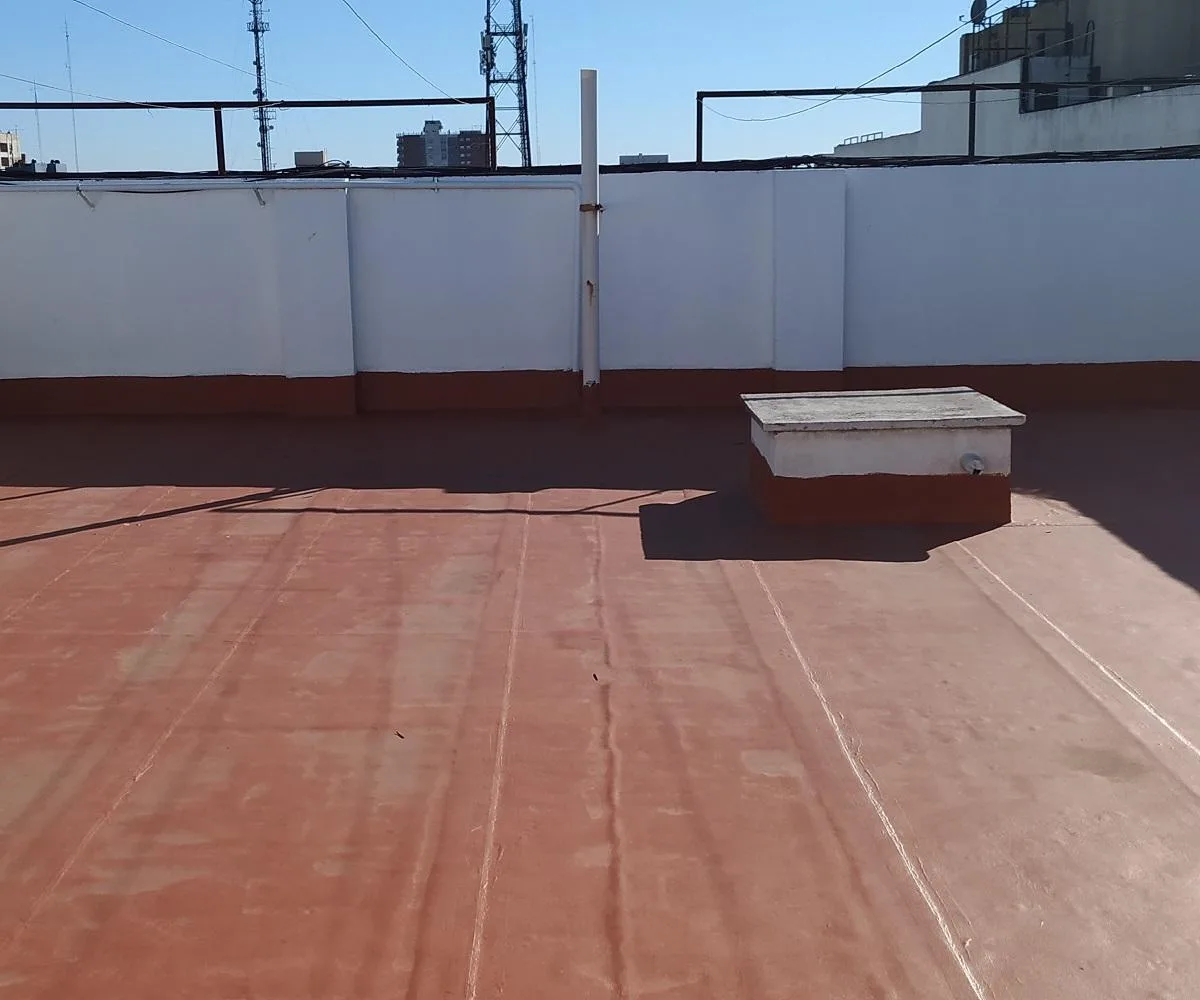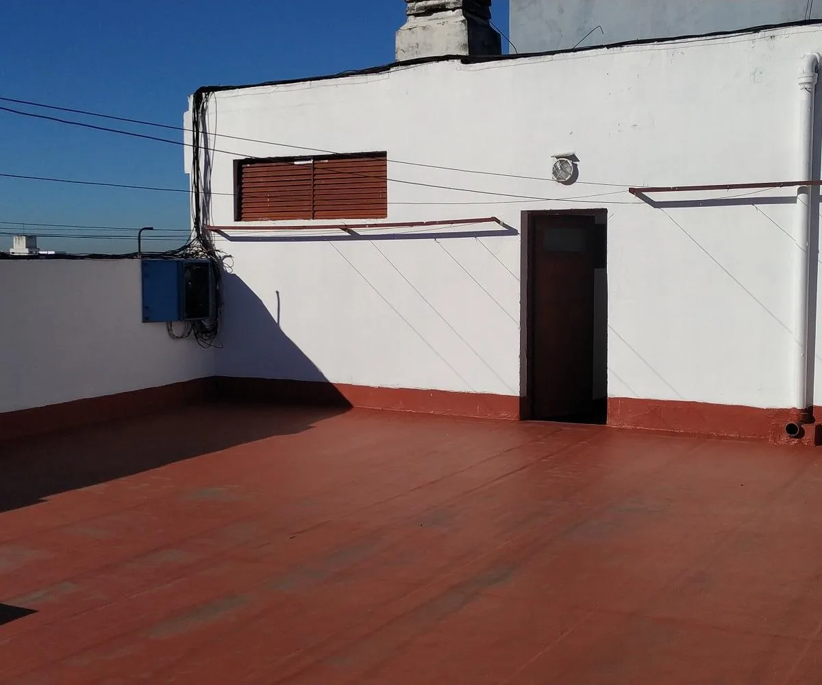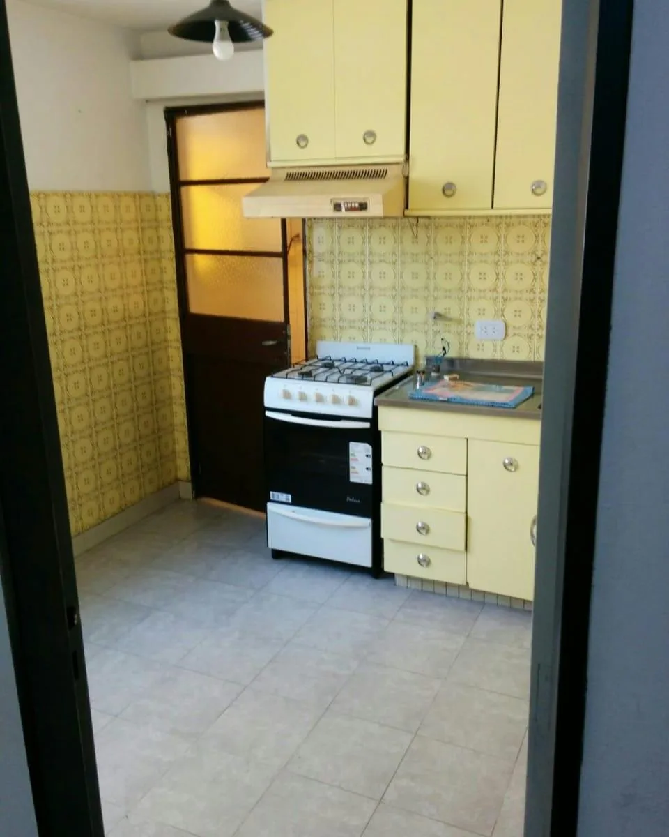 Three-room apartment in central Ramos Mejía, side-facing, with all rooms exterior. Living-dining room has parquet floors with 4.00x4.50 dimensions and a French balcony; separate kitchen is 2.60x2.60 with ceramic tile flooring, plus a 1.20x1.20 laundry area. The main bedroom is 3.00x3.10 with ceramic tile floors, built-in full-wall wardrobes and a French balcony; the second bedroom is 3.40x2.20 with parquet floors and a French balcony. There is a hallway with additional closets and a full bathroo