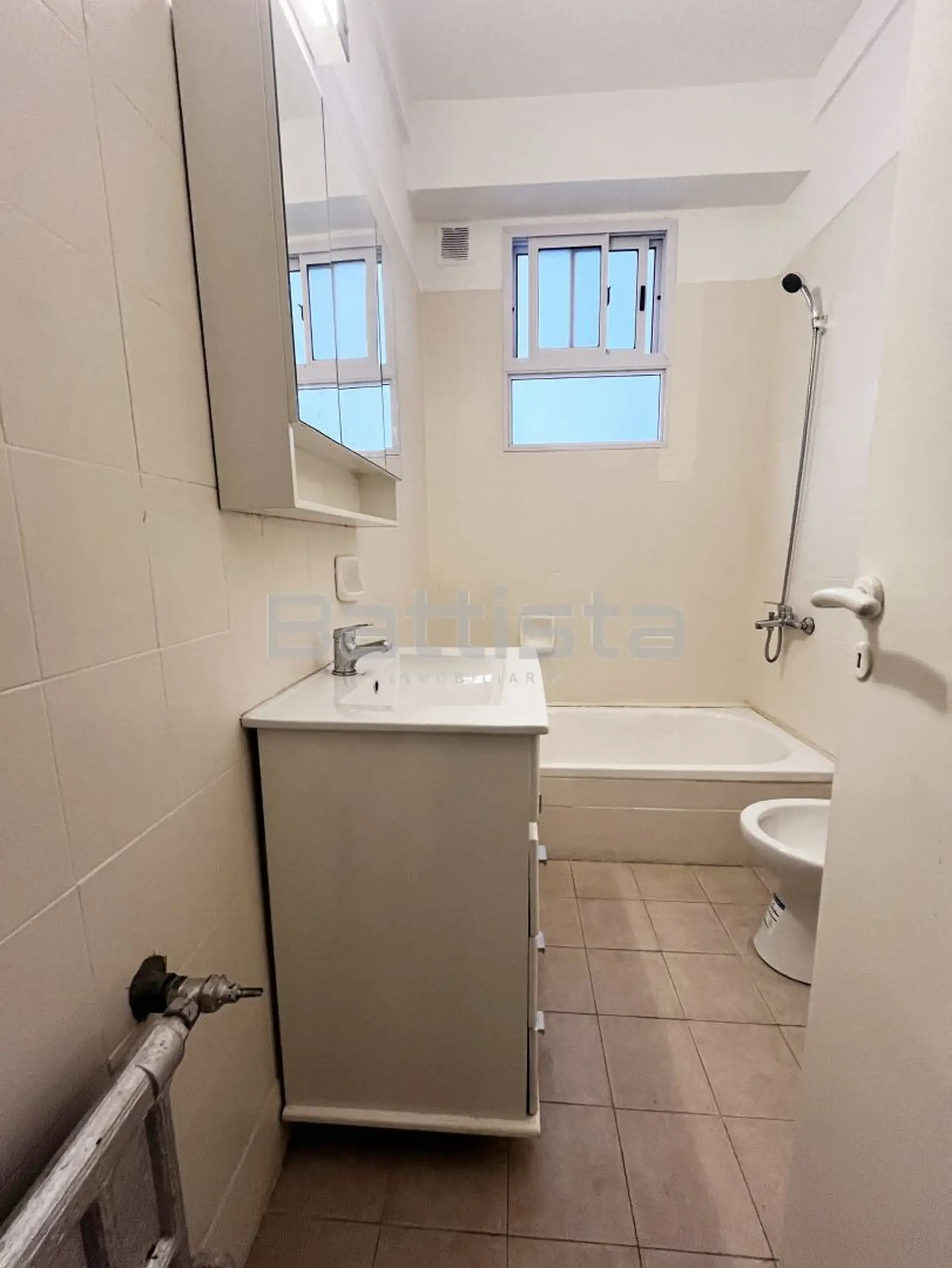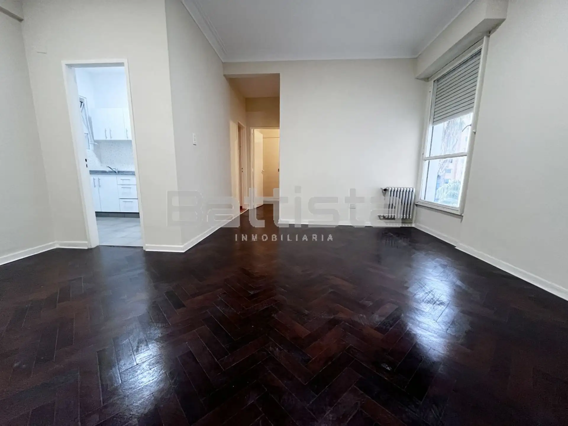Three-room, internal apartment on Av. de Mayo in Ramos Mejía, Partido de La Matanza. The living-dining room has parquet flooring. The kitchen is fully furnished and refurbished, with an external laundry area. There are 2 bedrooms with parquet flooring and built-in wardrobes, plus a full bathroom. Suitable for both professional use and living.