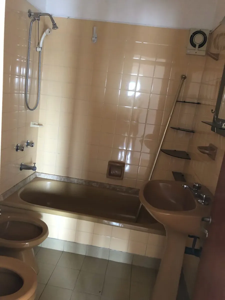 Apartment with 2 bedrooms in very good condition in Ramos Mejía. It includes an independent laundry area and a large assigned parking space, in a building with surrounding park space. Rent is ARS 900,000, with building fees of ARS 193,500; municipal charges are ARS 60,737 and AYSA is ARS 35,104, while ARBA is ARS 5,600.