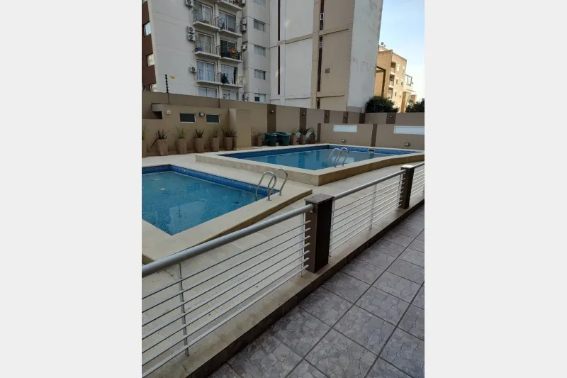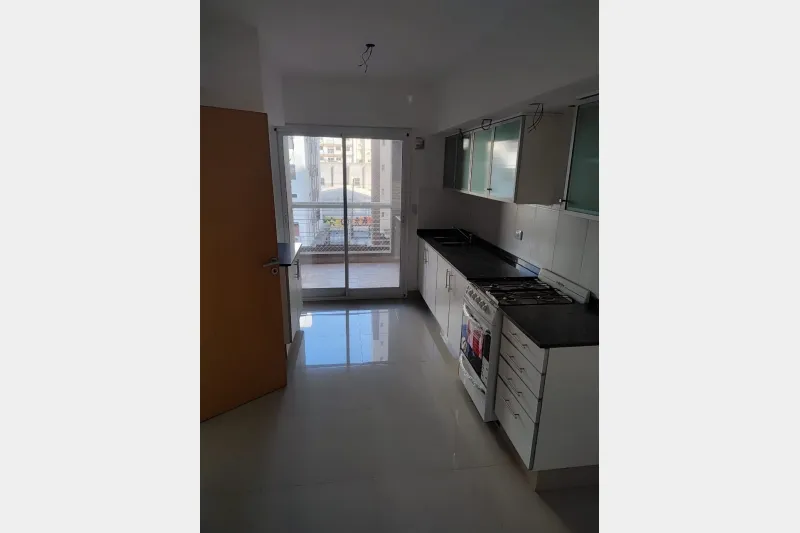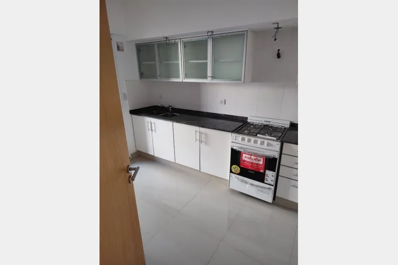 Three-room apartment with a living-dining area, separate eat-in kitchen, laundry room, and a long balcony. Two bedrooms with built-in wardrobes, with the main bedroom en suite and an additional full bathroom. Total area: 100 m², with assigned parking space. The building has security, a pool, a gym and a communal room (SUM). Rental terms: 2 months’ deposit and quarterly rent adjustment by IPC. Requirements set by the owner: direct-family property guarantee and proof of income, or a rental insuran