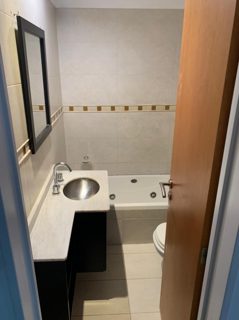Apartment with 3 rooms and a balcony. Building has a security totem, pool, residents' lounge (SUM) and laundry. Rent requires a family property rental guarantee bond and proof of income; pets are not allowed. Tenant pays electricity, gas, water, municipal tax, building fees (expensas comuni), and fire insurance.
