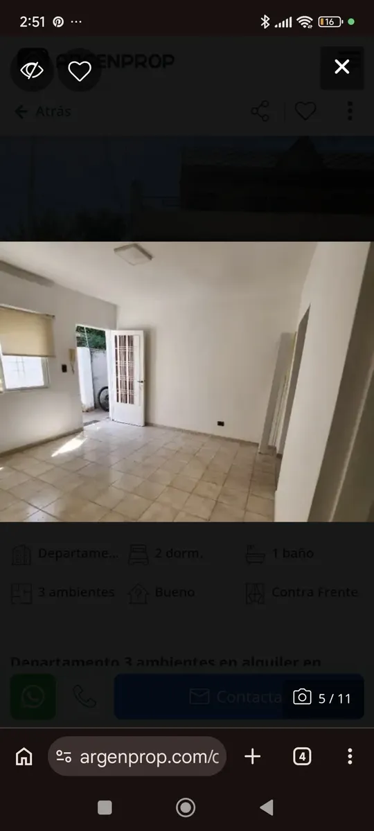 Ground-floor or upper unit with private entrance (PH) in La Matanza. Three-room layout with 2 bedrooms. Listed without building fees (expensas).