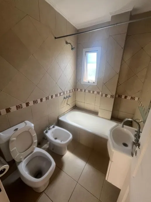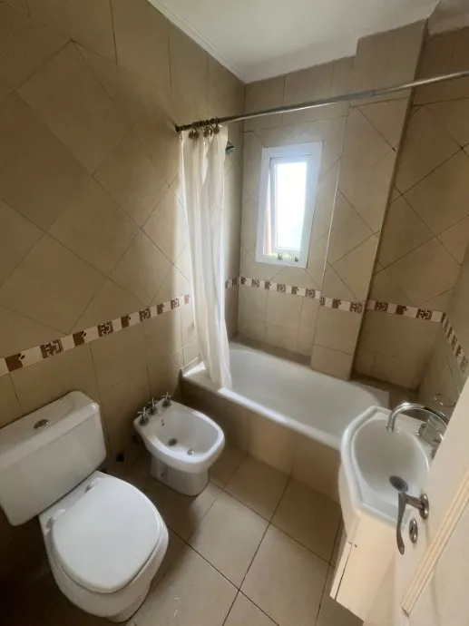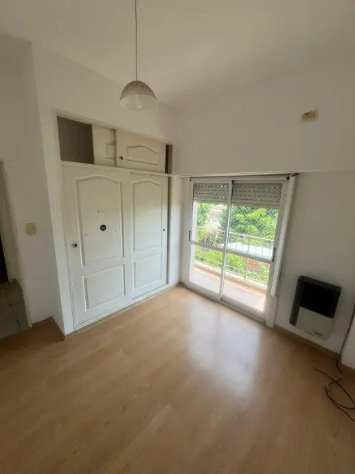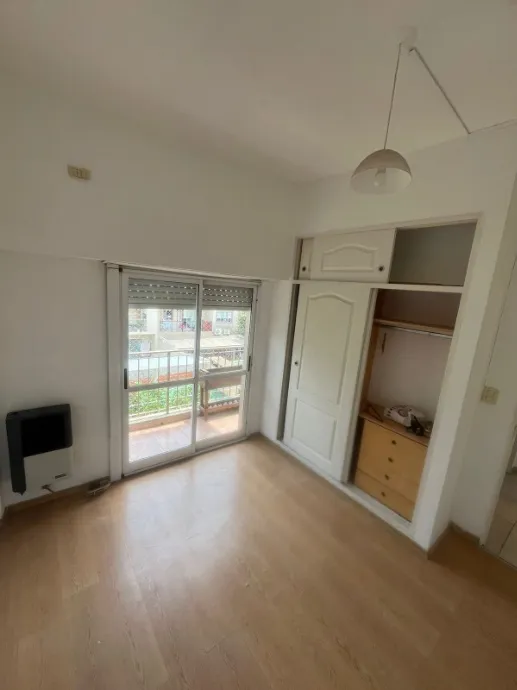 Three-room apartment with a balcony, second floor reached by stairs. Includes an integrated eat-in kitchen and 2 bedrooms with built-in wardrobes. Building has a small number of units and charges low building fees. 2-year contract with adjustments every 4 months based on IPC. Rent is $700,000. Building fees are $150,000 and include AYSA and ABL; the tenant pays for electricity, gas, and ordinary building fees (including AYSA and ABL). No pets. Accepts property-owner guarantee and payslips, as we