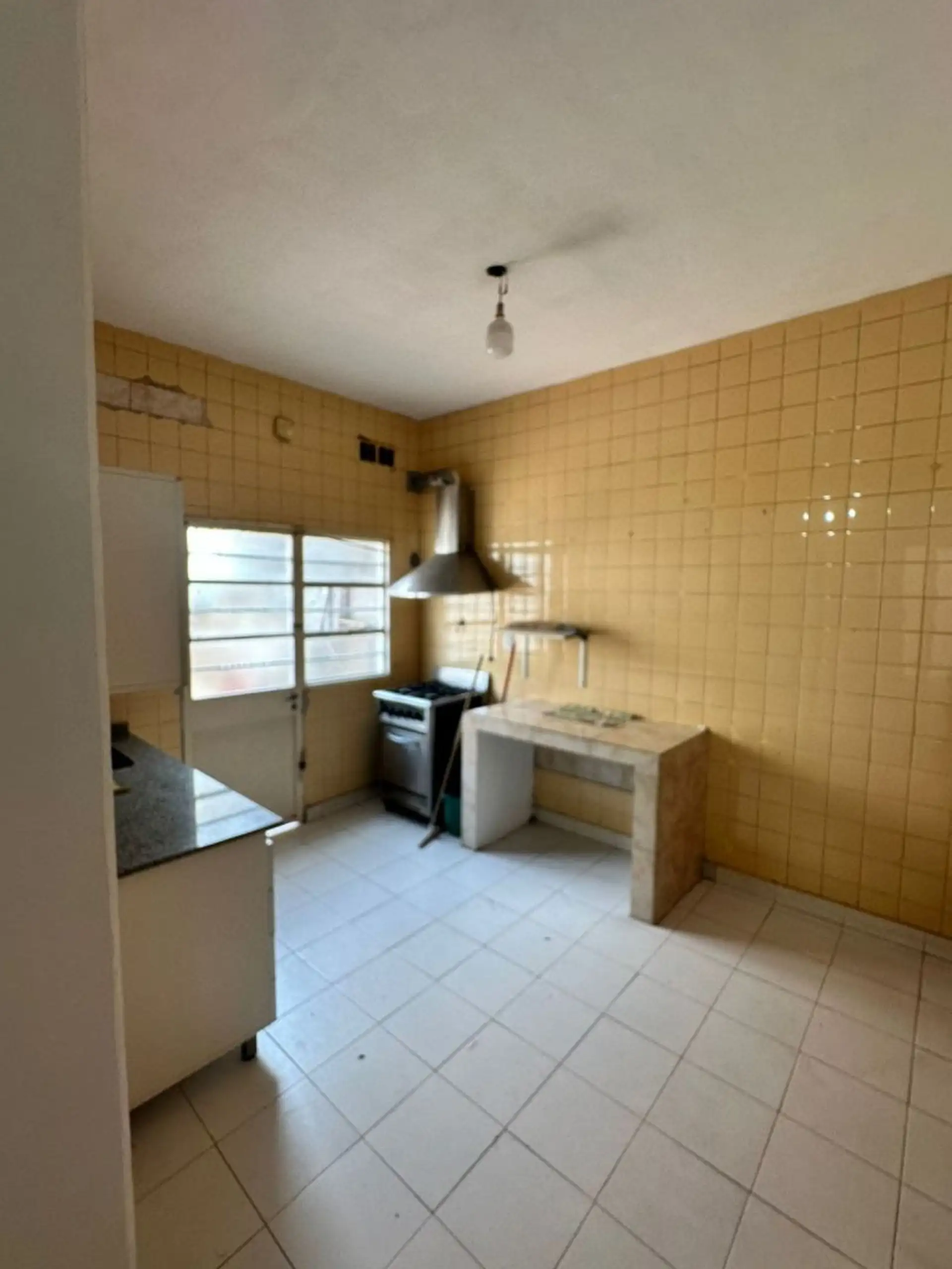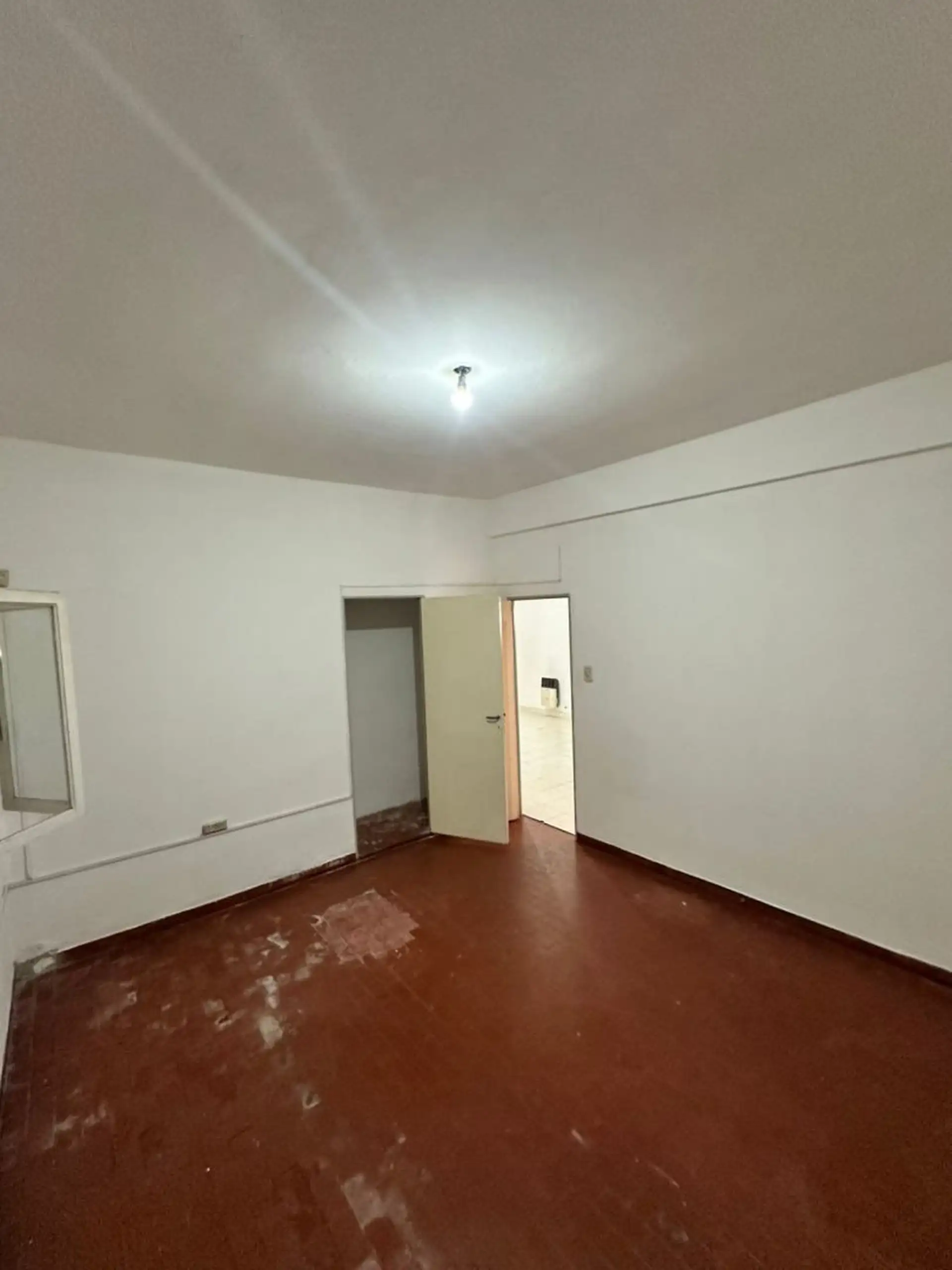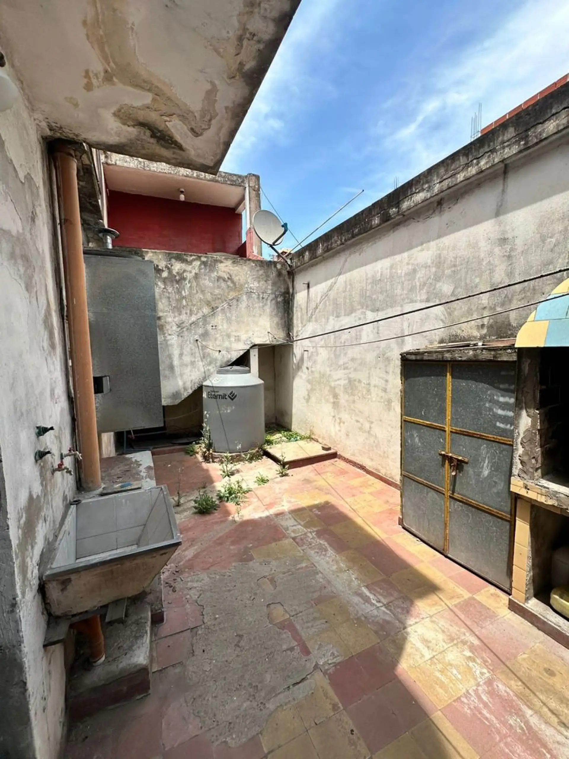 PH ground-floor or upper unit with private entrance in Gregorio de Laferrere, La Matanza, 100 metres from Av Luro. The unit has a living-dining area with ceramic flooring, air conditioning (hot/cold) and a balanced flue heater, plus a kitchen with upper and lower cabinets and an industrial cooktop with an extractor hood, including a connection for a washing machine. It has one bathroom and two bedrooms with red tile flooring, each with closet installation; one bedroom has air conditioning (hot/c