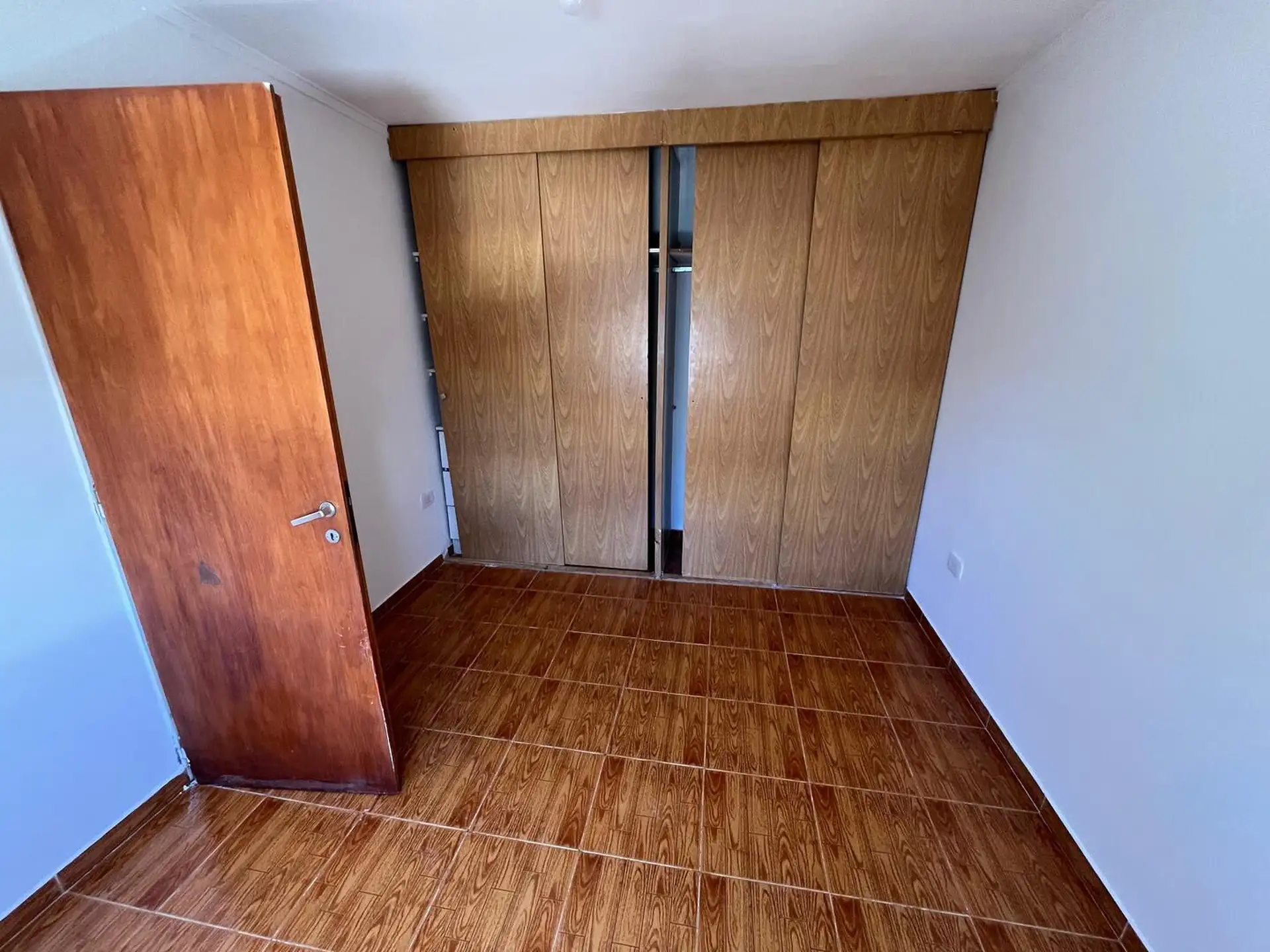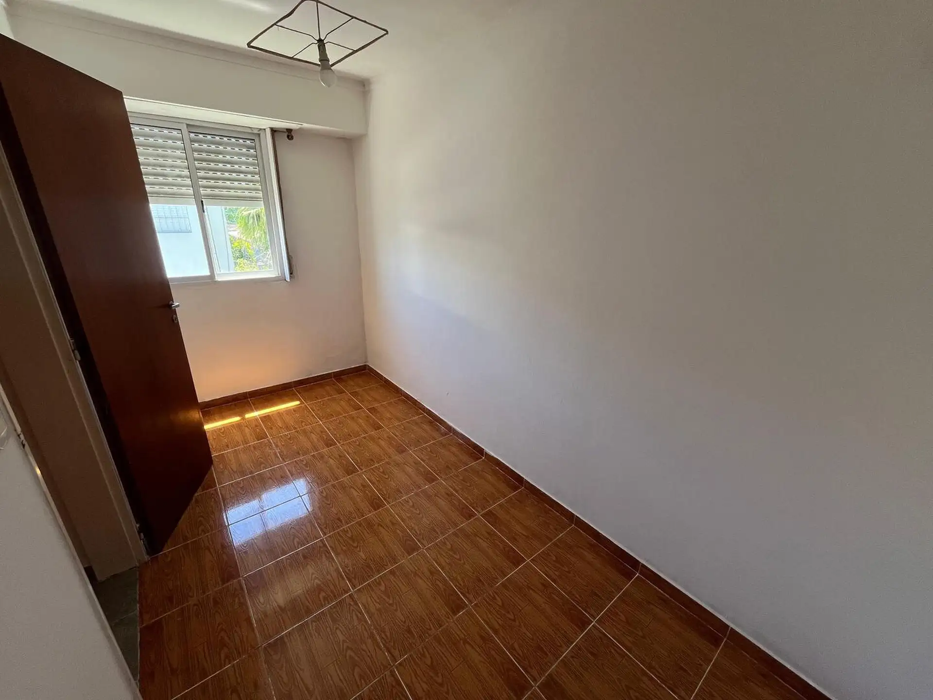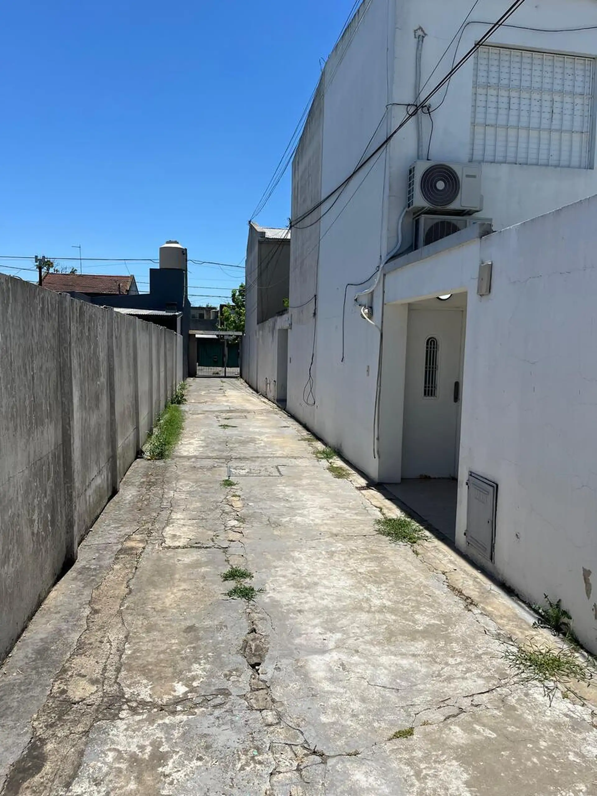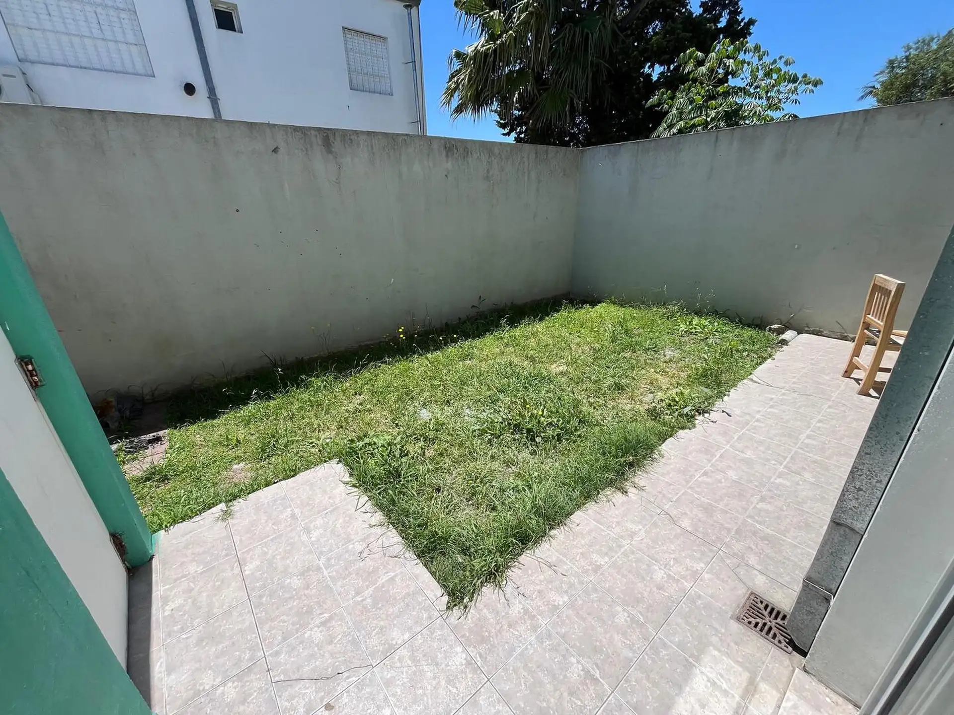 Duplex apartment accessed via a corridor and located on the upper floor and ground floor. Upper level has 2 bedrooms, one smaller without a closet and not suited for a double bed, and the larger bedroom with a closet, plus a full bathroom. Ground floor includes a small living-dining area of approximately 5 x 3 m, a separate kitchen, a toilet, a patio with greenery, a laundry area, and an uncovered parking space. Rent is ARS 500,000 with a 2-year contract and quarterly adjustments based on ICL; b