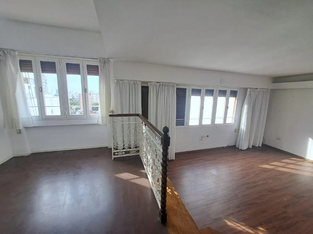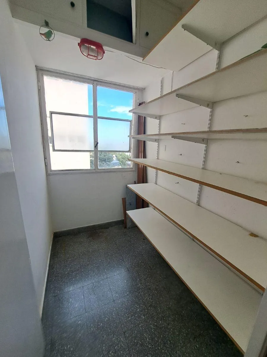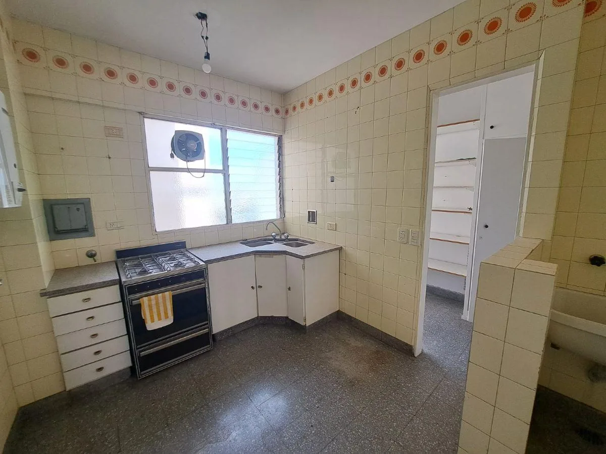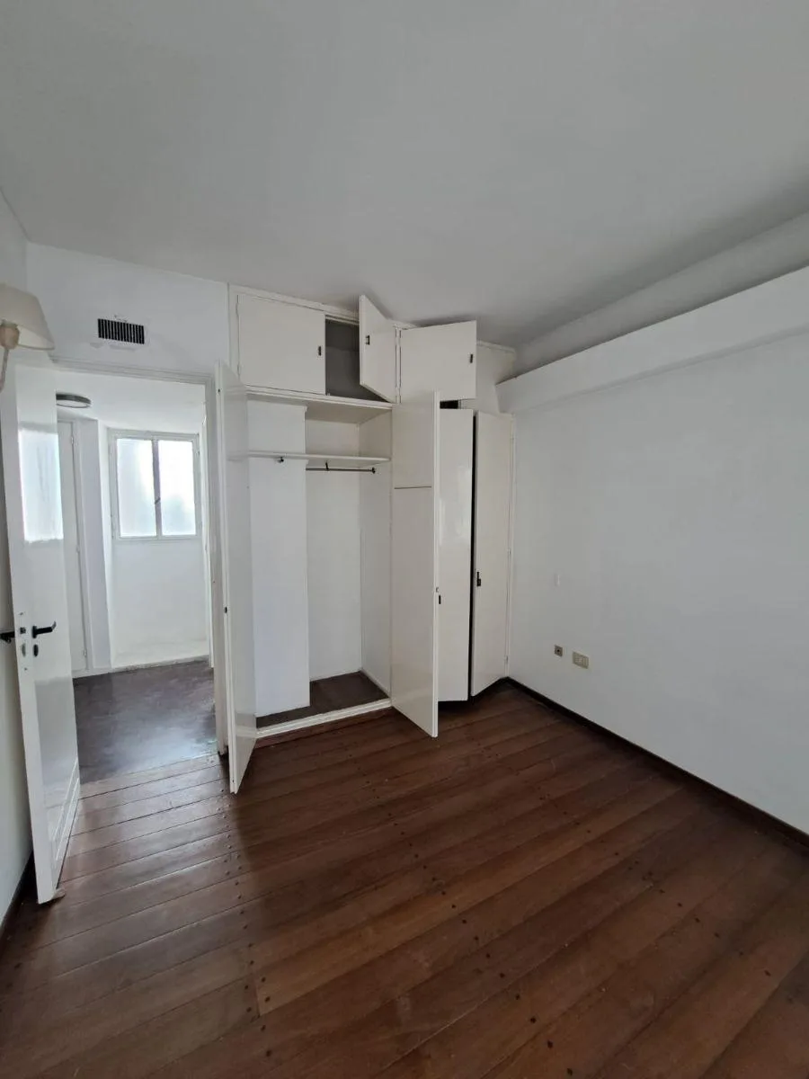 Half-floor apartment of 53 m² (5th or 6th floor) courtyard-facing. Living-dining area with a raised section, dining kitchen with base and wall cabinets, and one staff room with service bathroom. Two large bedrooms with built-in wardrobes, fitted joinery and storage rooms (bauleras), plus a full bathroom. Central heating. Covered parking space with remote control; building fees are ARS 150,000. Rental guarantee bond and fees depend on the case, and pets are not accepted.