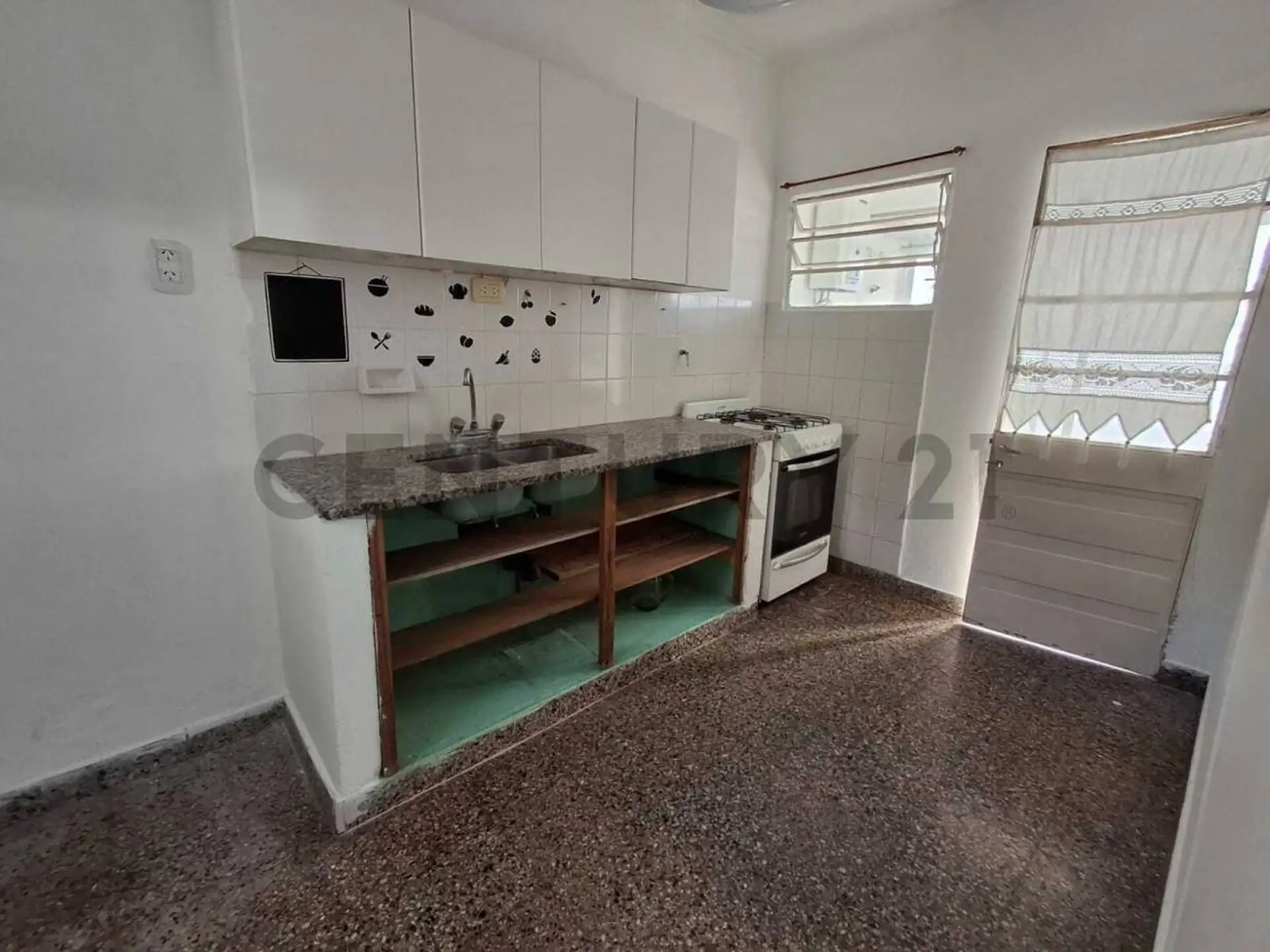 Interior apartment (PH) with a separate kitchen, covered laundry area and two small patios. It has a full bathroom and 2 bedrooms with wooden floors and built-in wardrobes. No building fees. Small pets accepted. Two-year lease with quarterly rent adjustments based on IPC.