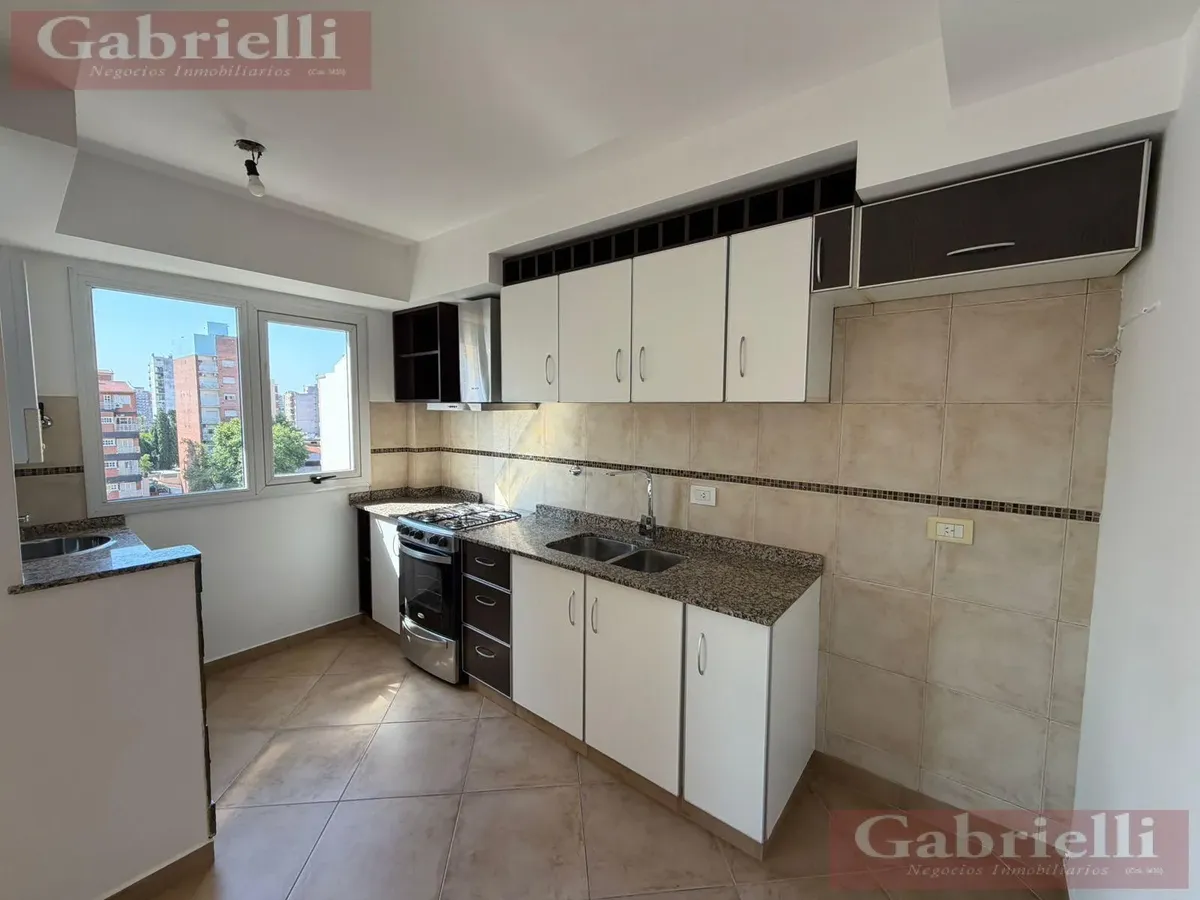 Three-room apartment in excellent condition in Lanús Este, on the 6th floor (unit A). It has 2 bedrooms and 2 full bathrooms. The building is 5 years old; the living-dining room and both bedrooms have natural ventilation. The kitchen is fully equipped, and the unit includes parking.