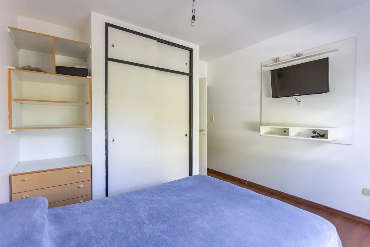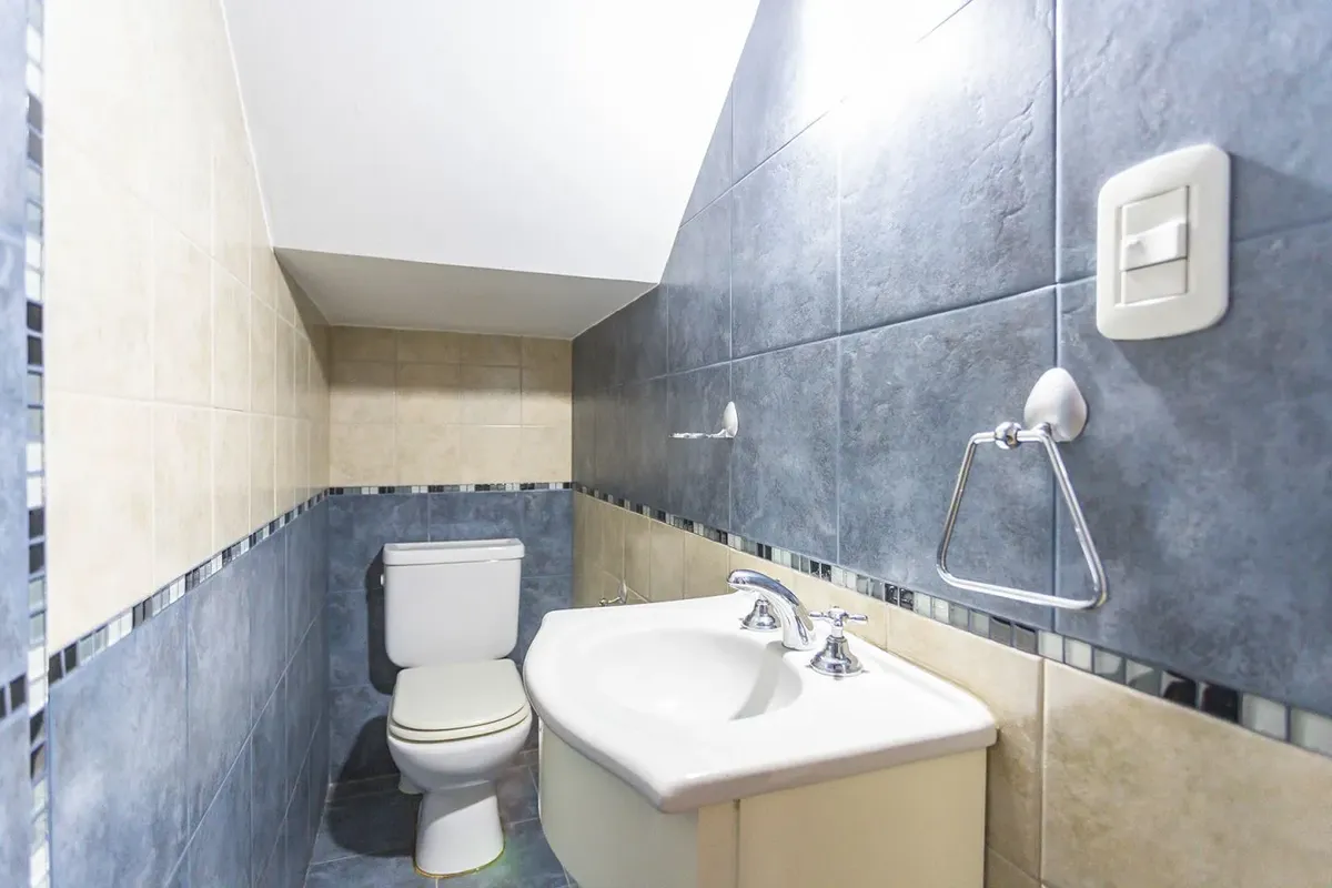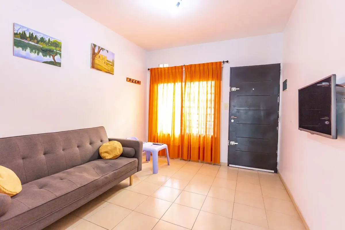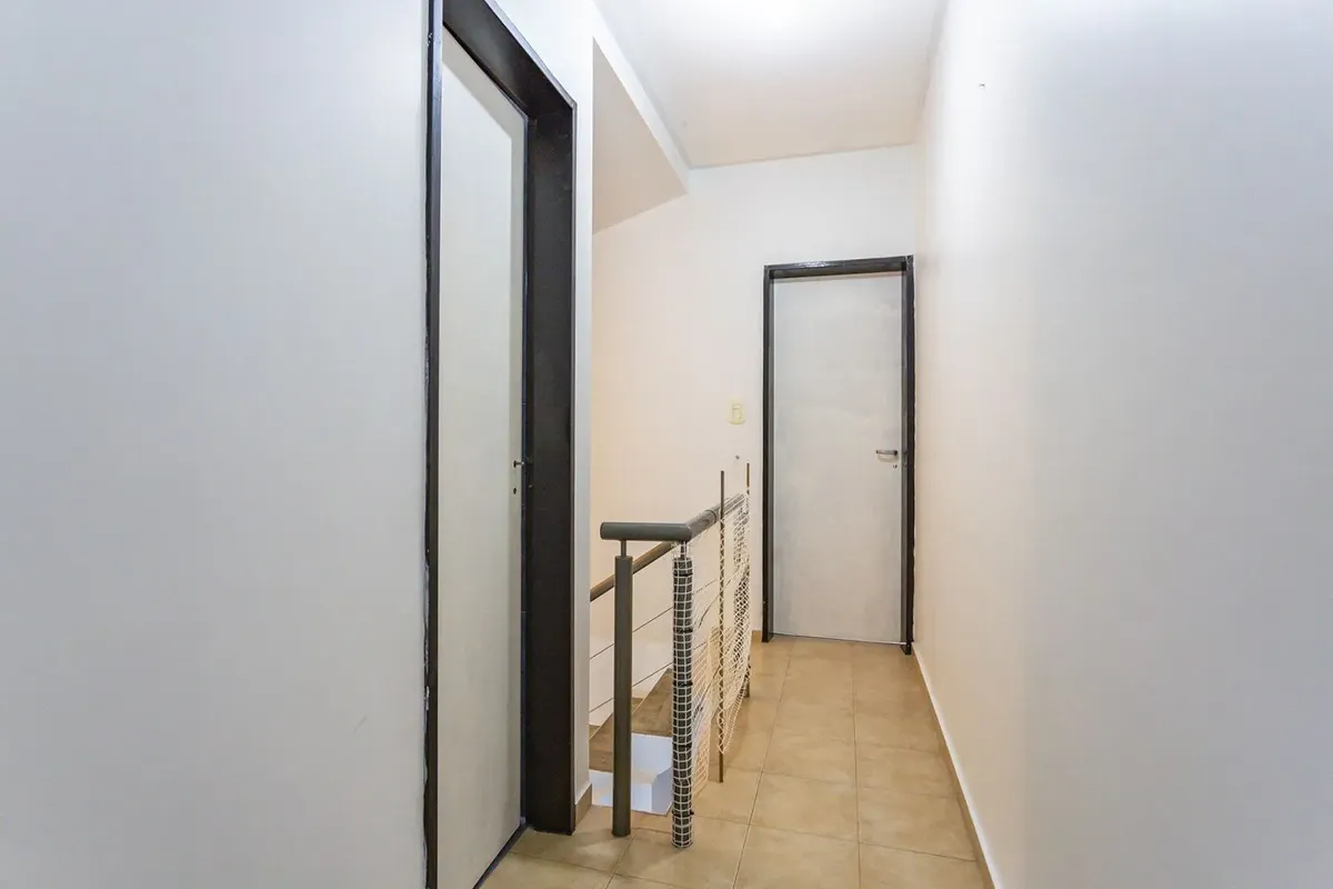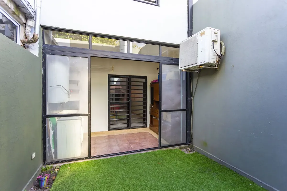 Duplex apartment with 3 rooms developed over two levels, unit 4. On the ground floor: living room, guest toilet, and a kitchen-dining area with fitted lower and upper cabinets, cooking appliance, and stainless-steel hood; storage under the staircase; semi-covered laundry; and a patio with a grill. Upstairs: landing, full bathroom with bathtub, and 2 bedrooms with built-in closets. The unit includes a semi-covered parking space.