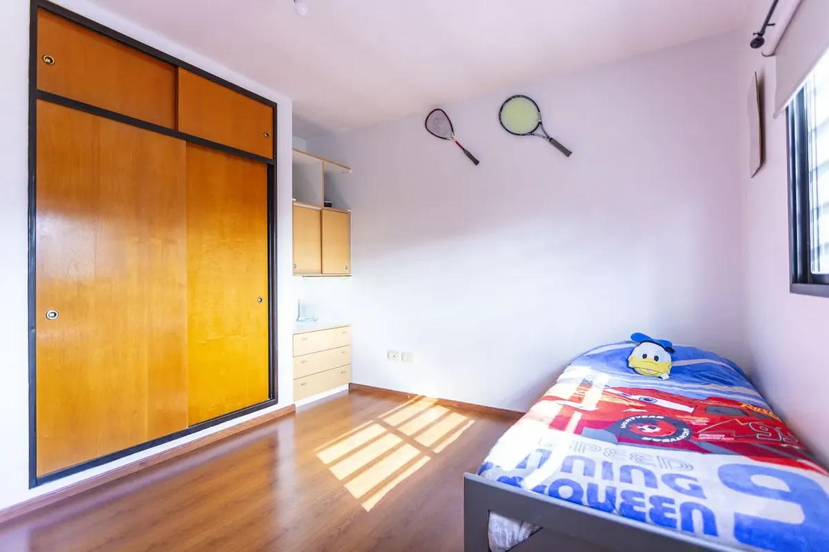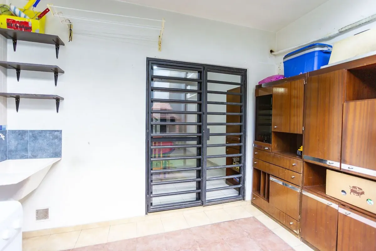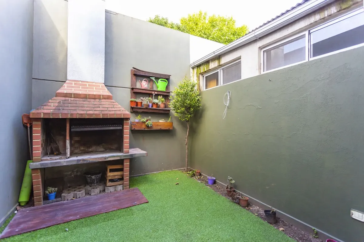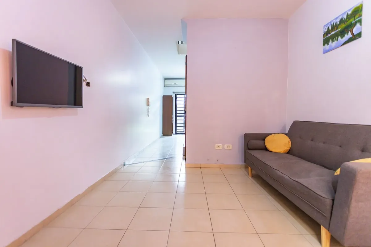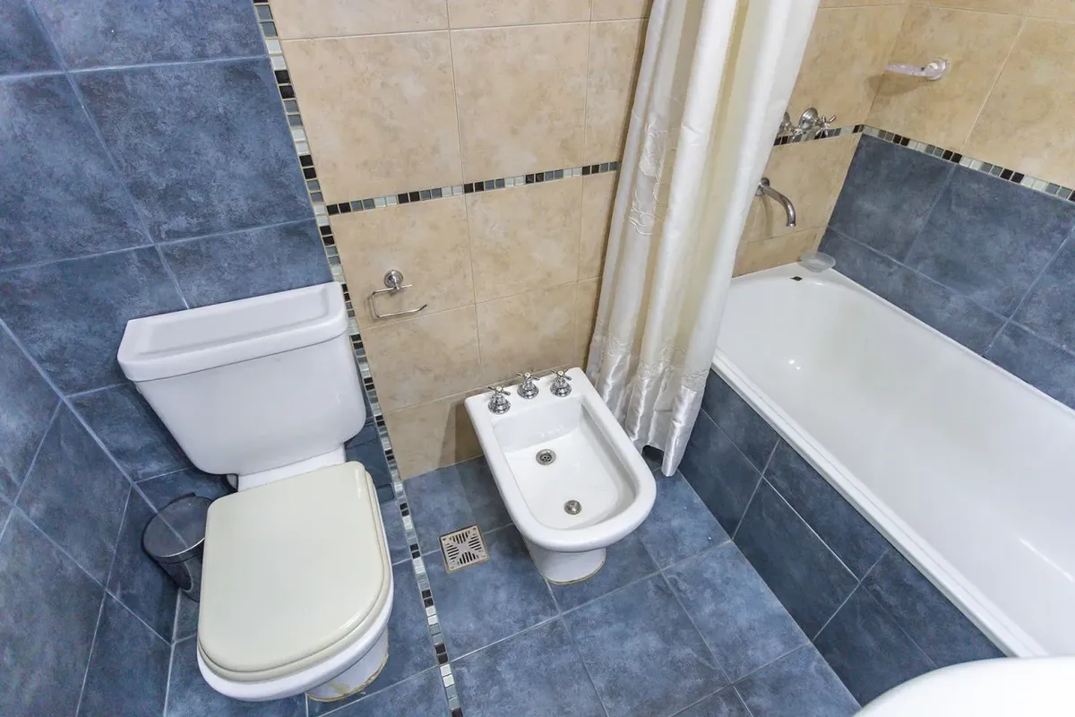 Duplex apartment with 3 rooms developed over two levels, unit 4. On the ground floor: living room, guest toilet, and a kitchen-dining area with fitted lower and upper cabinets, cooking appliance, and stainless-steel hood; storage under the staircase; semi-covered laundry; and a patio with a grill. Upstairs: landing, full bathroom with bathtub, and 2 bedrooms with built-in closets. The unit includes a semi-covered parking space.