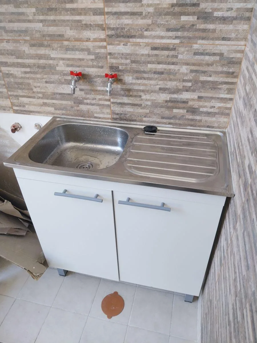Internal apartment, laid out like a house, with shared access. Semi-covered patio and a terrace, plus a separate laundry area with an installation for a washing machine. Dining kitchen with granite countertop, built-in base cabinetry, kitchen appliances, stainless-steel sink and mixer tap, and hot-water tank; full bathroom with shower enclosure. One bedroom has ventilation to the patio; the second room can be used as a second bedroom and has ventilation via a skylight. No building fees (expensas
