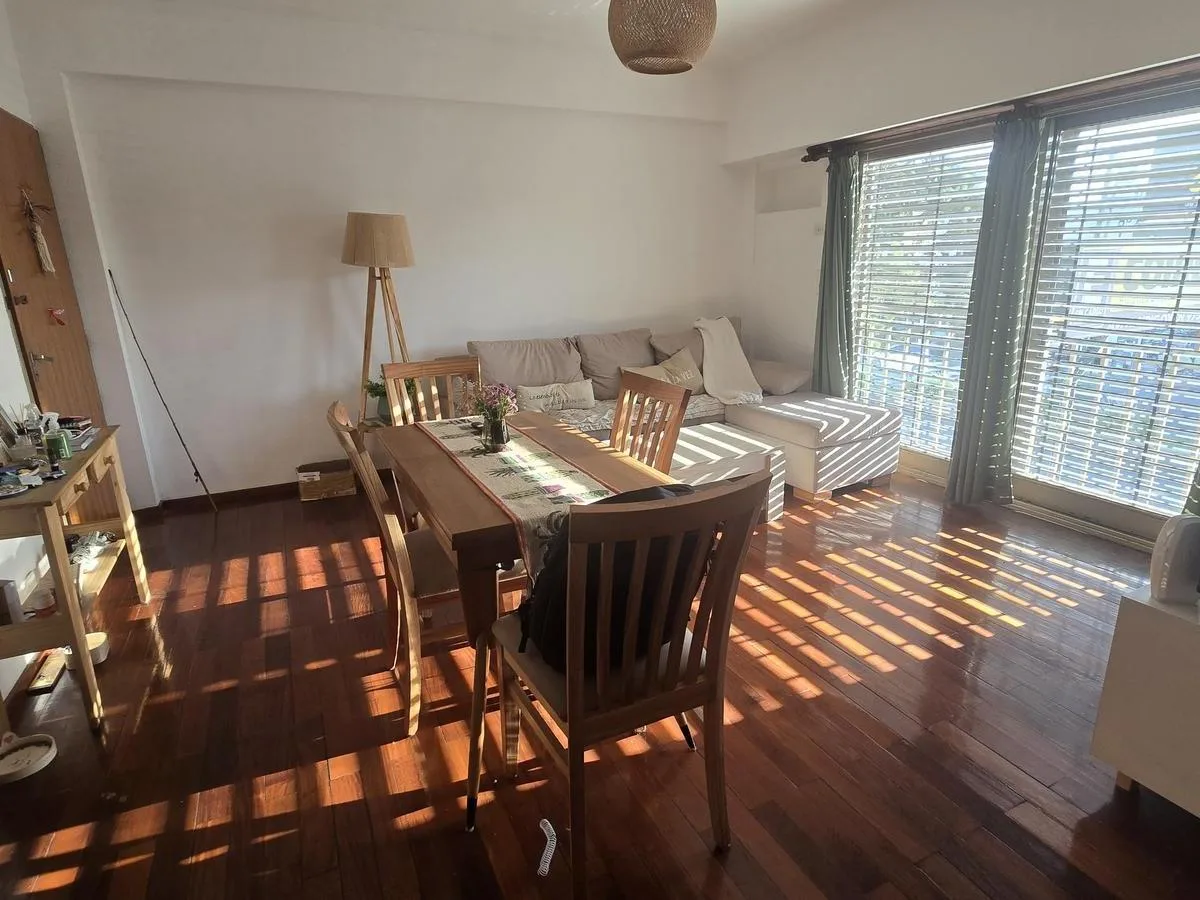 Front-facing two-bedroom apartment on the 1st floor in Lomas de Zamora Oeste, with elevator. It has a living-dining room with a French balcony, a full bathroom, and parquet floors throughout. There is a large patio and in-slab heating. Separate kitchen-dining area with lower and upper cabinets, plus a full laundry area. Building fees, ABL and ARBA are paid by the tenant.