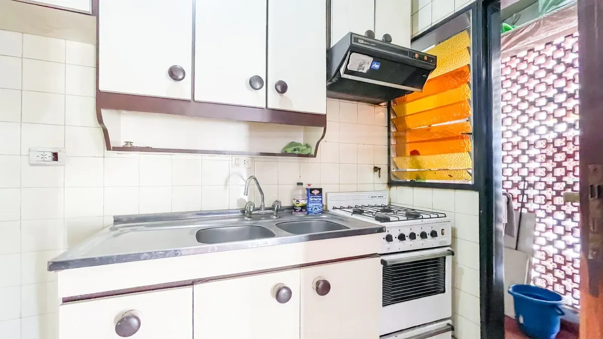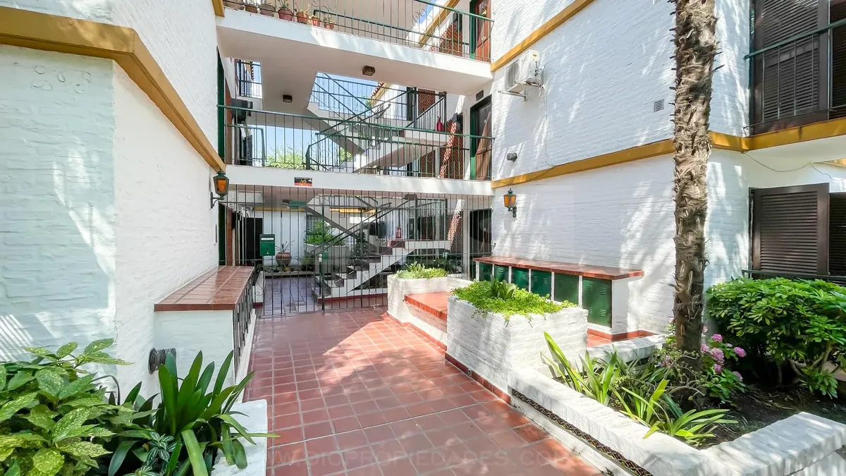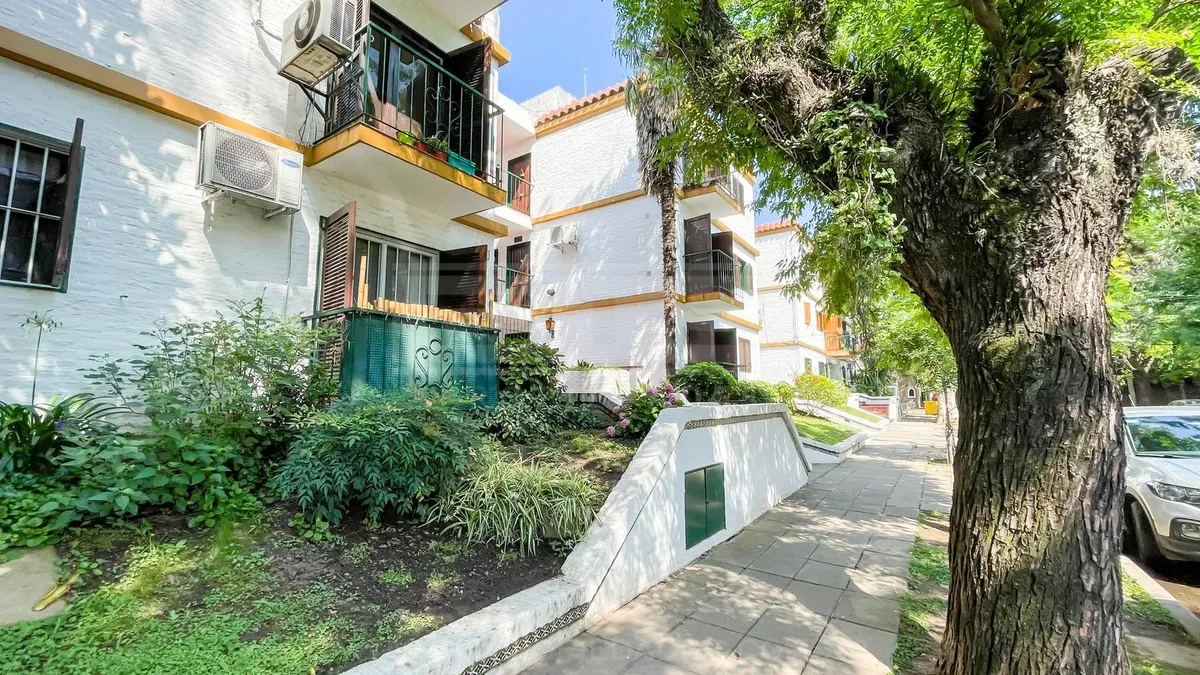 Apartment in Martínez on Italia Street, with garden-facing views. The layout is three rooms with two bedrooms, plus a covered laundry area, covered (assigned) parking space and a gas heater. The listing does not specify covered or total m², floor level, or whether the unit is furnished.