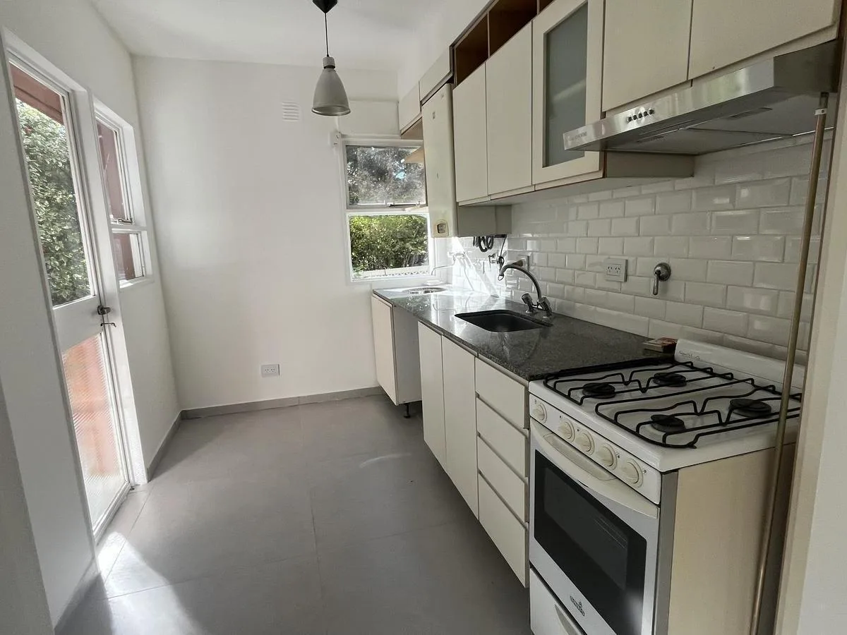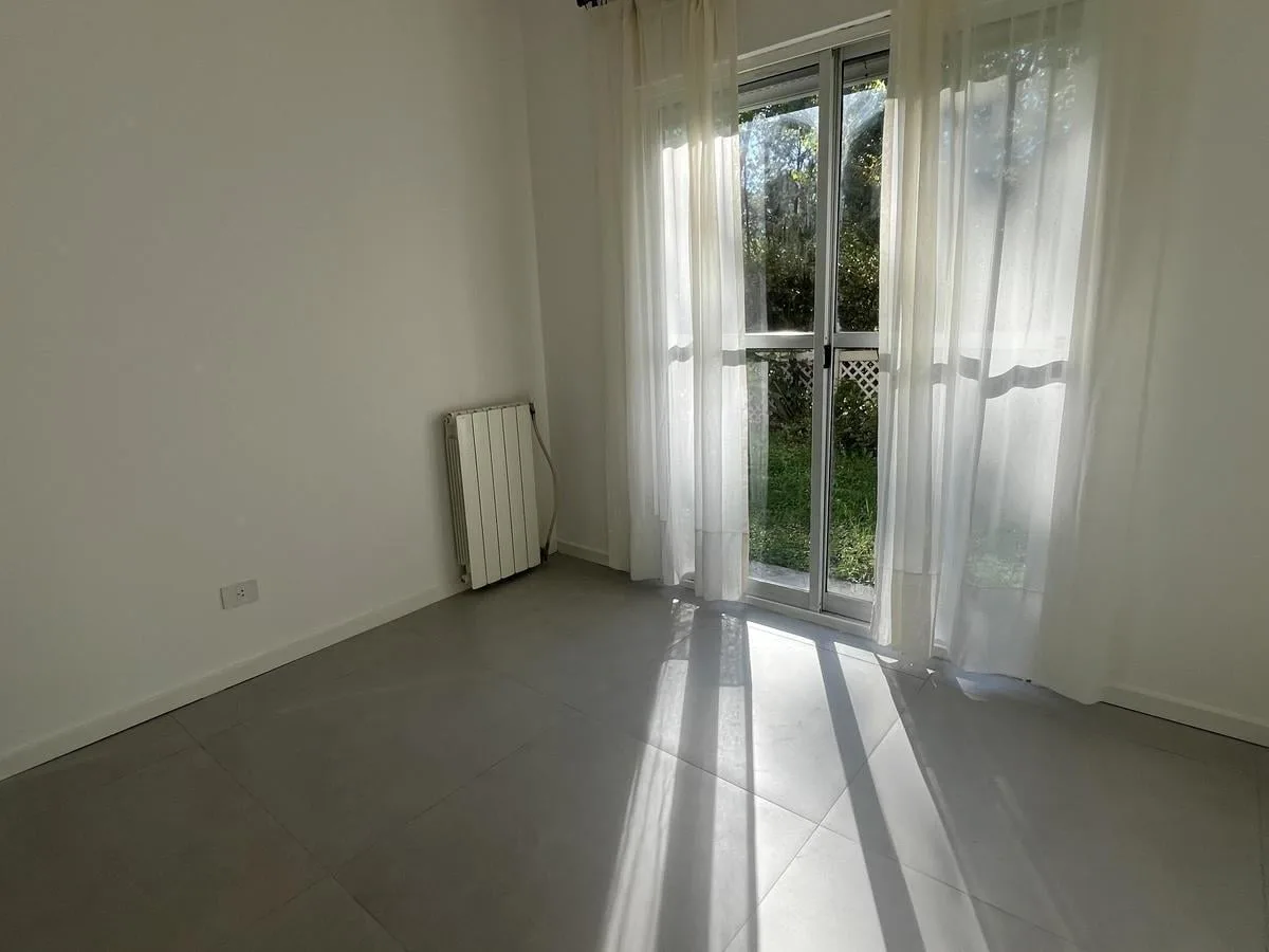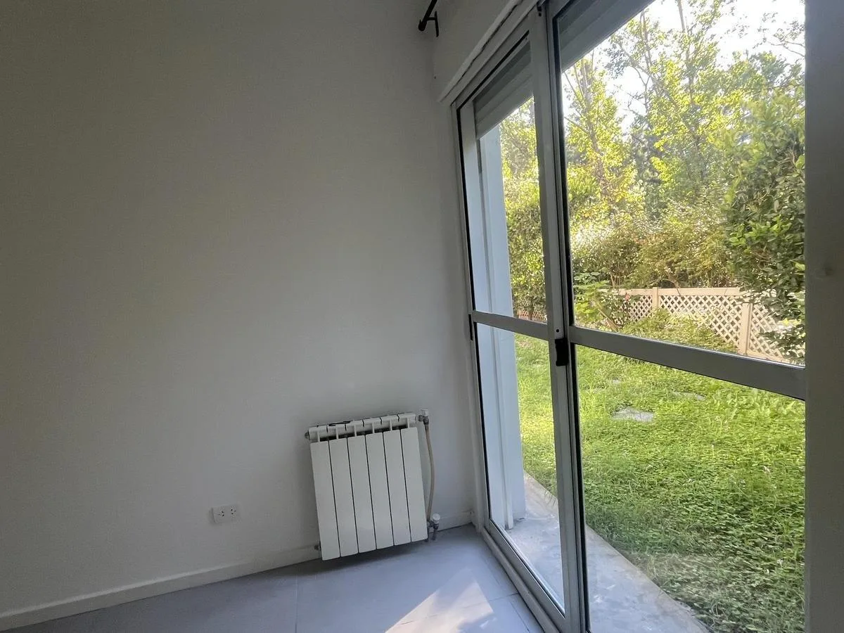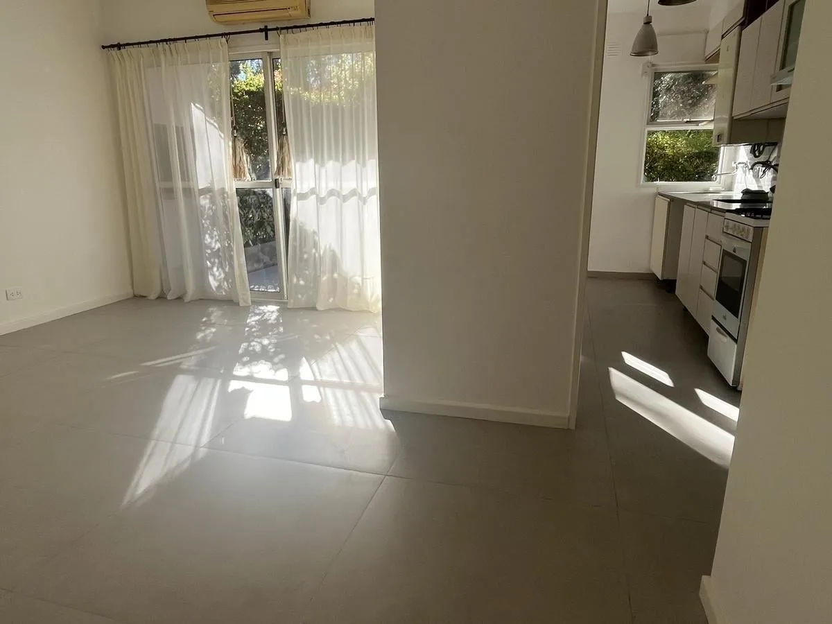Two-bedroom apartment in Talar de Martínez on the ground floor with private garden and covered parking. The living-dining room has direct access to the garden. Kitchen is refurbished and includes a laundry space with direct access to the garden; a covered grill is located under the gallery. The master bedroom is en suite with its own bathroom and dressing area, the second bedroom has a built-in closet, and there is an additional full bathroom. Amenities include air conditioning in the living roo
