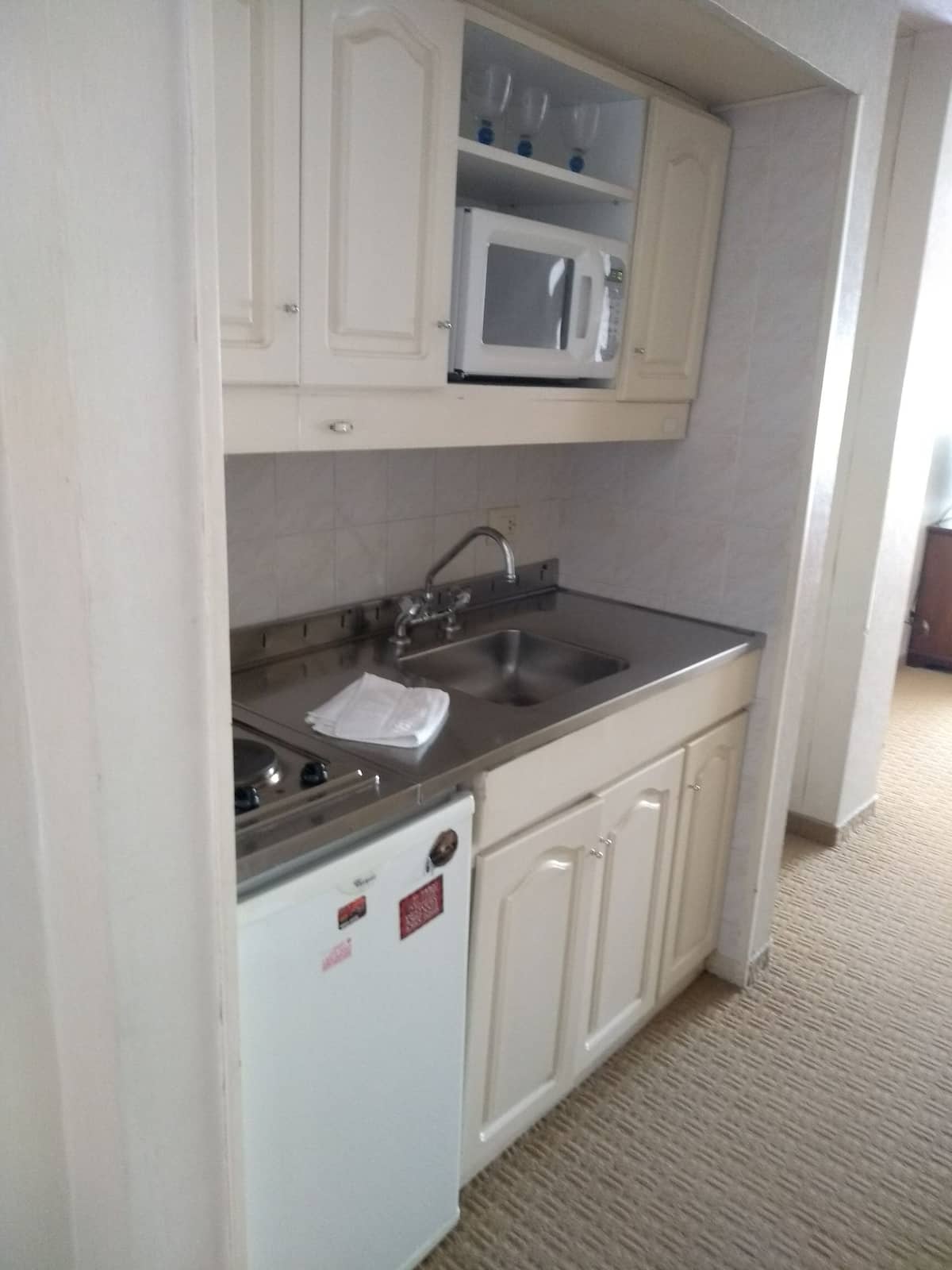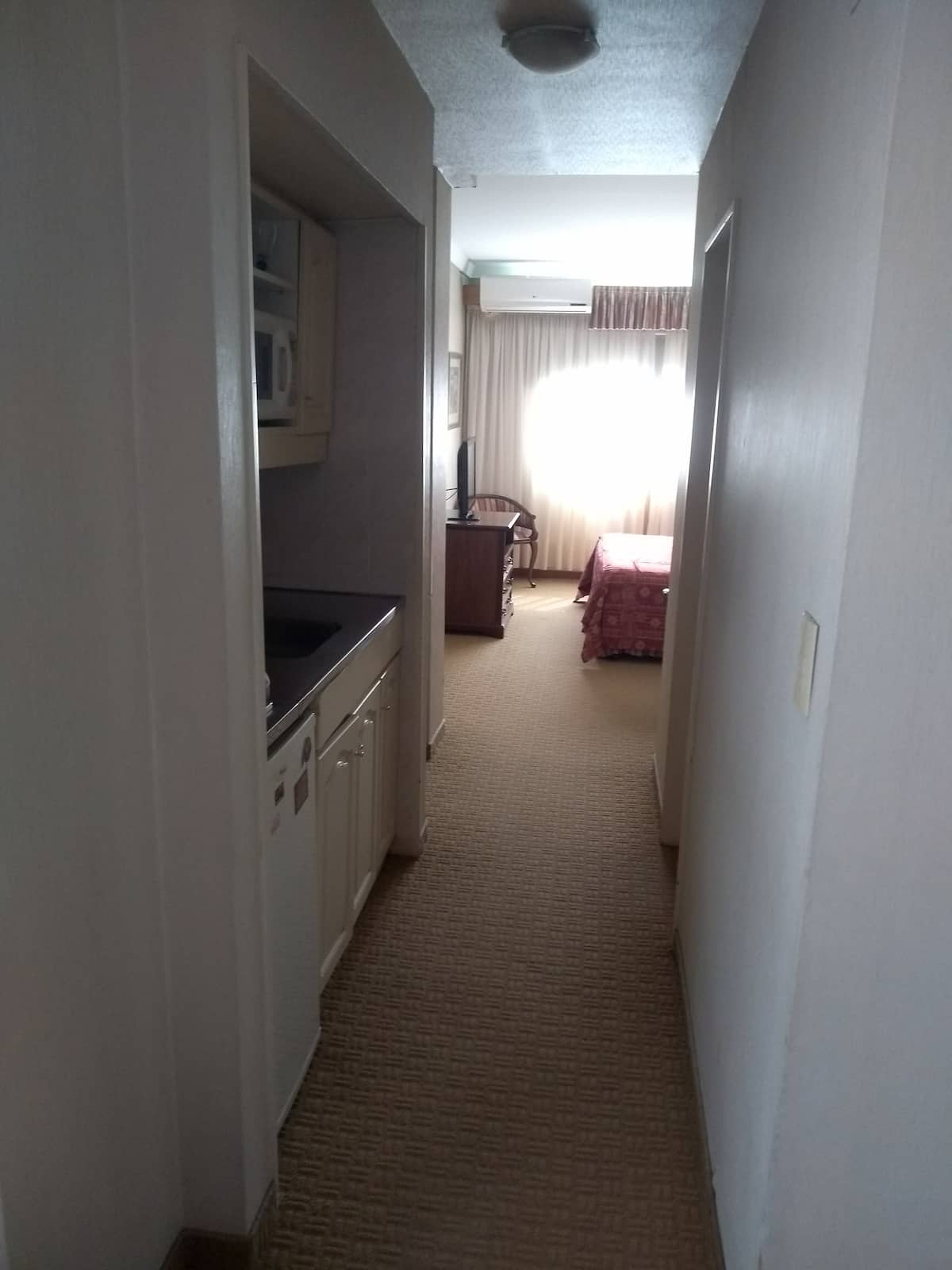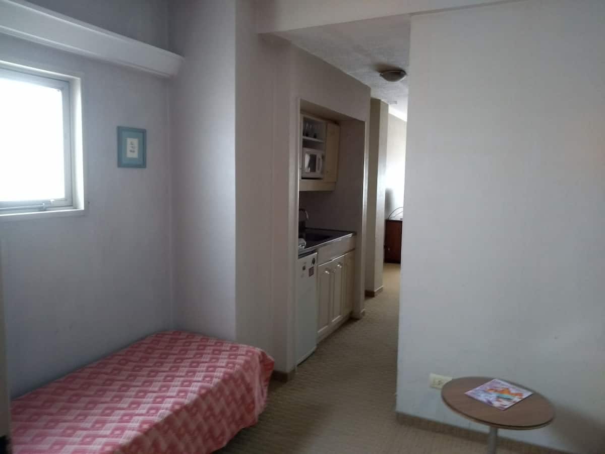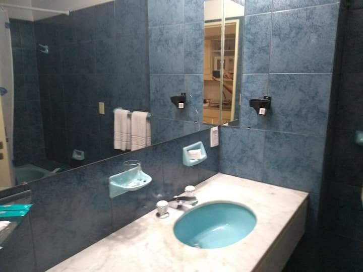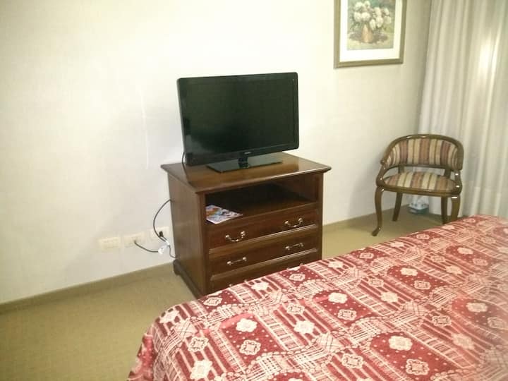 Two-bedroom apartment in Monserrat with a covered (assigned) parking space. The kitchen is equipped with an electric kettle, refrigerator, microwave and electric hotplate. The building is on Av. 9 de Julio and has 24-hour surveillance and a reception desk. Cable TV is available, with air conditioning and heating included.