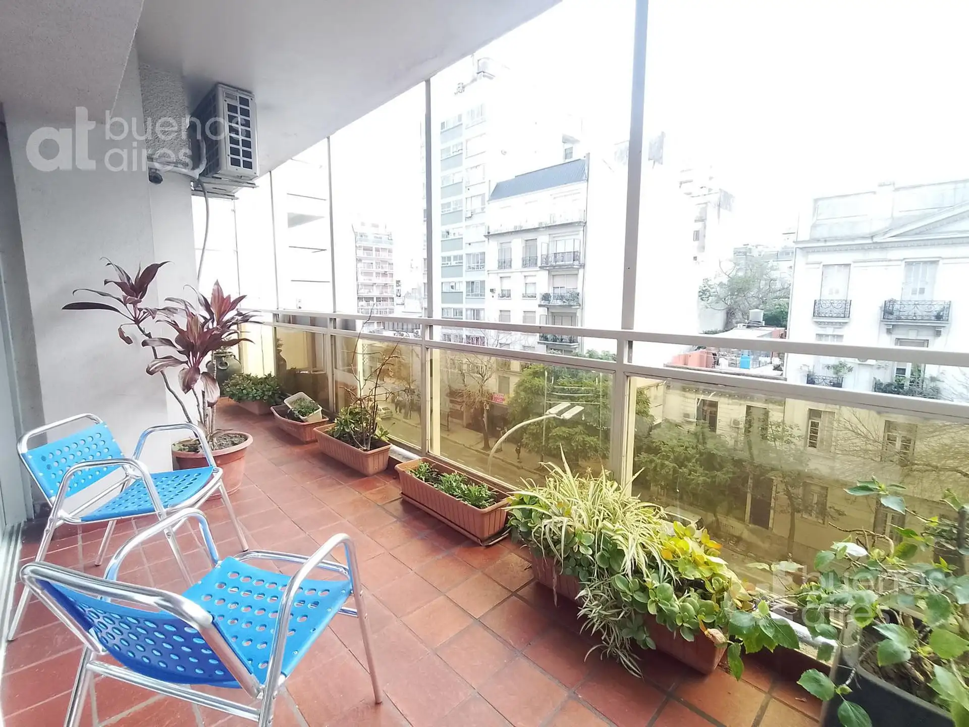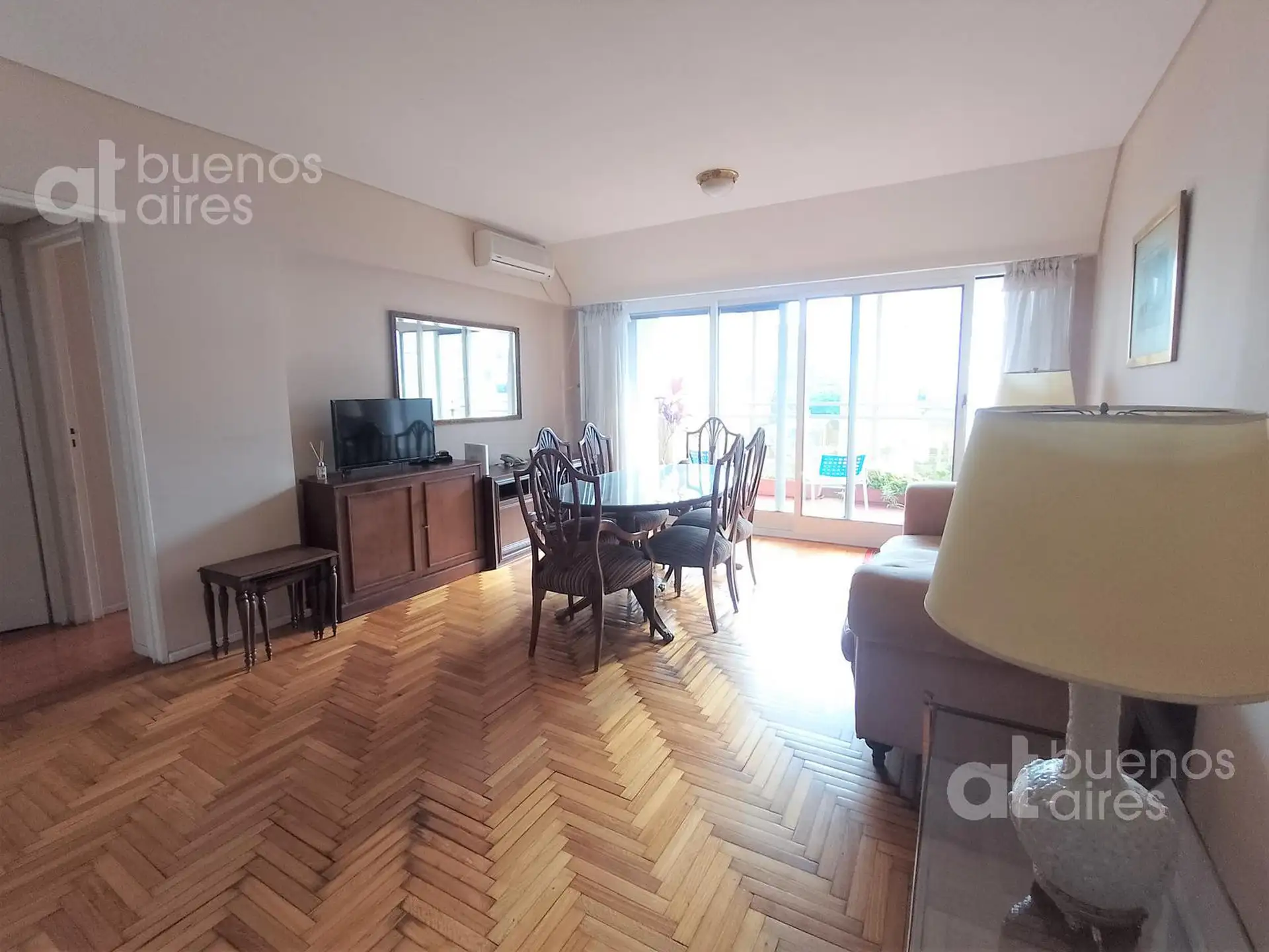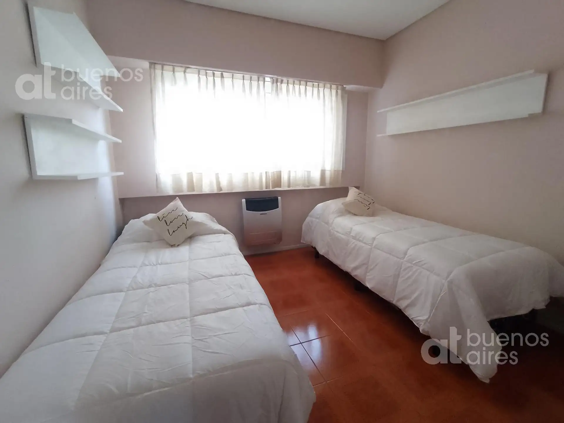 Three-room apartment facing the street, with a terrace-style balcony, in Monserrat. Fully furnished and equipped, with a living-dining room with sofa and TV, and a kitchen with lower and upper cabinets. Includes a fridge with freezer, gas oven, microwave and washing machine, plus double bed in the main bedroom and two single beds in the second bedroom. There is a full bathroom and a toilet, both bedrooms with built-in wardrobes. Rent is stated with utilities (electricity, gas, water and internet