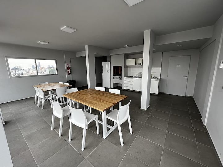Brand new apartment completed in 2022 with 60 m², 2 bedrooms, a living room and a kitchen. The building has a pool and a gym. There is a laundry that uses tokens (with prior reservation) and a covered grill in the garden.
