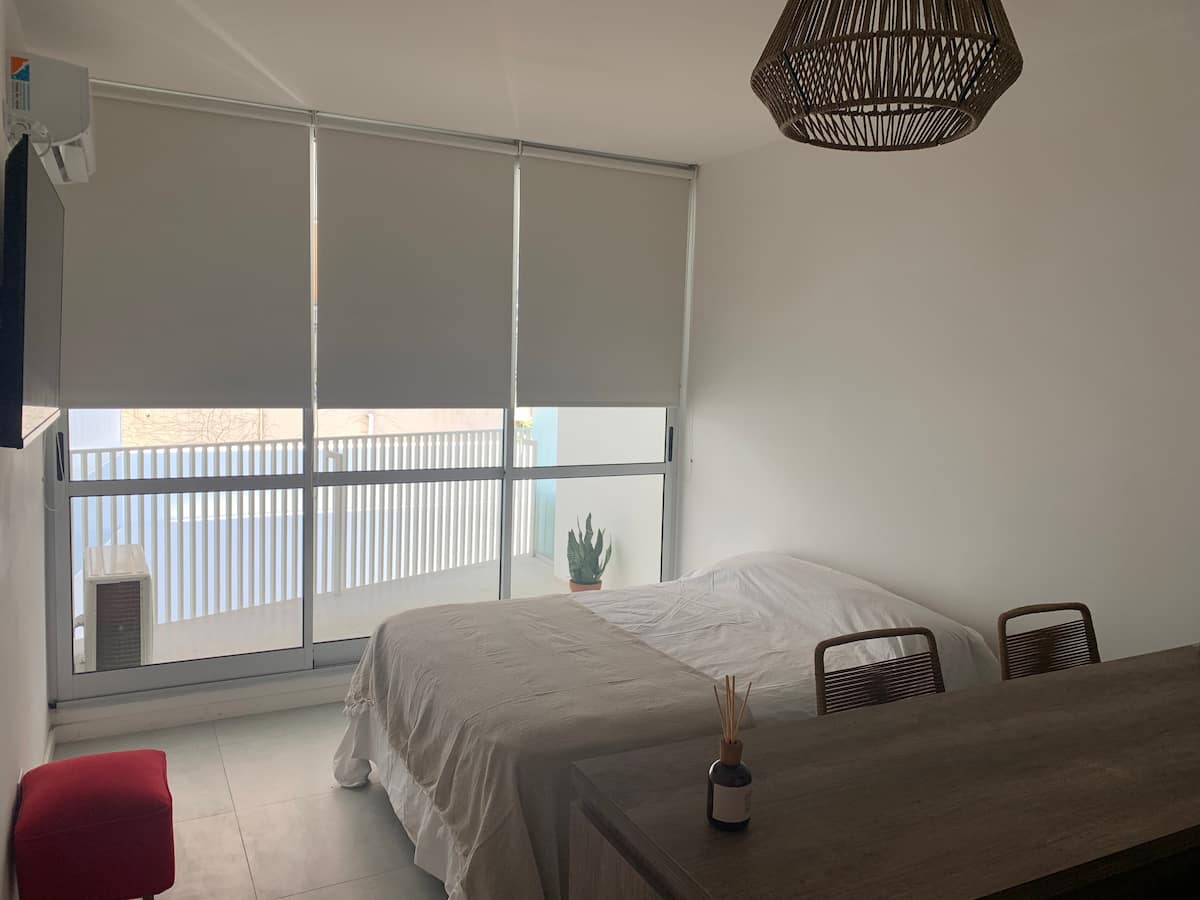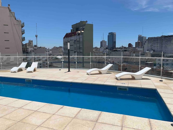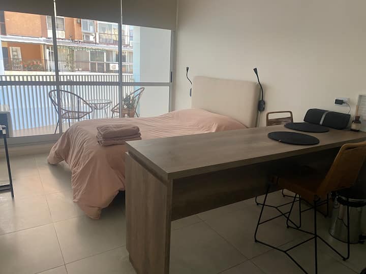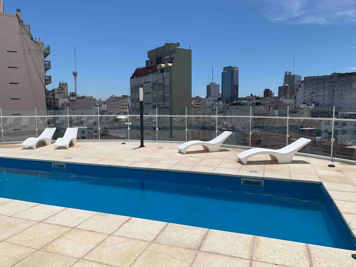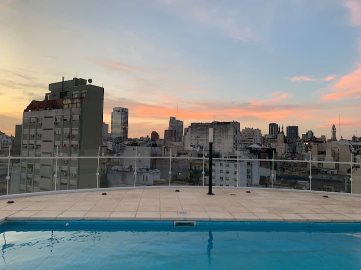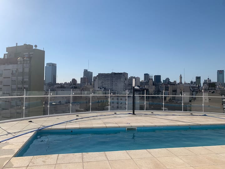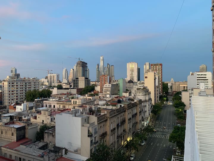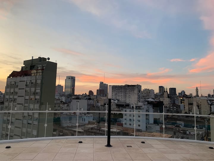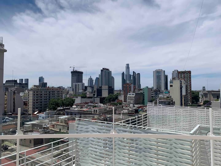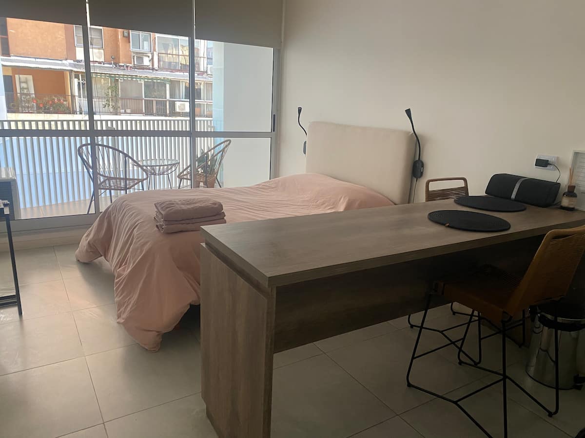 Apartment on the pedestrian street of Bolivar, one block from the Historic Market of San Telmo and two blocks from Plaza Dorrego. It has air conditioning, Wi-Fi, cable TV, a balcony, and a large bathroom with an integrated kitchen. Check-in is at 2:00 pm and check-out at 10:00 am. It is three blocks from Av. 9 de Julio and four blocks from Puerto Madero.
